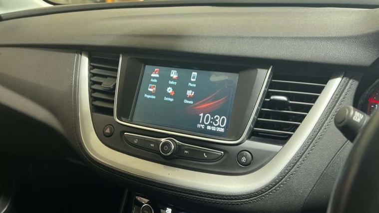3.5" colour information display, Audible lights on warning, Central facia display with digital clock, outside air temperature and audio information, Cruise control with speed limiter and intelligent speed adaption, Digital water temperature gauge with warning light, Fuel gauge with low fuel level warning light, Gearshift up/down indication light, Lane departure warning system, Multi function trip computer, Rear parking distance sensors, Rev counter, Service interval indicator, Speed sensitive electric power assisted steering, Speed sign recognition, Speedometer, R4 IntelliLink with 7"colour touchscreen, RDS traffic programme, DAB radio, USB with IPod, bluetooth audio streaming, Apple carplay/Android auto, Six speaker - four front + two rear, Steering wheel mounted audio controls, Body colour door handles, Body colour door mirrors, Chrome effect bar on front grille, Collapsible windscreen wipers, Door to door illumination, Electrically operated front and rear windows with safety auto reverse and one touch up/down facility with heated rear window, Front fog lights, Halogen headlights with manual beam levelling and high beam assist, Hazard warning lights, High level centre rear brake light, Intermittent rear window wash/wipe, LED daytime running lights, LED tail lights, Manually foldable door mirrors, Rear fog lights, Rear spoiler, Reversing lights, Side protection mouldings, Side window demist vents, Sound absorbing windscreen, Tinted windows, Twin electrically adjustable and heated door mirrors, Two speed windscreen wipers with variable intermittent wipe, Welcome lighting, Windscreen demist vents, 12V electrical accessory socket in front, 12V electrical accessory socket in luggage compartment, 3 spoke leather covered steering wheel with satin chrome bezel, 60/40 split folding rear seat, 8 way driver, 6 way passenger adjustable seats, Anti submarining front seats, Berson cloth upholstery, Centre rear head restraint, Chrome effect interior door handles, Covered storage compartment in centre console and in driver armrest, Driver's centre armrest, Driver/passenger sunvisors with vanity mirrors, Electronic dual zone climate control with air conditioning + advanced predictive logic control using sensor + Charcoal filter + illuminated controls, Four adjustable facia vents, Front and rear passenger assist handles, Front centre armrest, Front door pockets with 2.6 litre capacity, Fully carpeted luggage area, Heated rear windscreen with timed cut-off, Height adjustable and removable front/rear head restraints, Interior courtesy light operated by all doors, Isofix attachment on front seat, Isofix system on outer rear seats, Luggage compartment cover, Modene black fabric side bolsters, Reach + rake adjustable steering column, Rear door pockets with 1.8 litre capacity, Rear passenger compartment heating ducts, Two drinks holder in centre console, Ventilated glove box with lid, Sight and light pack - Grandland X, 3x3 point rear seatbelts, Active pedestrian safety system, Anti-lock braking system (ABS), Child proof locks on rear doors, CSC - Cornering stability control, Deactivation switch for front passenger front and side impact airbags, Deflation detection system, Deformation zones front and rear, Driver/Front Passenger airbags, Dual seatbelt pretensioners on front seats, EBD - Electronic brakeforce distribution, Electronic parking brake, Energy absorbing steering column, Engine drag torque control, Front and rear seatbelt reminder, Front seat side impact airbags, Full size curtain airbags for driver, front passenger and outer rear passenger seats, HBA (Hydraulic Brake Assist), Hill start assist, Inertia reel lap and diagonal seatbelts for all seats, Load limiters on outer rear seatbelt retractors, Outer rear seatbelt pretensioners, Reinforced passenger safety cell, Side impact protection beams, Switchable electronic stability programme, Traction control, Tyre pressure monitoring system, 2 remote folding keys, Electronically protected audio equipment, Engine deadlock and immobiliser, Locking wheel nuts, Remote control central locking, Remote security alarm system, Visible vehicle identification number, Black door panels with black Modene cloth inserts, Frosted silver facia and door panel inserts,