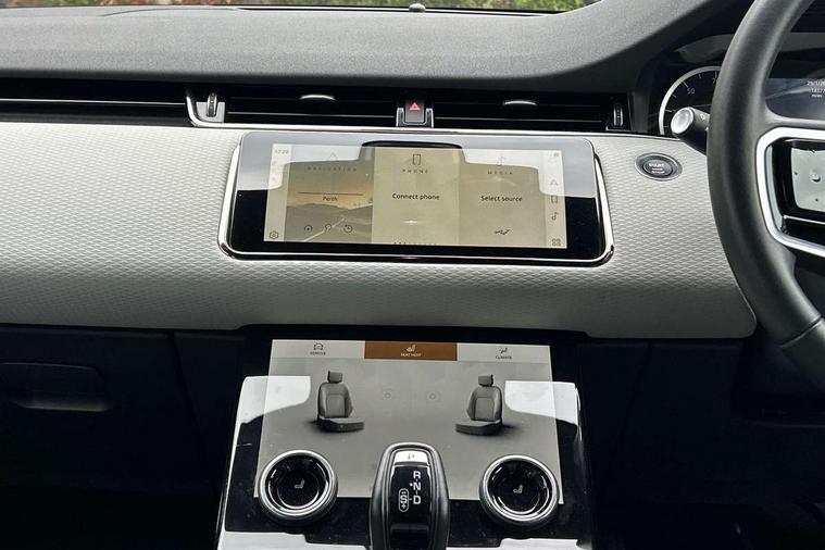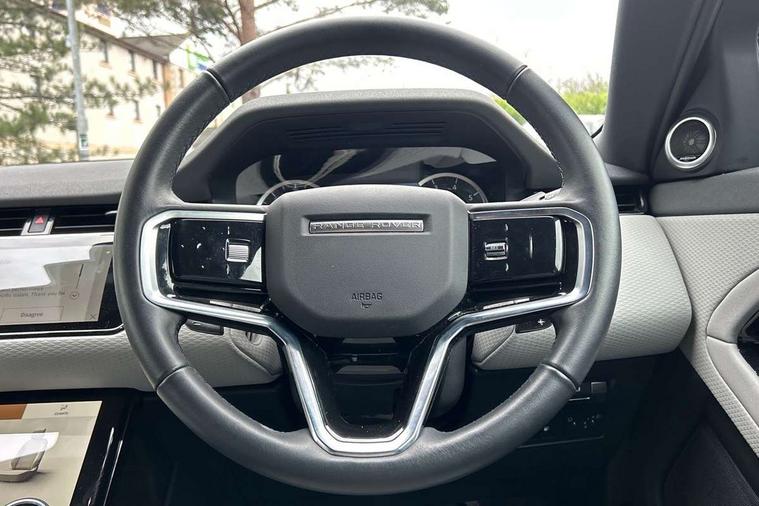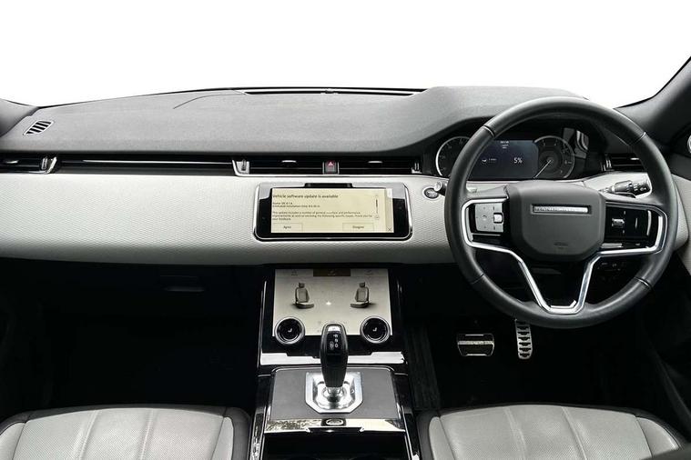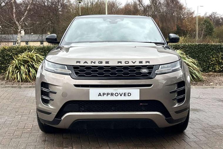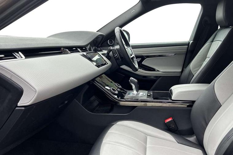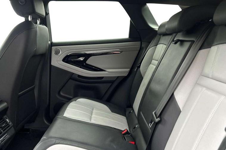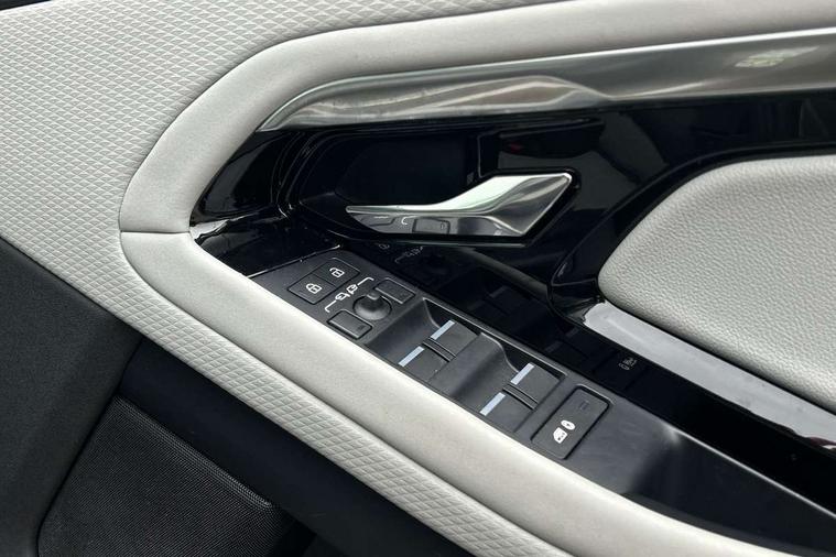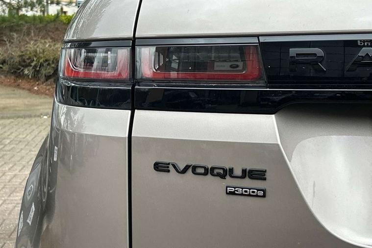 Adaptive cruise control, Android Auto, Apple car play, Bluetooth connectivity, Brake pad wear indicator warning light, Driver condition monitor, eCall emergency system, Electronic power assisted steering (EPAS), Front and rear parking aid, InControl remote, Land Rover InControl apps, Lane keep assist, Pivi pro connected includes upgraded infotainment, connected navigation pro, Nuance speech licence, Push button starter, Traffic sign recognition with adaptive speed limiter, Voice control system, 7 kW onboard charger, All terrain progress control, Electric rear axle drive, Home charging cable, Large fuel tank, Passive suspension, Public charging cable, Terrain Response 2 Auto, Digital Audio Broadcast radio-DAB, Steering wheel mounted controls, Auto headlights, Daytime running lights, Electric windows with one touch open/close and anti trap, Evoque and R-Dynamic badge, Flush deployable exterior door handles, Heated rear window with timer, Heated washer jets, Heated windscreen, P300e badge, Power fold, auto-dimming, heated door mirrors with approach lights and auto dimming driver side, Privacy glass, Rain sensing windscreen wipers, Rear fog lights, Rear side wing doors, Rear wiper, Tailgate spoiler, Third brake light, 40:20:40 split folding rear seats with centre headrest and armrest, Ambient interior lighting, Bright metal pedals, Heated steering wheel, Isofix system on outer rear seats, Overhead lighting console, Overhead stowage for sunglasses, Passive front head restraints, Rear air vents, Rear centre headrest, Rear head restraints, Satin chrome gearshift paddles, Single passenger seat, Sunvisors with illuminated vanity mirrors, Twin sliding front centre armrest, 3 rear 3 point seatbelts, Anti-lock braking system (ABS), Customer configurable autolock, DSC - Dynamic Stability Control, Electronic brake force distribution, Electronic parking brake, Electronic traction control, Emergency braking, Front and rear seatbelt reminder, Hill descent control, Hill launch assist, Low traction launch, Power operated child locks, Roll stability control, Six airbags - Driver and passenger airbags/driver knee airbag/front side airbag and curtain airbags, Torque vectoring brake, Tyre pressure monitoring system, Alarm, Immobiliser, Intrusion sensor, Locking wheel nuts,