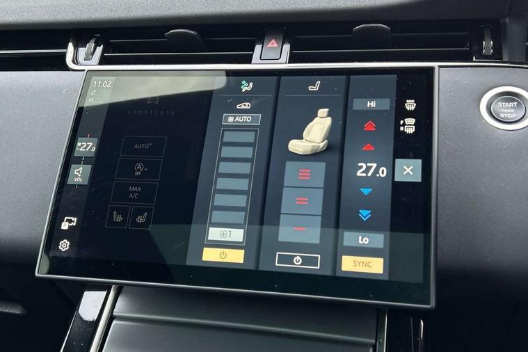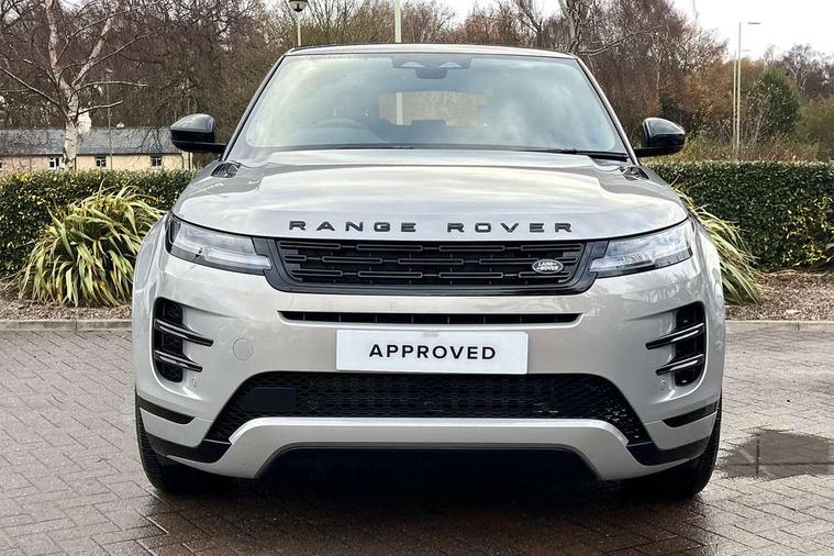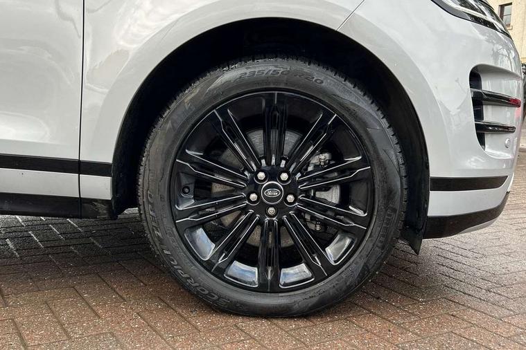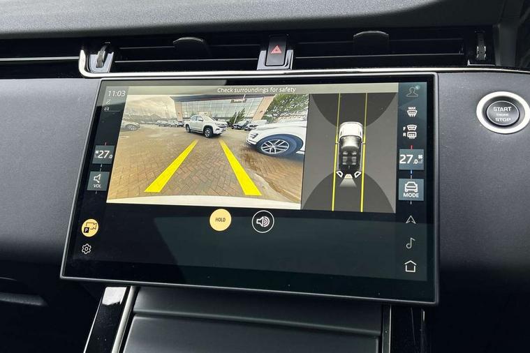 11.4" touch screen, 3D 360 degree surround camera with wade sensing, Adaptive cruise control, Android Auto, Apple car play, Blind spot assist, Bluetooth connectivity, Brake pad wear indicator warning light, Driver condition monitor, eCall emergency system, Eco mode, Electronic power assisted steering (EPAS), Front and rear parking aid, InControl remote, Interactive driver display, Land Rover InControl apps, Lane keep assist, Pivi pro connected includes diamond pivi variant, smart settings, connected navigation pro, nuance speech licence, Powered tailgate/boot lid, Rear collision monitor, Rear traffic monitor, Tailgate, Traffic sign recognition with adaptive speed limiter, Voice control system, Wireless device charging, All terrain progress control, Diesel exhaust fluid (DEF) large tank, Efficient Driveline, Large fuel tank, Terrain Response 2, Digital Audio Broadcast radio-DAB, Steering wheel mounted controls, Acoustic laminated windscreen, Auto headlights, Auto high beam assist, Automatic headlight levelling, Electric windows with one touch open/close and anti trap, Flush deployable exterior door handles, Front and rear recovery eyes, Heated rear window with timer, Heated washer jets, Heated windscreen, LED headlights with signature DRL and LED tail Lights, Power fold, auto-dimming, heated door mirrors with approach lights and auto dimming driver side, Rain sensing windscreen wipers, Rear animated directional indicators, Rear fog lights, Rear side wing doors, Rear wiper, Side repeater indicators in mirror, Tailgate spoiler, Third brake light, Winter wiper park position, 12 way driver memory and 10 way passenger electric front seats with 2 way manual headrest + 4 way lumbar support, 40:20:40 split folding rear seats with centre headrest and armrest, Ambient interior lighting, Bright metal pedals, Carpet mats, Chrome tread plates with range rover branding Includes stainless steel loadspace scuff plate with etched graphic, Customer configurable single point entry, Front and rear cupholders, Heated front seats, Heated steering wheel, Isofix system on outer rear seats, Manually adjustable steering column, Overhead lighting console, Overhead stowage for sunglasses, Passive front head restraints, Rear air vents, Rear head restraints, Satin chrome gearshift paddles, SE Grained leather upholstery, Single passenger seat, Standard steering wheel with Moonlight Bezel, Sunvisors with illuminated vanity mirrors, Twin sliding front centre armrest, Power socket pack 2 - Evoque, 3 rear 3 point seatbelts, Anti-lock braking system (ABS), Brake hold function, Customer configurable autolock, DSC - Dynamic Stability Control, Electronic brake force distribution, Electronic parking brake, Electronic traction control, Emergency braking, Front and rear seatbelt reminder, Hill descent control, Hill launch assist, Low traction launch, Occupant protection assist, Passenger seat occupant detector, Power operated child locks, Roll stability control, Six airbags - Driver and passenger airbags/driver knee airbag/front side airbag and curtain airbags, Torque vectoring brake, Tyre pressure monitoring system, Alarm, Immobiliser, Intrusion sensor, Keyless entry, Locking wheel nuts, All season tyres,