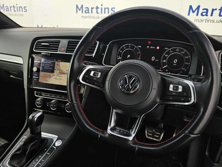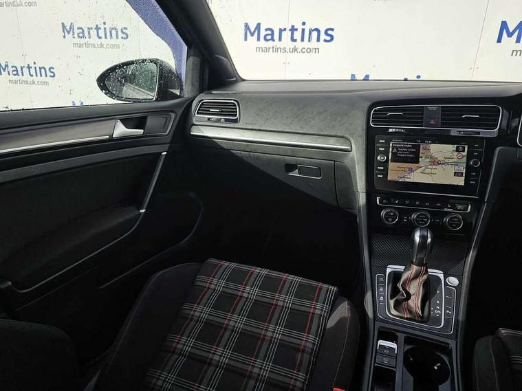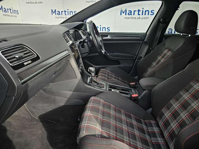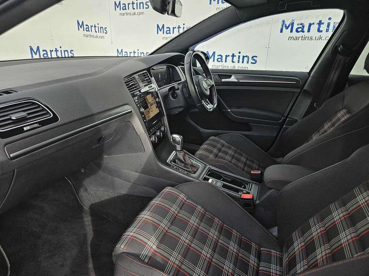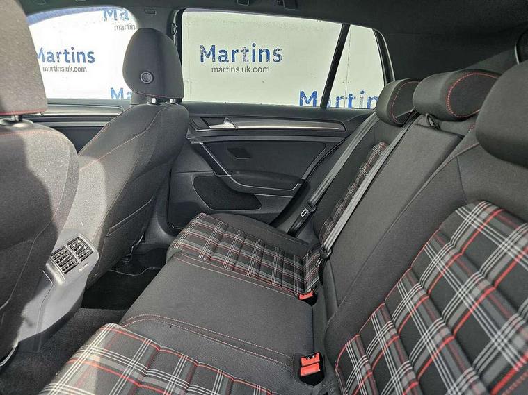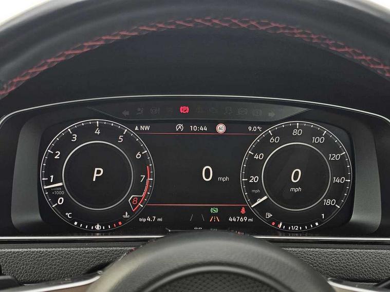 'Lights On' Reminder warning buzzer, ACC - Adaptive cruise control with front assist, forward collision warning, distance monitoring, city emergency brake and speed limiter, Active information display - 12.3" high resolution TFT display, Bluetooth telephone and audio connection for compatible devices, Brake pad wear indicator warning light, Driver alert system, Driving Mode Selection with four preset modes - Eco, normal, sport or individual modes, Multifunction computer with visual gear change recommendation for fuel consumption, Progressive steering, Push tank flap, Rear view camera, Speed limit display, Speedo, rev counter, electronic odometer, trip, service interval display, exterior temperature and fuel gauge, Stop/start system, Think blue trainer driver tips and journey analysis, Unique GTI instrument cluster, Warning buzzer and light for front seatbelts unfastened, Anti-tramp function, Battery regeneration during braking, Mechanical limited slip differential, Composition media system, DAB Digital radio receiver, Driver Personalisation profile selection, MP3/WMA compatability, Multi device interface (MDI) via USB connection, Premium USB cable in choice of either Apple or Android smartphone compatibility, SMS Functionality, Title and cover art display, USB and SD card connectivity, Volkswagen media control, 3D-LED tinted rear light clusters with indicator sweep function, Black front air intake and radiator grille with chrome insert, Body colour door handles, Body colour door mirrors with integrated indicators, Body colour rear roof spoiler, Dusk sensor + automatic driving lights, Electric front windows, Electric rear windows, Electrically adjustable and heated door mirrors, Extended sill strips flared, Front and rear unique GTI badging in red, Fully galvanised body, GTI logo in red on front and back, GTI logo lettering on front wings on right and left, Heated rear windscreen, High level 3rd brake light incorporating LED Technology, Honeycomb front air intake - Black, Honeycomb radiator grille with red stripe, LED daytime running lights incorporating red stripe, LED front fog lights, LED headlights with dynamic light assist, Rear fog lamp, Rear number plate lights incorporating LED technology, Rear window aerial, Rear window wash/wipe with intermittent wipe, Reflectors in all doors, Uniquely shaped front/rear bumpers, Windscreen wipers/ intermittent wipe + 4 position delay, 12V socket in luggage compartment, 3 rear headrests, 4 load lashing points in luggage compartment, 60/40 split folding rear seat backrest, Bag hook in luggage compartment x 2, Black rear diffuser with chrome exhaust tailpipes in left and right, Black roof lining, Climate control - 2 zone electronic air conditioning with automatic air recirculation and allergy filter, Cooled glovebox, Cover for storage compartment in centre, Dust/pollen filter, Front + rear carpet mats, Front centre armrest with storage compartment and two rear air vents, Front seat back storage pockets, Grab handles front x 2, rear x 2 with integrated coat hooks, Height and reach adjustable steering wheel, Illuminated vanity mirrors, Interior light delay, Isofix preparation for 2 rear child seats, Leather gear knob and handbrake grip, Load through provision with rear centre armrest and cupholders x2, Luggage compartment lighting, Overhead storage box, Stainless steel pedals, Storage box in luggage compartment, Storage compartment in roof console with cover, Storage compartments in centre console, Storage compartments in front doors, Storage compartments in rear doors, Stowable luggage compartment cover, Sun visors, Three spoke multifunction leather steering wheel with GTI logo and red stitching including gearknob gaiter, Variable boot floor, height adjustable and removable, Ambient lighting pack - Golf, Convenience Pack - Golf, Mirror pack - Golf, Winter pack - Golf, 3 rear three point seatbelts, Airbags - Driver's and front passenger's, curtain airbag, Driver's knee, front side impact and passenger's airbag deactivation switch, Anti-lock Braking System (ABS) with Hydraulic Brake Assist (HBA), Automatic post collision braking system, Child locks on rear doors, Driver/Passenger optimised head restraints, Electronic parking brake with auto hold, Electronic stability control (ESC) including Electronic differential lock (EDL) and ASR (Traction control) with deactivation via infotainment system, Front ventilated disc brakes and rear disc brakes, Larger diameter brake discs and GTI logo on red brake calipers, Pre crash preventive occupant protection, Three point height adjustable front seatbelts with tensioners, Tyre pressure loss indicator, Alarm with interior protection and deactivation via infotainment system, Electronic engine immobiliser, Keyless entry with start/stop button on centre console, Chrome plated air vent surround, Chrome plated electric mirror adjustment switch surround, Chrome-plated light switch surround, Honeycomb black decorative inserts, Piano black decorative inserts in centre console, Steel space saver spare wheel,