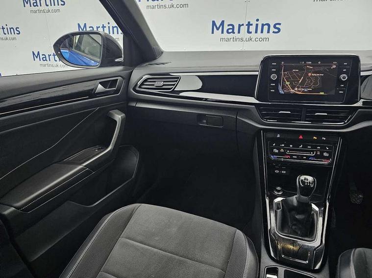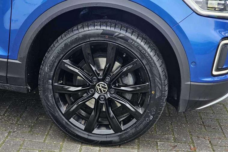 10.25" Digital cockpit pro, Bluetooth mobile phone interface, Driver alert system with fatigue detection, Driver tips and journey analysis, Emergency call service, Lane keeping system Lane Assist, Modified key software - reduce switch off time for key status change to Long no motion, Online services, Park assist including front and rear parking sensors, Service interval indicator, Tailgate/trunk lid release from outside, Think blue trainer driver tips and journey analysis, Warning sound and light for front seatbelts unfastened, Wireless app connect, Battery regeneration during braking, Start/stop function with battery regeneration, Diversity antenna for FM reception, Music playback - MP3, WMA and AAC files, Premium USB cable in choice of either Apple or Android smartphone compatibility, SD card slot, Simultaneous pairing of 2 compatible mobile devices, Title and cover art display, We Connect and We Connect Plus functionality, 3rd brake light, Auto dimming interior rear view mirror, Automatic hazard lights activation under emergency braking, Automatic headlight control with LED separate daytime running lights with coming/leaving home function, Body colour sports bumpers with silver metallic underbody fascia, Dynamic headlight range control with self adjusting whilst driving, Extended roof spoiler, Exterior mirrors aspherical on driver side, convex on front passenger side, External USB type C socket and charging sockets, Front windscreen wiper with intermittent wipe and 4 position delay, Heated rear window, LED rear combination lamps, LED rear number plate lights, LED tail lamp rear comination lamps, Light mode for poor weather, rain, fog or snow, Power windows with comfort operation and circuit breaker, Rain sensor, Rear exhaust tailpipe, Rear fog light on one side and reversing lights on both sides, Rear side wing doors, Rear wash/wipe with intermittent wipe setting, Remote electrically foldable door mirrors, puddle lights and reverse activated passenger's door mirror, 12V power socket in centre console, 3 rear head restraints, 3 seat bench in 2nd row, 4 load lashing points in luggage compartment, Air care climatronic air conditoning system with active combination filter and 2-zone temperature control, Chrome plated radiator grille inserts, air vent surrounds and light switch surrounds, Door and side trim panel with leatherette insert, Drawer under drivers seat, Front + rear carpet mats, Front centre armrest, Front comfort sports seats, Front cupholders x 2, Front footwell illumination, Instrument lighting, white adjustable panel illumination, Interior ambient lighting and surround lighting, Interior light delay, Isofix child seat preparation, Leather gearshift handle, LED interior light with switch off delay/dimmer and 2 front/rear LED reading lights, Load-through provision with cup holder when folded down ('Unsplit rear seat bench, split folding backrest, with centre armrest), Luggage compartment lighting, Non-folding front passenger seat backrest, Single front passenger seat, Storage compartment in left and right luggage area, Storage compartment in rear doors, Storage compartments in driver and front passenger doors, Sunvisors with illuminated vanity mirrors, Variable boot floor, height adjustable and removable, Driver assistance pack without proactive passenger protection - T-Roc, 3 point height adj front seatbelts + pretensioners, 3 point seatbelts in outer rear with ECE label, ABS, Child locks on rear doors, Driver and front passenger airbag with front passenger airbag deactivation, Driver and front passenger safety-optimised head restraints, Drivers seatbelt reminder, Electronic parking brake, Electronic Stability Control (ESC) inc EDL (Electronic Differential Lock) and ASR (Traction Control), Front and rear passengers curtain airbag system including front side airbags, Front assist with city emergency braking and pedestrian monitoring, Front seat side impact airbags, Predictive pedestrian protection, Rear disc brakes, Single tone horn, Tyre pressure loss indicator, Volkswagen roadside assistance, Anti-theft alarm system with interior monitoring, backup horn, and towing protection, Remote central locking with SAFELOCK, radio remote control with 2 remote control folding keys, Trims for alloy wheels,