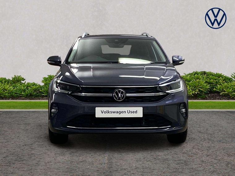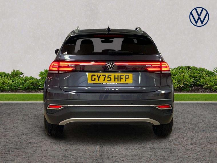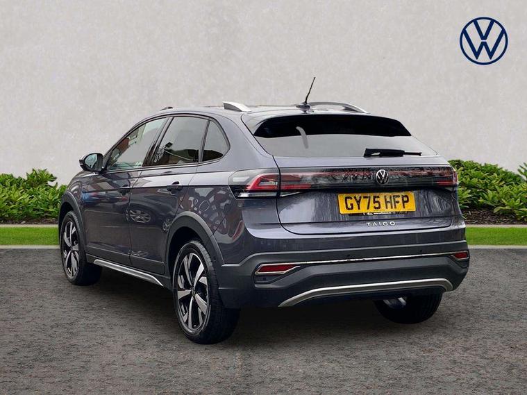 Adaptive cruise control, Advanced driver attention and drowsiness monitor, Digital cockpit pro - 10.25" high resolution TFT dash display screen with customizable menus and information, Dynamic road sign display, e-Call (emergency call), Power Steering, Travel assist including emergency assist, Washer fluid level indicator, Wireless Charging including Bluetooth, Rear shock absorption, Start-stop system with battery regeneration (recuperation - energy recovery during braking), Digital radio reception (DAB+), WeConnect plus, Ambient lighting with logo projection, Aspherical driver's exterior mirror, Auto headlights, Body coloured bumpers and radiator grille with chrome trim and front fog lamps with chrome bezel, Body coloured door handles, Dual chrome twin tailpipes on left and right, Electric windows, External USB type C socket and charging sockets, LED rear combination lamp, LED third brake light, Left convex exterior mirror, Power folding adjustable/heated exterior mirrors and front passenger exterior mirror lowering function, Rear fog light on one side, reversing light on both sides, Rear side wing doors, Rear wash/wipe with intermittent wipe setting, 12V socket in centre console, 2 front reading lights, 3 rear head restraints, 3 seat bench in 2nd row, Air care climatronic air conditoning system with active combination filter and 2-zone temperature control, Black carpets, Child seat anchor for child seat system i-Size, 2x top tether and child seat anchor in front on front passenger side, Chrome bezel for instrument cluster, vents, door handles + gear shift, Driver and front passenger seat height adjustment, Front + rear carpet mats, Front centre armrest, Front footwell illumination, Front sports comfort seats, Height and reach adjustable steering wheel, Interior ambient lighting and surround lighting, Leather trimmed gear knob, Leather wrapped multifunction steering wheel, Luggage compartment floor, Luggage compartment light, Lumbar support for driver's and front passengers seat, Single front passenger seat, Split folding backrest with centre armrest and unsplit rear seat bench, Storage compartment under front seats, Sun visors with illuminated vanity mirrors, Chrome Package - Taigo, Drivers assistance pack - Taigo, IQ.LIGHT - LED matrix headlights pack - Taigo, Light and sight pack - Taigo, 2 x 3-point seatbelts/outer rear seats with ECE label, 3-point seat belts in front with pretensioner and height adjustment, 3-point seatbelt for centre rear seat, Adaptive driver and front passenger airbags with passenger airbag deactivation function, Driver and front passenger safety-optimised head restraints, Electronic stability control, Extended and predictive pedestrian/ cyclist protection, Front and rear disc brakes, Front curtain and side airbags with center airbag, Hill start assist, Manual rear child locks, Single tone horn, Tyre pressure loss indicator, Anti-theft alarm system with interior monitoring, backup horn, and towing protection, Deep iron grey decorative inserts in dash and front door panels, Low rolling resistance tyres,