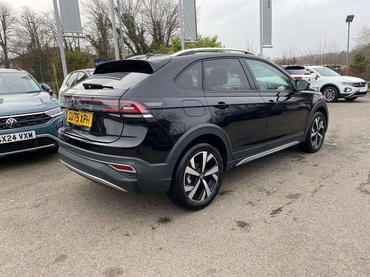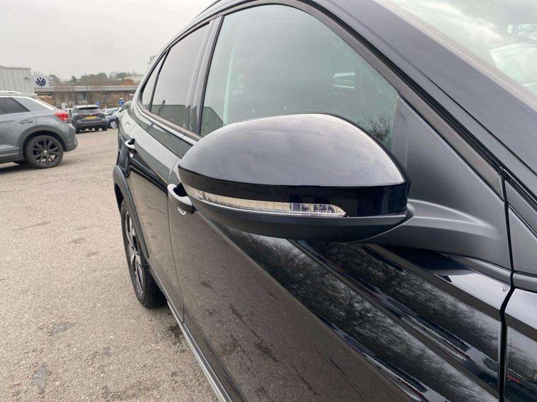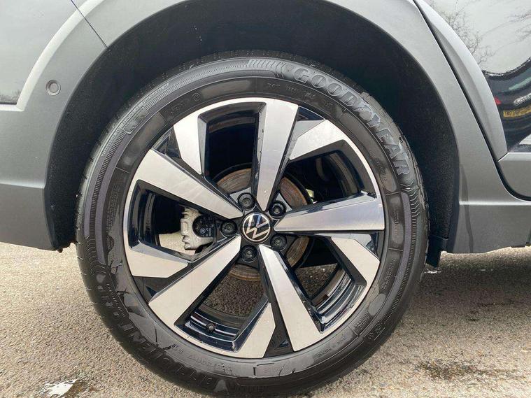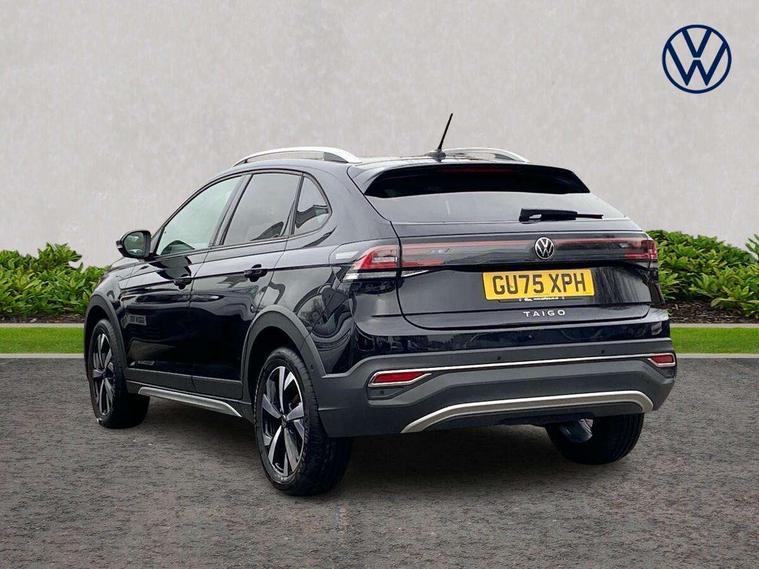 Adaptive cruise control, Advanced driver attention and drowsiness monitor, Digital cockpit pro - 10.25" high resolution TFT dash display screen with customizable menus and information, Dynamic road sign display, e-Call (emergency call), Power Steering, Travel assist including emergency assist, Washer fluid level indicator, Wireless Charging including Bluetooth, Rear shock absorption, Start-stop system with battery regeneration (recuperation - energy recovery during braking), Digital radio reception (DAB+), WeConnect plus, Ambient lighting with logo projection, Aspherical driver's exterior mirror, Auto headlights, Body coloured bumpers and radiator grille with chrome trim and front fog lamps with chrome bezel, Dual chrome twin tailpipes on left and right, Electric windows, External USB type C socket and charging sockets, LED rear combination lamp, LED third brake light, Left convex exterior mirror, Power folding adjustable/heated exterior mirrors and front passenger exterior mirror lowering function, Rear fog light on one side, reversing light on both sides, Rear side wing doors, Rear wash/wipe with intermittent wipe setting, 12V socket in centre console, 2 front reading lights, 3 rear head restraints, 3 seat bench in 2nd row, Air care climatronic air conditoning system with active combination filter and 2-zone temperature control, Black carpets, Child seat anchor for child seat system i-Size, 2x top tether and child seat anchor in front on front passenger side, Chrome bezel for instrument cluster, vents, door handles + gear shift, Driver and front passenger seat height adjustment, Front + rear carpet mats, Front centre armrest, Front footwell illumination, Front sports comfort seats, Height and reach adjustable steering wheel, Interior ambient lighting and surround lighting, Leather trimmed gear knob, Leather wrapped multifunction steering wheel, Luggage compartment floor, Luggage compartment light, Lumbar support for driver's and front passengers seat, Single front passenger seat, Split folding backrest with centre armrest and unsplit rear seat bench, Storage compartment under front seats, Sun visors with illuminated vanity mirrors, Chrome Package - Taigo, Drivers assistance pack - Taigo, IQ.LIGHT - LED matrix headlights pack - Taigo, Light and sight pack - Taigo, 2 x 3-point seatbelts/outer rear seats with ECE label, 3-point seat belts in front with pretensioner and height adjustment, 3-point seatbelt for centre rear seat, Adaptive driver and front passenger airbags with passenger airbag deactivation function, Driver and front passenger safety-optimised head restraints, Electronic stability control, Extended and predictive pedestrian/ cyclist protection, Front and rear disc brakes, Front curtain and side airbags with center airbag, Hill start assist, Manual rear child locks, Single tone horn, Tyre pressure loss indicator, Anti-theft alarm system with interior monitoring, backup horn, and towing protection, Deep iron grey decorative inserts in dash and front door panels, Low rolling resistance tyres,
