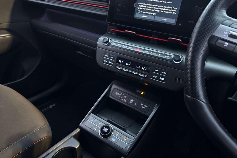 12.3" touchscreen centre console display satellite navigation with bluelink, live services and mapcare, Bluetooth connectivity with voice recognition, Digital clock, Driver status monitor (DSM), Driver supervision instrument cluster with 12.3" LCD display, eCall emergency call system, Feature on demand - Enabled, Forward collision avoidance assist (FCA 1.5) - Car, pededstrian, cycle and junction turning, Front parking sensor, HDA - Highway Drive Assist Level 1.5, Height adjustable power tailgate, Intelligent speed limit assist, Lane follow assist, Lane keep assist, Leading vehicle departure alert (LVDA), Parking system with rear camera and guidance system, PAS, Rear parking sensor, Roadside assistance, Smart cruise control with stop and go functionality, Windscreen washer fluid sensor and warning indicator, Wireless phone charging pad, Wireless Smartphone Integration includes Apple CarPlay and Android auto, 2 front USB C and 2 rear USB C charging points, DAB Digital radio, Speakers - Front, rear and tweeters, Steering wheel audio, phone and cruise controls, Auto dimming rear view mirror, Automatic headlights with dusk sensor, Automatic windscreen wipers with rain sensor, Body colour bumpers, Body colour exterior door handles, Body coloured wheel arch inserts, Door mirror LED indicator lights, Electric front windows with anti-trap mechanism and one touch control, Electric rear windows, Electrically adjustable and heated door mirrors, Full LED MFR headlights, Gloss black door mirrors, LED daytime running lights, LED upper and lower rear lights, Power folding door mirrors, Privacy glass - Rear windows and tailgate, Rear roof spoiler with integrated LED brake light, Rear side wing doors, Rear wiper, Roof rails, Solar glass with front door glass and windscreen, Tinted glass in front and rear doors, Windscreen auto defog function, 12V power outlet in front console, 2 zone climate control, 3 seat bench in 2nd row, 40/20/40 split folding rear seat, Adjustable head restraints, Aluminium pedals, Ambient lighting, Driver and passenger front seat pockets, Driver's seat lumbar support, Driver/passenger manual seat height adjustment, Driver/passenger sunvisors and illuminated vanity mirrors, Floor mats, Heated front seats, Heated rear seats, Heated steering wheel, Height/reach adjustable steering column, Isofix rear child seat fastenings, Leather wrapped steering wheel, LED centre interior light, LED front interior light, Luggage compartment LED lighting, Luggage shelf, Metal paint effect interior door handles, N Line cloth upholstery, Parcel shelf, Rear centre armrest with cupholders, Rear centre console with air vents, Shift by wire SBW, Single front passenger seat, Vertical adjustment rear head restraints, N Line exterior design pack - Kona, Trailer wiring package - Kona, Airbag - front, front side, curtain and centre front airbag, Anti-lock brake system (ABS), Childproof rear door locks, Downhill brake control, EBD + Brake Assist, Electric parking brake, Electronic stability control, Fasten seatbelt reminder, Fixed 3 point for second row centre passenger seatbelt, Front seatbelt pretensioners, Height adjustable front seatbelts, Hill start assist control (HAC), Passenger airbag deactivate switch, Rear seat alert, Traction control, Tyre pressure monitoring system, Alarm/immobiliser, Deadlocks, Folding key, Locking wheel nuts, Rear occupant alert, Remote central locking, Smart key with keyless entry and start/stop button, Five year annual vehicle health checks, Temporary mobility kit (TMK),