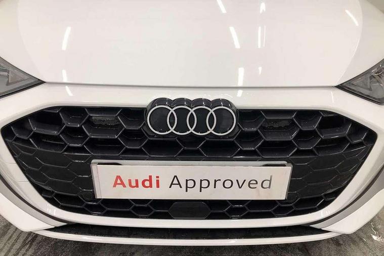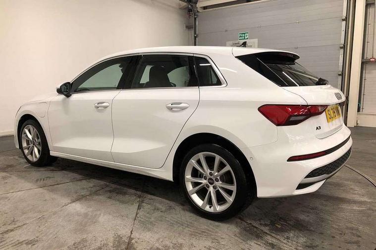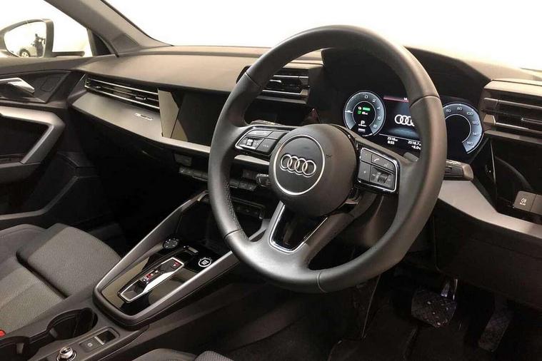 Adaptive cruise control (ACC), Adjustable speed limiter, Audi drive select (Auto, Comfort, Dynamic, Efficiency and Individual), Audi virtual cockpit plus - 12.3" full HD resolution dynamic digital instrument cluster, Automatic start/stop system with recuperation, Bluetooth interface, Camera based traffic sign recognition, Collision avoidance assistant, Driver attention and fatigue detection, e-Call (emergency call), Electromechanical power speed sensitive steering, Emergency assist, Intersection assist, Lane departure warning system, MMI Navigation Plus with high resolution 10.1" colour touch screen display, Park Assist with parking system Plus, Reversing camera, Service indicator, Smartphone interface with app store includes wireless Apple carplay, Android auto and Amazon alexa integration, Trip computer, Voice control system with natural language interaction, 3 pin 10 amp domestic charging cable, CCS socket for DC charging, Charging cable for public charging, mode 3 (type 2), 32 A, Compact charging system, Industrial connector CEE 32 A, 230 V, length 1.6 m, Standard suspension, Type 2 socket for AC charging, Audi Phonebox light with wireless charging, Audi sound system - 10 loudspeakers including centre loudspeaker and subwoofer, DAB Digital radio, USB ports with charging function in the rear, 3rd brake light, Acoustic glass windscreen, Aluminium window trim, Auto dimming frameless rear view mirror, Body colour exterior mirrors, Body colour roof spoiler, Electrically adjustable/heated/folding/auto dimming door mirrors with integrated LED indications + kerb view function for passenger side, Exterior model badging, Front electric windows, Front radiator grill in high gloss dark chrome, Front side air inlets in grained matt black with silver frame, Heat insulating glass windscreen, LED daytime running lights, LED headlights and halogen rear lights, Light and rain sensors, Rear diffuser and grill in grained matt black with silver frame, Rear electric windows, Rear side wing doors, Rear window, rear door windows and rear side windows in clear glass, Rear wiper, 12V socket and storage compartment in front centre console, 3 seat bench in 2nd row, 3 spoke leather multifunction steering wheel with gear shift paddles, 3-zone deluxe automatic air conditioning, 4 way electrically adjustable lumbar support for driver and front passenger, 60/40 split folding rear seat bench, Black front and rear floor mats, Convenience auxiliary air conditioning, Front and rear headrests, Front centre armrest, Front door sill trims with aluminium inlay, Heated front seats, Height and reach adjustable steering wheel, i-Size child seat mounting on the front passenger side and outer rear seats, i-Size and top tether on the outer rear seats, Manual boot compartment lid, Manually adjustable front seats, Routine cloth upholstery with front sports seats, Seat side bolsters, Single front passenger seat, Steel grey cloth headlining, Aluminium interior elements pack - A3, LED interior lighting pack -A3, 3x3 point rear seat belts, Acoustic vehicle alerting system, Driver and front passenger airbag with passenger airbag deactivation, Electronic Stabilisation Control (ESC) including ABS, ASR and EDL, First aid kit with warning triangle and 2 safety vests, Front side airbags with head airbags and interaction airbag, Hill hold assist, Pre-sense front with pedestrian and cyclist detection, Seatbelt monitoring, Tyre pressure loss indicator, Anti theft alarm, Anti-theft wheel bolts, Electronically operated child locks, Immobiliser, Black dashboard, Inlays in volcano grey fine paint finish, Tyre repair kit,