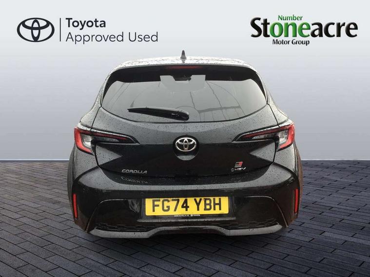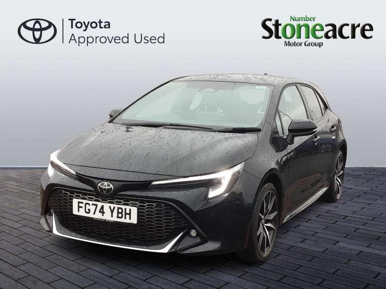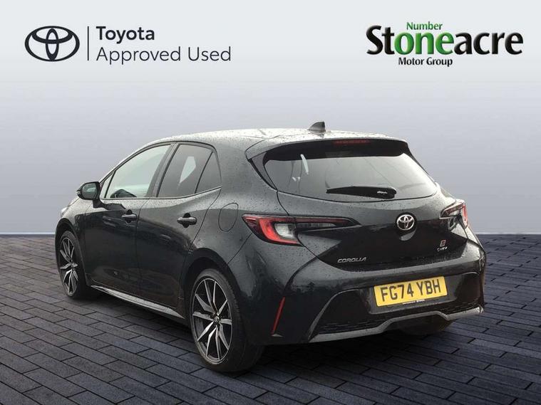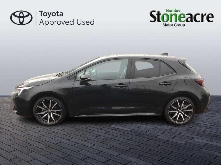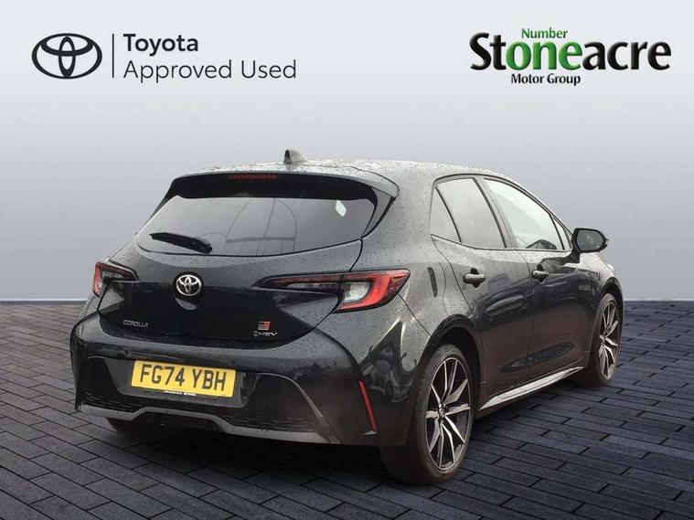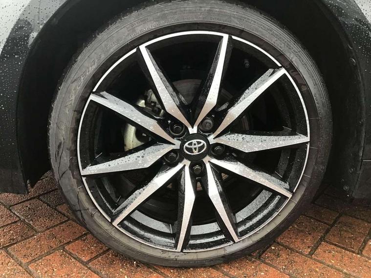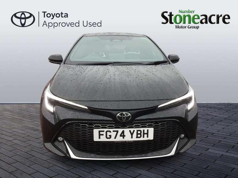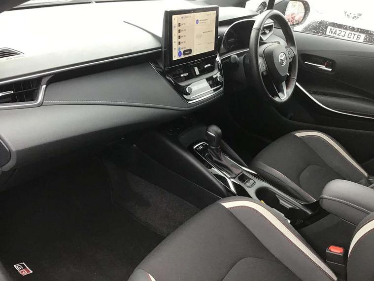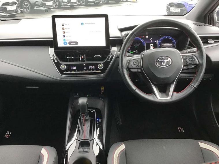 10.5" Multimedia display screen, Bluetooth telephone connectivity, Connected car functionality upgrade, tracker, remote status and e-care, Drive mode select (Eco, Normal), E-call, Electrically assisted power steering, EV drive indicator, Front and rear parking sensors with auto brake, Full Digital 12.3" TFT Digital Combimeter, Key reminder warning, Lane Departure Alert (LDA) switch on steering wheel, Memory on adjustable speed limiter, MyT connected services, Proactive driving assist (PDA), Reversing camera, Smart entry and push button start with GR Logo, Smartphone integration with Apple CarPlay and wired android auto, Tailgate, Toyota remote services, Toyota smart connect navigation, Wireless charger, Gasoline particulate filter, Vehicle Stability Control (VSC), 6 speakers, AM/FM radio, DAB Digital radio, Front USB-C in centre console, Front USB-C in dashboard, Smart voice assist/ Voice recognition, USB and Aux in connectors + 12V front outlet, Anti-jam protection on power windows, Auto up and down function on all power windows, Automatic folding mirrors, Automatic headlights with high beam assist, Black centre and side air vents, Black toyota logo in front, Body coloured bumpers, Body coloured door mirrors, Body coloured outside door handles, Dark chrome lower grille, Electrochromatic mirror, Follow me home headlights, GR Sport dark chrome front mesh grille and black rear grille, GR Sport exclusive under guard, GR sport scuff plates, LED daytime running lights, LED dual beam projector headlights, LED front fog lights, LED High mounted stop light, LED rear combi lights with LED lightguide, Manual headlight levelling system, New grille pattern, Noise reduction layer on windscreen, Piano black diffuser, Power adjustable heated door mirrors, Power front windows, Power rear windows, Privacy glass with UV filter, Rain sensing wipers, Rear side wing doors, Rear window defogger, Rear window wiper, Reverse tilting door mirrors, Rocker and door lower moulding, Roof spoiler, Satin chrome insert on front air vents, Satin chrome insert on front door assist grips, Satin silver front spoiler, Shark fin antenna, Tailgate release with push button, Time adjustment on intermittent wiper, Turning signal integrated indicators in door mirrors, Unique lower skirt, Unique side rocker with black insert, UV-filter on driver and passenger windows, 2 Shopping bag hooks in luggage compartment, 3 rear headrests, 3 seat bench in 2nd row, 3 spoke leather steering wheel with satin insert/red stitching + gear knob, 4 tie down hooks in luggage compartment, 60/40 split folding rear seat, Adaptive cruise control (ACC) switch on steering wheel, Adjustable speed limiter switch on steering wheel, Audio, multimedia and telephone switches on steering wheel, Black armrest on centre console box, Black gear shift console, Boot light, Centre room light, Driver and front passenger personal light, Driver and passenger assist grip, Driver and passenger seatback pockets, Driver and passenger sun visor with mirror and light, Dual zone automatic air conditioning with ECO mode switch, Fabric/synthetic leather upholstery, Front and rear cup and bottle holders, Front door pockets, Front head restraints, Front passenger seat, Front sliding synthetic leather armrest, GR Sports seats with partial leather bolsters, Heated seats, Illuminated entry system in room lamp, ISOFIX seat fixing (2 fixings on rear outer seats), Manual height adjustable for driver and front passenger seat, Manually tilt with sliding driver and front passenger seat, Nanoe-X air purifier, Parcel shelf, Pollen filter, Power window switches with satin chrome inserts, Rear armrest with 2 cupholders, Rear passenger coat hooks (2), Red stitching on gear shift, Remote air conditioning, Satin chrome inside door handles, Satin chrome surround on speedometer, Sliding armrest on centre console box, Slow opening glovebox with lights, Textile floor mats, Tilt/telescopic steering column, Voice recognition switch on steering wheel, Whiplash Injury Lessening (WIL) feature (active headrest) for seats, White ambient lighting on open tray and front cup holder, Toyota safety sense 3 pack - Corolla, 3x3 point rear seatbelts, Adjustable driver and front passenger seat belt extender to top anchor point, Anti lock braking system + Electronic brake force distribution, Brake assist function, Child locks on rear doors, Downhill Assist Control (DAC), Electronic parking brake, Emergency brake light signal (EBS), Front passenger airbag on/off switch, Front seatbelt reminder, HAC - Hill start assist control, Rear seat belt reminder, Seatbelt pretensioners and force limiters, Supplemental restraint system (SRS) 7 airbags - dual driver, dual side curtain, side impact and driver knee airbags, Traction control, Tyre pressure warning system, Acoustic vehicle alert system (AVAS), Alarm with motion sensor and immobilizer, Power passenger window lock, Remote central locking + deadlocks, GR Sport interior styling with accents and exterior styling, Satin chrome dash trim, Soft touch texture on upper dashboard, Stitching on lower dashboard, 18" Black machined face 10 spoke alloy wheels, Tyre repair kit, Unique wheel finish with red wheel cap,
