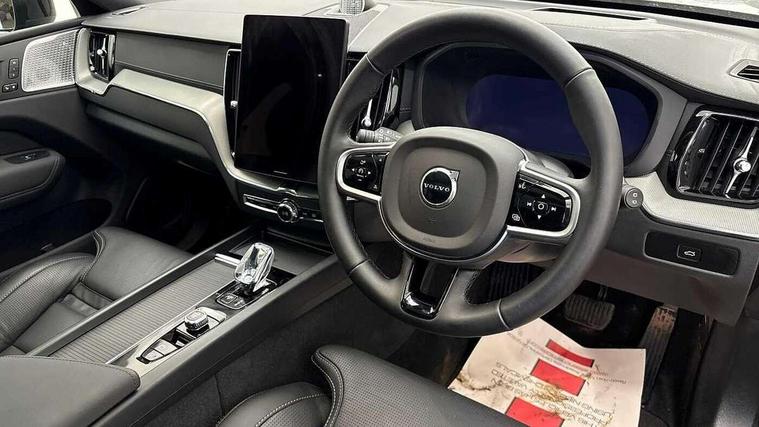 11.2" centre console touch screen, 12.3" Progressive Driver Display, 360 degree surround view parking camera with side proximity sensors, Adaptive cruise control, Adjustable steering wheel force, Android auto (Wired), Apple carplay (wired), Bluetooth handsfree system, Driver alert control with lane keeping aid, Emergency services call system, Front and rear park assist, Google Automotive Services, Intelligent speed assistance, Oncoming Lane Mitigation, PAS, Power operated tailgate with handsfree opening and closing, Service interval indicator, Speed limiter, Speed sensitive steering, Trip computer, Volvo cars services with app, Volvo on call with App, Wireless/Inductive Mobile Phone Charging, 8 speed automatic transmission with start/stop + manual change functions, Active four-C chassis + four corner adaptive damper with electronic rear air suspension, DAB Digital radio, Premium sound by Bowers and Wilkins, dirac live, dolby pro logic II surround sound, 14 speakers/1100W output and fresh air subwoofer, Steering wheel remote infotainment controls, Active bending headlights with adaptive shadow technology, Adaptive brake lights with high level LED brake lights, Auto dimming interior + exterior mirrors, Automatic headlight levelling system, Automatic LED Headlights + Active high beam incorporating daytime running lights, Dark tinted windows for rear side windows and cargo area, Electric adjustable/heated/auto power folding door mirrors, Electric front+rear windows, Front aluminium tread plates, Headlight cleaning system, High gloss black door mirrors and window surround, High gloss black front and rear bumper decoratives, High gloss black front grille, Surround, Strikethrough and Ironmark, High gloss black rear model, engine and volvo logo badges, Home safe and approach lighting, Integrated roof rails in high gloss black, LED front fog lights with static cornering light function, Power glass tilt and slide panoramic sunroof with sun curtain, Puddle lights, Rain sensor with automatic windscreen wiper activation, Rear side wing doors, Rear wiper, Roof antenna, Roof spoiler, Tinted windscreen, Visible VIN plate, 12V socket in front tunnel console and luggage compartment, 3 seat bench in 2nd row, 3 Spoke tailored steering wheel with chrome trim, 4 Zone electronic climate control, A-pillar parking ticket holder, Air purifier particulate matter (PM) 2.5 filter, B Pillar ventilation, Bright metal luggage scuff plate, Centre console cupholders and storage, Charcoal floor mats, Front and rear courtesy lights, Front and rear door pocket illumination, Front cupholder illumination, Front footwell illumination, Front headrests, Front reading lights, Front seat cushion extensions, Glovebox compartment with illumination, Heated front seats, Heated steering wheel, Height/reach adjustable steering column, Illuminated luggage compartment, Illuminated vanity mirrors + ticket holder, Inner door release handle illumination, ISOFIX attachment on outer rear seats, Load cover, Load protection net, Multi directional lumbar support, Nappa soft leather perforated and ventilated upholstery with front seat backrest massage and power side support, Power driver seat with memory + exterior mirrors memory, Power folding rear headrests, Power height adjustable passenger seat, Power passenger seat with memory, Rear armrest with cupholder, Rear footwell and front and rear side step illumination, Rear reading lights, Rear seat concealed storage, Single front passenger seat, Tailgate illumination and ambient door lighting, Underfloor stowage compartment, Versatile split folding rear seat - 60/40, Driver assist pack without Adaptive cruise control - XC60, 5 three point seatbelts, City safety with steering support with Pedestrian + cyclist + front collision warning with full auto brake and rear auto brake, Drivers knee airbag, Dual stage driver/passenger airbags, Electronic parking brake with auto hold, First aid kit, Front seats SIPS airbags, Hill descent control - Off-road drive mode, Hill start assist, IC (Inflatable Curtains) - Full Length, Passenger airbag cut-off device, Power child locks on rear doors, Run off Road Mitigation, Run off Road Protection, Seatbelt reminder and pretensioners, SIPS (Side Impact Protection System), Slippery road and hazard light alert, Stability and Traction Control with Spin control, Engine Drag Control and Corner Traction Control, Tyre pressure monitoring system, Vehicle deceleration control with Anti-lock Brake System, Electronic Brake Distribution and Emergency Brake Assist, Warning triangle, WHIPS whiplash protection system - front, Anti-theft alarm including immobiliser/volume sensor + level sensor, Key integrated remote control central locking + fuel flap with deadlocking system and auto open/close power windows, Keyless Drive (includes Keyless Entry and Keyless Start), Locking wheel nuts, Private locking for tailgate, Tailored instrument panel with contrast stitching, Summer tyres,