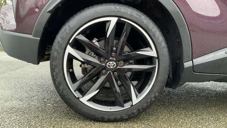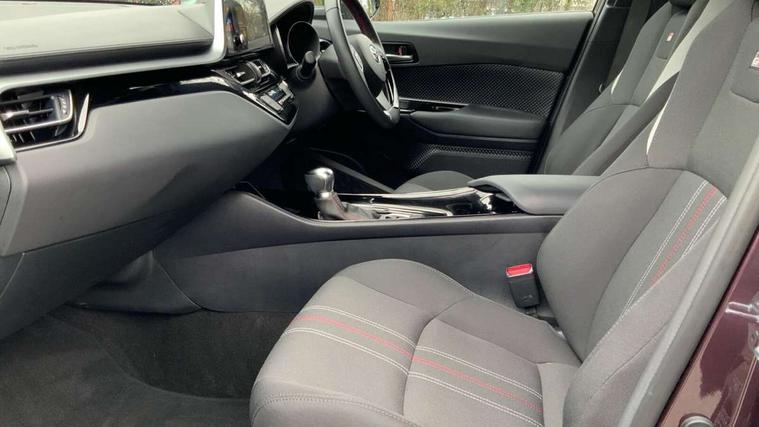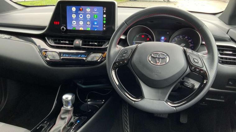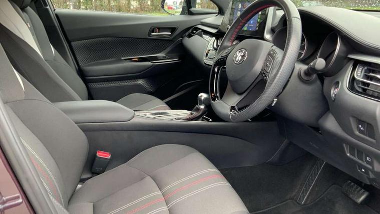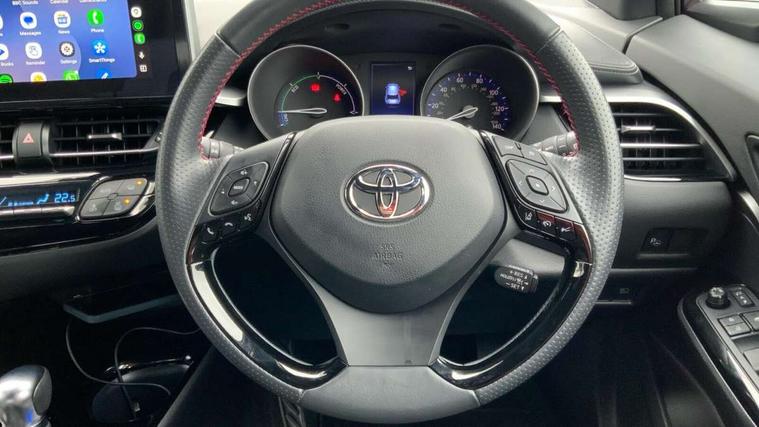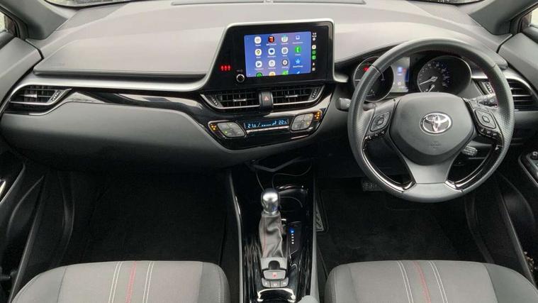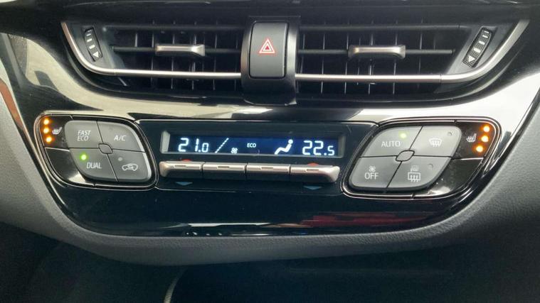 4.2" coloured TFT screen for multi-information display, Adaptive cruise control, Bluetooth connectivity, E-call, Electric power steering, Hybrid system indicator, Lane departure alert with steering control, Lane trace assist, Push button tailgate release, Remote boot door release in cabin, Remote boot door release in key, Reversing camera, Road sign assist - RSA, Simple Intelligent parking assist, Smart voice assist, Touch 2 Go navigation system, Trip computer, Voice recognition, Wireless smartphone integration, Vehicle Stability Control (VSC), 6 speakers, AM/FM radio, DAB Radio (Digital Audio Broadcasting), Toyota touch 2 multimedia system with 8" display, USB connector, Wi-fi connectivity, Adaptive front light system, Adaptive LED Headlights, Anti-jam protection on power windows, Auto high beam, Auto up and down function on all power windows, Automatic headlight levelling, Automatic headlights, Automatic headlights cut-off, Black and body coloured rear bumper, Black upper front grille, Body colour door handles, Body colour door mirrors, Body coloured front bumper, Boot door release with push button, Chrome front lower bumper, Electric heated door mirrors, Follow me home headlights, Front and rear power windows, Front spoiler lip in black, Headlight cut off reminder, Honeycomb lower front grille, LED daytime running lights, LED fog lights, LED front light guide, LED High mounted stop light, LED rear brake lights, LED rear combination lights, Noise reduction layer on front windows and windscreen, Power adjustable door mirrors, Privacy glass, Rain sensor, Rear sequential indicators, Rear side wing doors, Rear spoiler, Rear tailgate, Rear window defogger, Rear window wiper, Shark fin antenna, UV-filter on driver and passenger windows, UV-filter on rear windows, 12v power outlet - front, 3 rear headrests, 3 seat bench in 2nd row, 3 spoke perforated leather steering wheel, 60/40 split folding rear seat, Adjustable rear headrests, Adjustable speed limiter switch on steering wheel, Assist grips front and centre pillar, Audio and telephone switches on steering wheel, Black front door assist grips, Blue ambient lighting on front cup holders, Blue ambient lighting on front doors, Boot light, Chrome interior door handles, Cloth upholstery, Driver and front passenger personal light, Driver and front passenger Whiplash Injury Lessening seats, Driver and passenger seatback pockets, Dual zone automatic air conditioning, Floor mats, Front cupholders, Front head restraints, Front sports seats, Glovebox with internal light, Hard tonneau cover, Heated driver and front passenger seats, Hooks for luggage holding net, Humidifying Nanoe air purifier, Illuminated entry system, Isofix attachments on outer rear seats, Leather gearshift, Light on driver sun visor, Light on passenger sun visor, Manual telescopic steering wheel, Manual tilt steering wheel, Manually height adjustable driver seat, Manually height adjustable front passenger seat, Manually reclining driver seat, Manually reclining front passenger seat, Manually sliding driver seat, Manually sliding front passenger seat, Microphone on front personal light, Mirror on driver sun visor, Mirror on passenger sun visor, Multimedia switches on steering wheel, Pollen filter, Power adjustable lumbar support on driver seat, Shopping bag hooks, Single front passenger seat, Slow opening on lower glovebox, Voice recognition switch on steering wheel, Tech with parking sensor pack - C-HR, 16 Disk front wheel brake, 3x3 point rear seatbelts, ABS+EBD+Brake assist, Electronic parking brake, Front and rear seatbelt reminder, Front passenger airbag on/off switch, Hill start assist control (HAC), Pre collision system with pedestrian detection, Pre-tensioners and force limiters, Rear door child safety locks, SRS Airbags - Driver + Front passenger, front side, front and rear curtain and driver's knee airbags, Toyota safety sense, Tyre pressure monitoring system, Tyre pressure warning system, Acoustic vehicle alert system (AVAS), Glass-breaking alarm sensors, Immobiliser, Intrusion alarm, Intrusion sensor, Motion sensor alarm, Power door locks, Power passenger window lock, Remote central locking, Black lower dashboard, Black upper dashboard, Piano black console, Silver deco line on upper dashboard, 19" Black machined alloy wheels, Tyre repair kit,