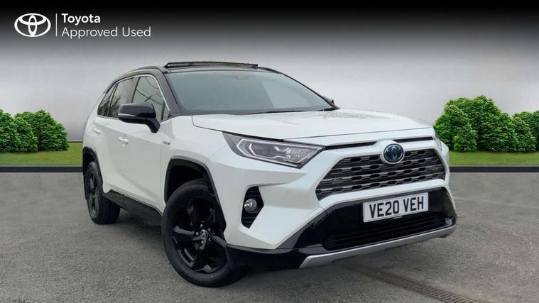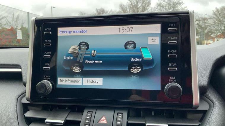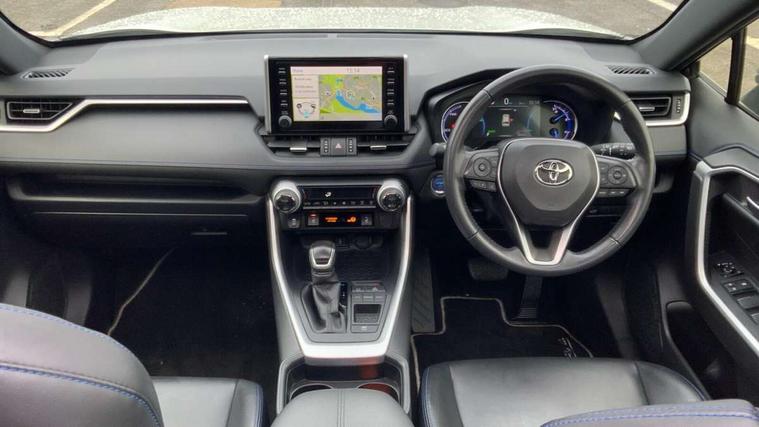 7" colour TFT display, Adaptive cruise control with lane trace assist, Adjustable speed limiter, Apple car play and Android auto, Blind spot monitoring with rear cross traffic alert, Bluetooth system, Cyclist Detection, Drive mode selector, eCall emergency call system, ECO-driving indicator, Electric power steering, EV audible alert, Hybrid system indicator, Lane departure warning system, Lights on warning, Night Time Pedestrian Detection, Pedestrial detection, Power boot opening and closing, Rear parking camera, Rear parking sensors, Remote boot door release in cabin, Tachometer, Touch 2 Go navigation system including 3D maps and voice control, Traffic sign recognition, Trip computer, Voice control system, Vehicle Stability Control (VSC), 6 speakers, 8" Multimedia display touch screen, Auxiliary socket for external MP3 player, DAB audio, Steering wheel mounted audio controls, Toyota touch media system, USB connection, Auto dimming interior mirror, Auto high beam, Automatic headlamp levelling, Automatic headlights, Automatically retractable door mirrors, Bi-tone black roof, Black door mirrors, Black rear spoiler, Black roof rails, Black Shark-fin antenna, Body colour door handles, Body coloured bumpers, Door mirror puddle lights, Electric adjustable door mirrors, Emergency brake-light signal (EBS), Follow me home headlights, Front fog lights, Gloss black front bumper insert, Gloss black rear bumper insert, Headlight cleaners, Heated door mirrors, LED daytime running lights, LED High mounted stop lamp, LED rear lights, Meshed upper front grille, Power front windows, Power rear windows, Privacy glass, Projector LED headlights, Rear screen wiper - intermittent, Rear windscreen defogger, Silver front under-run, Silver rear under-run, Trailer Sway Control, Turning signal integrated indicators in door mirrors, 3 rear headrests, 60/40 split fold rear seat back, Black roof lining, Boot light, Clean air filter, Driver and front passenger personal light, Driver and front passenger Whiplash Injury Lessening seats, Driver and passenger sunvisors with illuminated vanity mirrors, Dual sided deck board in boot, Dual zone automatic air conditioning, Floor mats, Folding rear centre armrest, Front and rear bottle holders, Front centre armrest, Front footwell lights, Front headrests, Front seat and rear pockets, Front sport seats, Front/rear roof mounted assist grips, Heated driver and front passenger seats, Isofix child seat preparation, Leather gear shift with chrome surround, Light blue ambient lighting on front cupholders and open tray, Manual telescopic and tilt 3-spoke leather steering wheel with Chrome insert, Manually reclining and sliding front passenger seat, Pollen filter, Power height-adjustable sliding reclining and lumbar support for driver seat, Rear coat hooks, Rear door armrests, Rear passenger air vents, Reclining rear seats, Satin chrome interior door handles, Sunglasses holder, Synthetic leather upholstery, 3x3 point rear seatbelts, ABS/EBD, Adjustable front driver and passenger seat belt extender, Brake assist function, Child proof door locks, Collision mitigation braking system, Driver/Front Passenger airbags, Driver/front passenger side airbags, Drivers knee airbag, Electronic parking brake, Electronic Stability Programme (ESP), Emergency brake light system (EBS), Front and rear curtain airbags, Front and rear seatbelt reminder, Hill start assist, Passenger airbag cut-off device, Seatbelt pretensioners with load limiters, Traction control, Tyre pressure warning, Alarm/immobiliser, Glass-breaking alarm sensors, Light - on and Key in reminder, Remote central locking, Smart entry + Smart start, Speed sensitive auto door locking, Tilt detection sensors, Piano black centre console with silver insert, Soft-touch black lower dashboard, Soft-touch black upper dashboard with silver insert, Full size spare wheel,