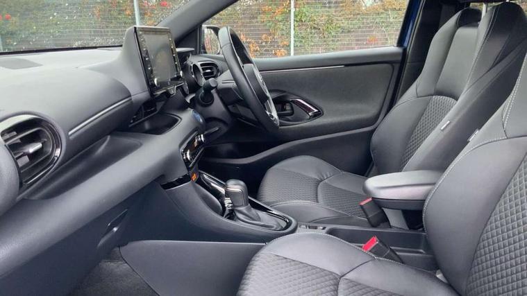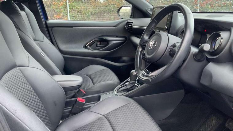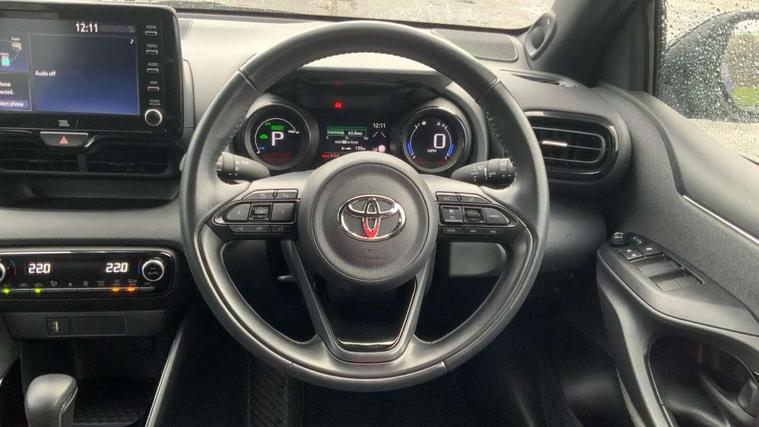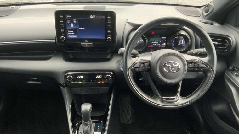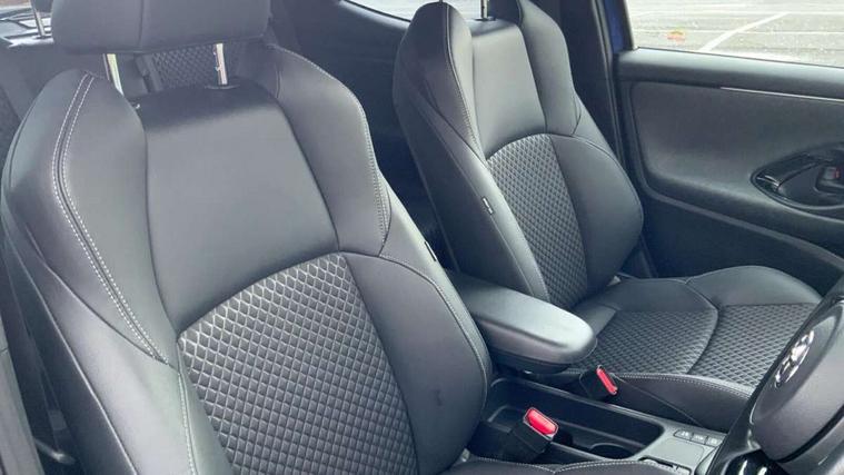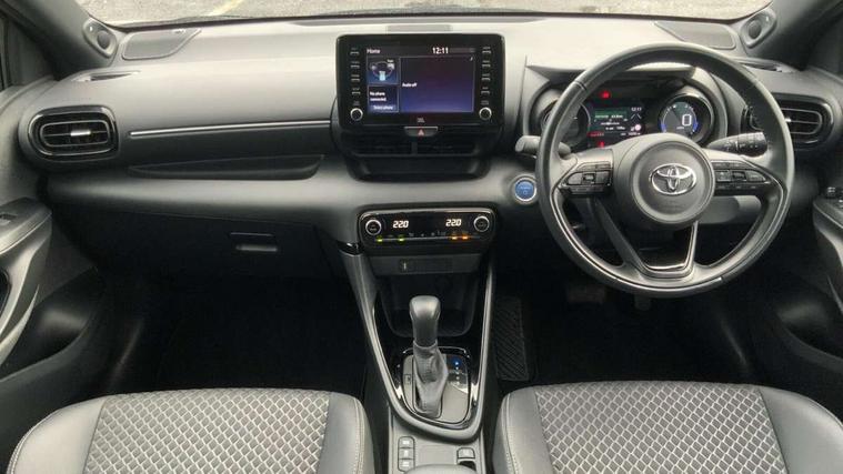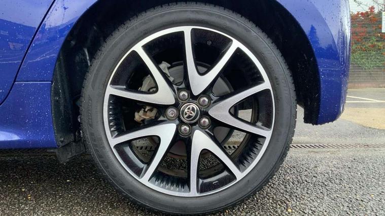 Adaptive cruise control, Adjustable speed limit with speed warning, Bluetooth connectivity, Colour binocular inspired displays with digital speedometer, E-call, Electric power steering, Hybrid energy display, Multi information display switches on steering wheel, Reversing camera, Smartphone integration with Apple CarPlay and Android auto, Vehicle Stability Control (VSC), 8" Multimedia display touch screen, JBL Premium sound system with 8 speakers, Toyota Touch 2 with DAB, USB connection, Acoustic windscreen glass, Automatic headlights, Automatic windscreen wipers with rain sensor, Body coloured door mirrors, Electric adjustable heated door mirrors, Follow me home headlights, Front auto power windows with anti jam protection, Full LED rear lights, LED daytime running lights, LED front fog lights, LED Headlights, LED High mounted stop lamp, Painted front grille, Rear auto power windows with anti jam protection, Rear privacy glass, Rear side wing doors, Rear spoiler, Rear wiper, Shark fin antenna, Turning signal integrated indicators in door mirrors, 3 adjustable rear headrests, 3 spoke leather steering wheel, 60/40 split folding rear seat, Active headrests, Adjustable boot height, Coat hooks in rear grab handles, Cup holders (2 front & door), Data Communication Module (DCM) connected services, Dual zone automatic air conditioning, Fabric seat with partial synthetic leather upholstery, Front armrest, Front sport seats, Glovebox, Height adjustable driver's seat, Height adjustable passenger seat, Isofix seat fixing, Leather gearshift, Map pockets on the backs of the front seats, Pollen filter, Shopping bag hooks, Single front passenger seat, Tilt/telescopic steering column, 3 point seatbelts on all rear seats, ABS+EBD+Brake assist, Electronic parking brake, Emergency brake light system (EBS), Front passenger airbag on/off switch, Front seatbelt reminder, Hill start assist control (HAC), Rear child proof door locks, Rear seat belt reminder, Supplemental Restraint System (SRS) 8 airbags: Driver & passenger's airbags, dual side curtain airbags, side impact airbags, front centre airbag, Toyota Safety Sense 2, Precollison + Night time Pedestrian & Cyclist Detection, Lane Trace Assist, Auto High Beam, Intelligent ACC & Road Sign Assist, Tyre pressure warning system, Alarm/immobiliser, Keyless smart entry with push button start, Remote powered central double locking doors, Piano black interior trim, Soft touch instrument panel, Space saver spare wheel,