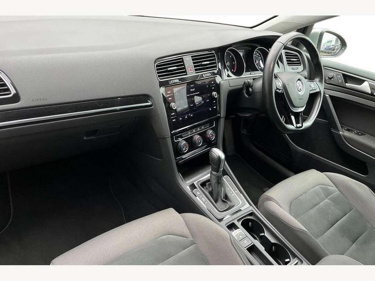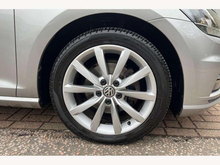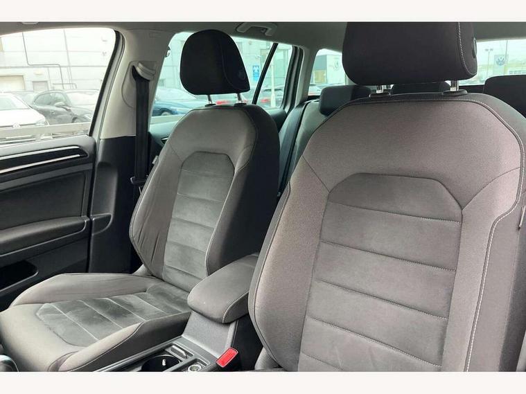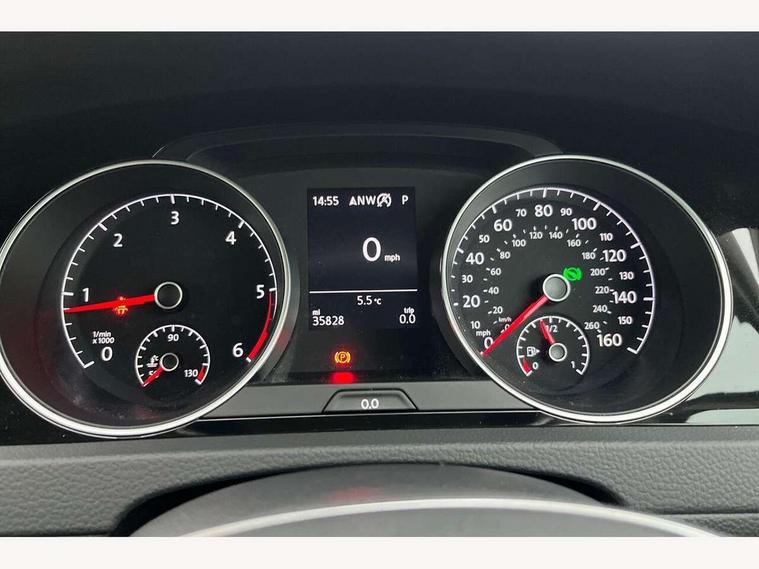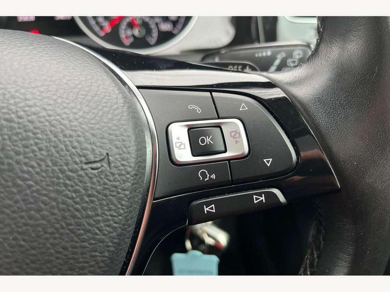 'Lights On' Reminder warning buzzer, 8" touch screen, Adaptive Cruise Control with pedestrian detection and speed limiter, Bluetooth hands free telephone connection, Brake pad wear indicator warning light, Drive mode selector, Driver alert system, Driver profile selection, Exterior temperature gauge, Instrument cluster in white, Multifunction computer, PAS - speed related, Rev counter, Trip and service interval display, Ultrasonic front and rear optical and audible parking sensors, Warning buzzer and light for front seatbelts unfastened, Diesel particulate filter, Lowered sports suspension, XDS electronic differential lock, CD/MP3/WMA, USB and SD card reader, aux-in, Composition media system, DAB Digital radio, Auto dimming rear view mirror, Automatic coming/leaving home lighting function, Automatic headlights, Black front air intake and radiator grille with chrome insert, Black rear diffuser, Body colour bumpers, Body colour door handles, Body colour door mirrors, Chrome grille surround, Electric front windows, Electric rear windows, Electrically adjustable and heated door mirrors, Heat insulated tinted glass 65% light absorbing from B pillar back, Heated rear windscreen, LED daytime running lights, LED front fog lights with static cornering light function, LED rear lights, Rain sensor, Rear roof spoiler, Rear windscreen washer and wiper with interval delay, Silver roof rails, 12V socket in luggage compartment, 3 rear headrests, 3 spoke steering wheel, 60/40 split folding rear seat, Bag hook in luggage compartment, Boot lashing points, Cooled glovebox, Courtesy light delay, Cover for storage compartment in centre, Dust/pollen filter, Front + rear carpet mats, Front centre armrest with storage box and rear air vents, Front passenger seat height adjust, Front seat back storage pockets, Gearshift paddles, Grab handles, Height/reach adjust steering wheel, Illuminated vanity mirrors, Isofix preparation for 2 rear child seats, Load through provision with rear centre armrest and cupholders x2, Luggage compartment cover, Luggage compartment lighting, Multifunction leather steering wheel with leather gear knob/handbrake grip, Overhead storage box, Pearl grey headlining, Storage compartments in doors, Sun visors, Variable boot floor, height adjustable and removable, Ambient lighting pack - Golf, Mirror pack - Golf, 3 point height adj front seatbelts + pretensioners, 3 rear 3 point seatbelts, ABS, Automatic post collision braking, Child locks on rear doors, Driver/Front Passenger airbags, Driver/Passenger whiplash optimised head restraints, Drivers knee airbag, Electronic parking brake with auto hold, ESP with EDL + ASR, Front and rear curtain airbags, Front assist including city emergency braking, Front passenger airbag deactivation, Front side airbags, Pre crash system, Tyre pressure monitor, Alarm with interior protection, Electronic engine immobiliser, Locking wheel bolts, Remote central locking with 2 remote folding keys, Chrome-plated light switch surround, Piano black centre console, Tumbler decorative inserts, Steel space saver spare wheel,