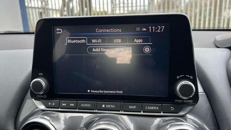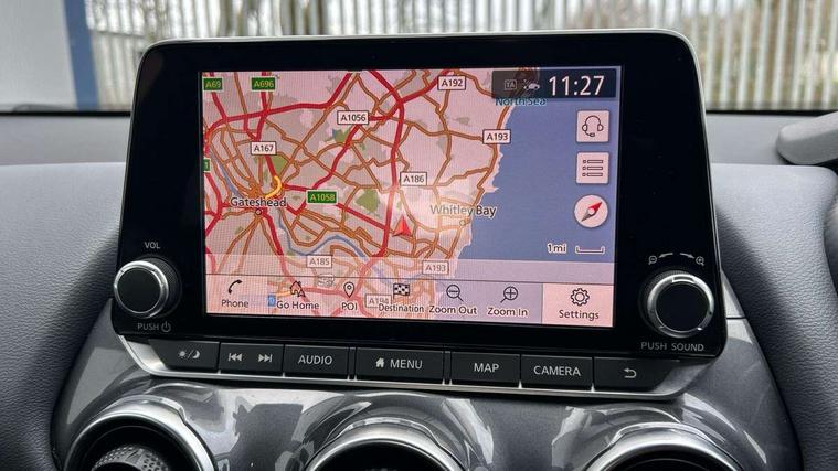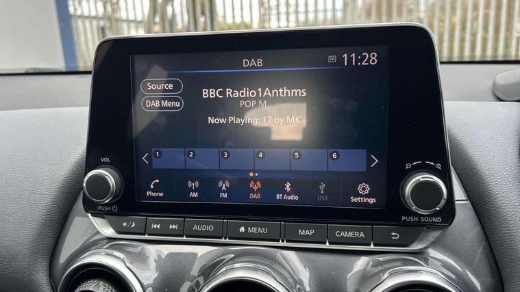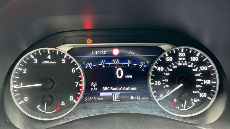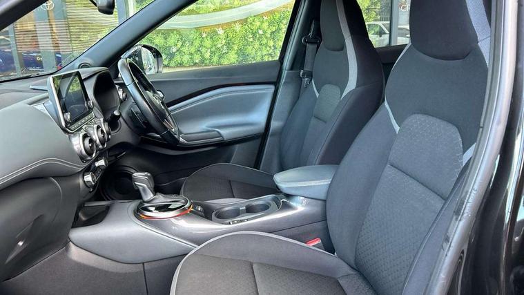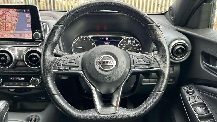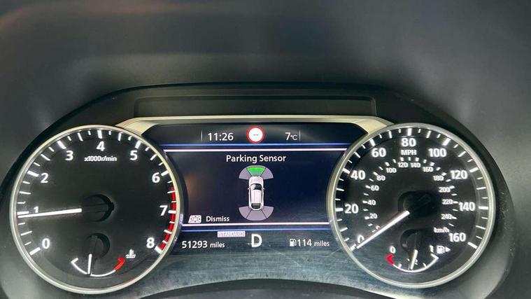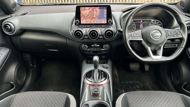 7" full colour TFT screen combimeter, 8" infotainment colour display with touch screen, Apple CarPlay and Google Android auto, Drive modes select (Eco, normal and sport), Emergency and breakdown call, Front parking sensor, Idle start/stop system, Intelligent lane intervention, Lane departure warning system, Nissan connect nav with TomTom traffic, Nissan connect services and Wifi connection, Outside temperature sensor, Power Steering, Rear parking sensor, Traffic sign recognition, Trip computer, Gasoline particulate filter, 6 speakers, Bluetooth system, USB, Aux-in and 12V socket, DAB Digital radio, Rear console USB port, Auto dimming interior rear view mirror, Automatic hazard signal with emergency stop signal, Body colour bumpers, Body colour door handles, Electrically adjustable door mirrors with integrated indicators, Follow me home headlights, Front and rear electric window with one touch driver and passenger window, Heated and auto folding door mirrors, High beam assist, LED daytime running lights, LED front fog lights, LED headlamps, LED rear fog lamp, LED rear lamps, Rain sensor windscreen wipers, Rear privacy glass, Rear spoiler, Rear wiper, Three blink turn signal, 3 height adjustable rear headrests, 60/40 split folding rear seat, Automatic climate control, Card holder on driver sunvisor, Cloth upholstery, Door ambient lighting, Driver and passenger sliding and reclining seats, Driver seat back pocket, Driver side rear coat hanger, Driver/passenger sunvisors and illuminated vanity mirrors, Front and rear cabin lights, Front armrest, Front door pockets with bottle holders, Front head restraints, Front/rear passenger grab handles, Gear console ambient circle lighting, Grey synthetic leather kneepad, Height adjustable driver's seat, Internal chrome door handles, Leather gearshift knob, Leather steering wheel, Luggage board, Luggage space lighting, Monoform sporty seats, Multifunction steering wheel, Passenger seat back pocket, Rear door bottle holders, Steering wheel mounted gearshift paddles, Telescopic steering wheel adjustment, Two cupholders in front centre console, Two rear isofix child seat anchorage points with top tether, Voice recognition switch on steering wheel, Welcome light and console tray ambient lighting, ABS with EBD and brake assist, Active ride control, Active Trace Control, Driver and passenger airbags, Driver and passenger side airbags, Electric handbrake with auto hold function, Electronic Stability Programme (ESP), Front and rear curtain airbags, Height adjustable seatbelts, Hill start assist, Intelligent emergency braking with pedestrian and cyclist recognition, Seatbelt reminder for driver/front passenger and rear seats, Single tone horn, Three 3 point rear seatbelts, Traction control, Tyre pressure monitoring system, VDC Dynamic Vehicle Control, Ventilated rear brake discs, Alarm, Immobiliser, Intelligent Key with push button starter, Remote central locking,