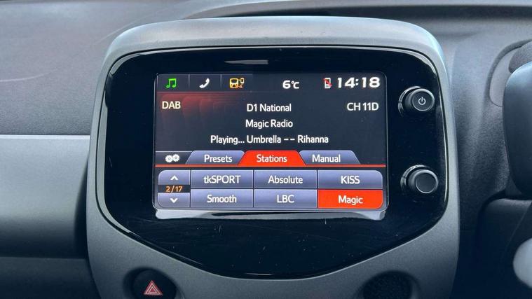 7" touch screen, Bluetooth system, Digital clock, Electric power steering, Fuel indicator with low level warning, Lights on warning, Rear view camera, Speed limiter, Tachometer, X-Navigation system, Vehicle Stability Control (VSC), Auxiliary input socket, DAB Digital radio, iPod connection, MP3 connection, Multimedia System, Stereo radio, USB connection, 2 speed wipers/variable intermittent/mist function, Automatic headlights, Body colour bumpers, Body colour door handles, Body colour door mirrors, Carbon rear diffuser, Electric adjustable door mirrors, Electric front windows, Front fog lights, Green tinted glass, Headlamp levelling, Heated door mirrors, Heated rear windscreen, LED daytime running lights, LED rear lights, Projector headlamps, Rear privacy glass, Rear spoiler, Rear window demister, Rear wiper, Roof mounted aerial, 12V Accessory socket, 3 spoke leather steering wheel, 50/50 split folding rear seat, Air recirculation system, Auto air conditioning, Centre console storage, Chrome insert to gearknob, Chrome interior door handles, Cloth upholstery, Driver and passenger sunvisors, Driver's seat height adjuster, Driver/passenger seat recline/slide adjust, Driver/passenger vanity mirrors with covers, Front and rear door pockets, Front cupholder, Front map reading lights, Glovebox, Graphite cloth upholstery, Height adjustable front head restraints, Isofix system on outer rear seats, Leather gear knob, Pollen filter, Rear cupholders, Rear headrests, Steering wheel mounted radio/phone controls, Stepless tilt adjustable steering column, Storage bins on all doors, Storage pockets in centre console, Tonneau cover, ABS, Driver and passenger airbags, Emergency brake assist, ESP, Fasten seatbelt reminder, Front side airbags, Height adjustable front seatbelts with pre-tensioners and load limiters, Hill start assist, Passenger airbag deactivate switch, Rear child proof door locks, Side curtain airbags, Tyre pressure warning, Engine immobiliser, Lockable fuel cap, Remote central locking, Gloss black air vent surround, 15" 8 double spoke black machined alloy wheels, Tyre repair kit,