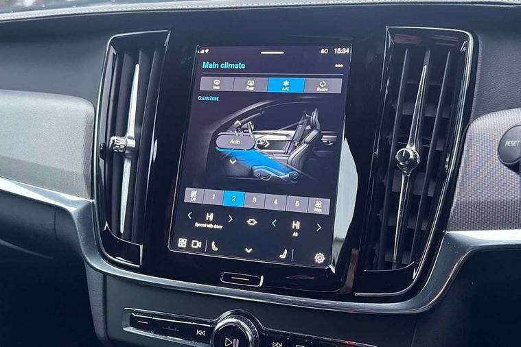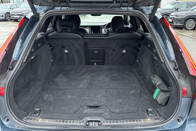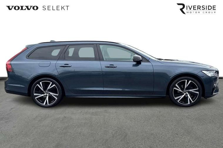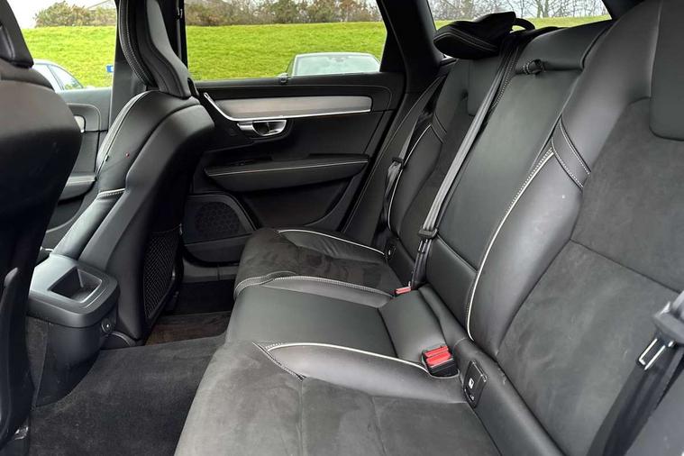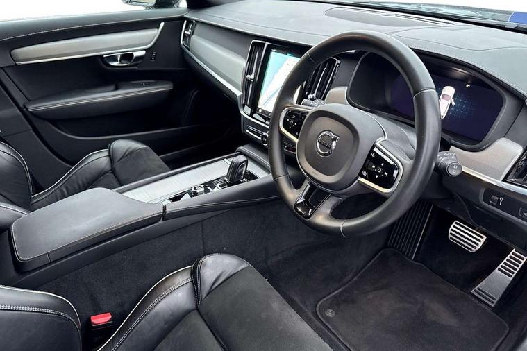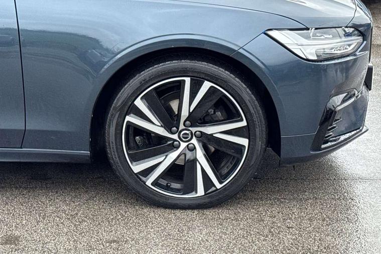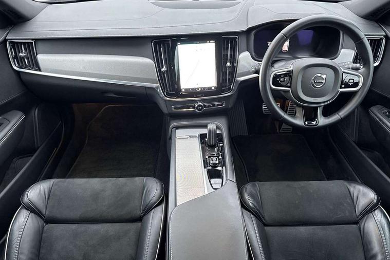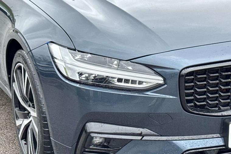 12.3" Progressive Driver Display, 9" centre console touch screen, Adjustable steering wheel force, Bluetooth Handsfree Phone Connection, Drive mode settings, E-call, Google automotive services - Enabled entertainment apps, navigation with google maps, voice recognition with google assistant, Lane keep assist with driver alert control, Oncoming Lane Mitigation, Power operated tailgate, Speed limiter, Speed sensitive steering, Volvo on call, Wireless/Inductive Mobile Phone Charging, 8 speed automatic transmission with start/stop + manual change functions, DAB Radio (Digital Audio Broadcasting), Steering wheel remote infotainment controls, Adaptive brake lights with high level LED brake lights, Auto dimming interior + exterior mirrors, Automatic headlamp levelling, Automatic LED Headlights + Active high beam incorporating daytime running lights, Colour coordinated auto folding and heated power door mirrors, Dark tinted windows for rear side windows and cargo area, Front and rear power windows, High gloss black door mirrors and window surround, High gloss black lower front bumper, High gloss black mesh front grille with silk metal surround, High gloss black rear bumper deco, Home safe and approach lighting, Integrated roof rails in high gloss black, Puddle lights in exterior door handles, Rain sensor with automatic windscreen wiper activation, Rear LED lights with sequential indicators, Rear side wing doors, Rear wiper, Roof antenna, Roof spoiler, Visible VIN plate, 3 seat bench in 2nd row, 3 spoke leather steering wheel with chrome trim, A-pillar parking ticket holder, Ambient door and instrument panel lighting, B Pillar ventilation, Bright metal luggage threshold, Cargo divider with grocery bag holder, Center Console Cupholders and Storage, Charcoal headlining, Driver's side lower dashboard storage compartment, Extended front seat cushions, Front 12V socket tunnel console and cargo area, Front centre armrest storage illumination, Front footwell and side step illumination, Front head restraints, Front/rear door pockets and front cupholder illumination, Front/rear reading lights, Heated front seats, Height/reach adjustable steering column, Illuminated front and rear tread plates, Illuminated glovebox, Illuminated luggage compartment, Illuminated tailgate, Illuminated vanity mirrors + ticket holder, Integrated sun curtains in rear doors, Isofix system on outer rear seats, Load cover, Load protection net, Off-black finish in steering wheel, Power driver seat with memory for seat and exterior mirrors, Power Folding Rear Seat Backrests and Headrests, Rear armrest with storage + cupholders, Rear footwell and side step illumination, Single passenger seat, Ski hatch, Sport pedals, Sports floor mats, Sports leather gear knob, Sports tailored steering wheel, Underfloor cargo storage, Versatile split folding rear seat - 60/40, Driver assist pack - V90, 3x3 point rear seatbelts, Active bonnet, City safety with steering support with Pedestrian + cyclist + front collision warning with full auto brake and rear auto brake, Drivers knee airbag, Dual stage driver/passenger airbags, Front seats SIPS airbags, Hill start assist, IC (Inflatable Curtains) - Full Length, Passenger airbag cut-off device, Power parking brake with auto hold function, Road sign information display, Run off Road Mitigation, Run off Road Protection, Seatbelt reminder and pretensioners for all seats, SIPS (Side Impact Protection System), Slippery road and hazard light alert, Stability and Traction Control with Spin control, Engine Drag Control and Corner Traction Control, Tyre pressure monitoring system, Vehicle deceleration control with Anti-lock Brake System, Electronic Brake Distribution and Emergency Brake Assist, Warning triangle and first aid kit, WHIPS whiplash protection system - front, Anti-theft alarm including immobiliser/volume sensor + level sensor, Care key with user defined top speed, Key integrated remote control central locking + fuel flap with deadlocking system and auto open/close power windows, Keyless drive with Keyless entry and start, Locking wheel nuts, Private locking for tailgate, Metal mesh inlays, Tailored Instrument Panel and Door Tops with Contrast Stitching,