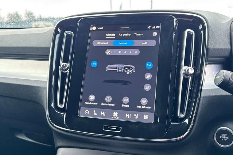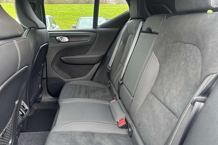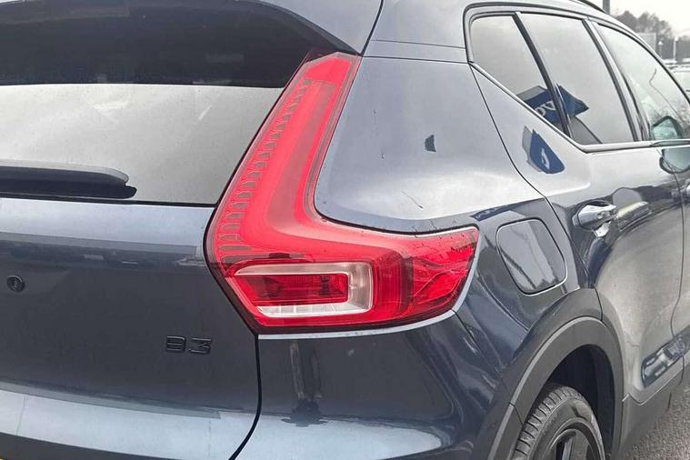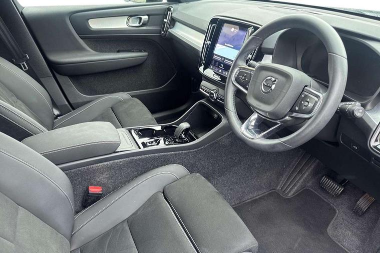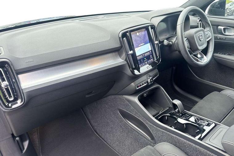12.3" Progressive Driver Display, 9" centre console portrait touch screen, Adjustable steering wheel force, Android auto (Wired), Apple carplay (wired), Bluetooth handsfree system, Driver alert control, Driver assistance (pilot assist and adaptive cruise control), Driver awareness - Blind spot information system with steer assist, cross traffic alert with autobrake and rear collision warning and mitigation, E-call, Front and rear parking sensors, Front park assist, Google automotive services - Enabled entertainment apps, navigation with google maps, voice recognition with google assistant, Hands free power tailgate, Intelligent speed assistance, Lane keeping aid, Oncoming Lane Mitigation, Speed sensitive steering, Volvo cars services with app - Driving journal, emergency and breakdown call, engine remote start, remote door locking/unlocking and vehicle dashboard, Wireless/Inductive Mobile Phone Charging, Automatic transmission with start/stop and manual change functions, Dynamic chassis, DAB Digital radio, Steering wheel mounted remote controls, Adaptive brake lights with high level LED brake lights, Auto dimming feature for exterior door mirrors, Auto dimming interior mirror, Auto folding and heated power door mirrors, Automatic headlamp levelling, Automatic LED Headlights + Active high beam incorporating daytime running lights, Dark tinted windows - rear side windows and rear screen, Front aluminium tread plates, Front and rear electric windows, High gloss black front and rear skid plate, High gloss black front bumper deco, High gloss black front grille strikethrough and ironmark, High gloss black rear model, engine and volvo logo badges, High gloss black window trim, Home safe and approach lighting, Integrated roof rails in high gloss black, LED front fog lights, Puddle lights, Rain sensor with automatic windscreen wiper activation, Rear side wing doors, Rear wiper, Roof antenna, Roof spoiler, Visible VIN plate, 12V socket in front tunnel console and luggage compartment, 2-Zone electronic climate control with CleanZone air quality system and pollen filter, 3 seat bench in 2nd row, 3 Spoke tailored steering wheel with chrome trim, 60/40 versatile split folding rear seat, Centre console cupholders and storage, Charcoal carpet and floor mats, Charcoal headlining, Connect suede textile/microtech upholstery, Flexible load floor and grocery bag holder, Front headrests, Front seat cushion extensions, Glovebox bag hook, Heated front seats, Height adjustable passenger seat, Height/reach adjustable steering column, High gloss centre tunnel deco, High level illumination - Front door pocket, front side step (under door), tailgate, instrument panel, front door inlay, rear courtesy&reading lights, Integrated waste bin, Isofix attachments on outer rear seats, Load cover, Load protection net, Mid level illumination - Front footwell, luggage & glovebox compartment, front cabin courtesy & reading lights, illuminated vanity mirrors+ticket holder, Multi directional lumbar support for driver and passenger seat, Power driver seat with memory + exterior mirrors memory, Rear armrest with cupholders, Rear headrests, Single front passenger seat, Underfloor luggage compartment storage, Climate pack without heated front seats - XC40, 3x3 point rear seatbelts, City safety with steering support with Pedestrian + cyclist + front collision warning with full auto brake and rear auto brake, Driver and passenger airbags, Drivers knee airbag, Electronic parking brake with auto hold, First aid kit, Front and outer rear seatbelt reminder and pretensioners, Front seats SIPS airbags, Hill descent control - Off-road drive mode, Hill start assist, IC (Inflatable Curtains) - Full Length, Passenger airbag cut-off device, Power child locks on rear doors, Road sign information display, Run off Road Protection, SIPS (Side Impact Protection System), Slippery road and hazard light alert, Stability and Traction Control with Spin control, Engine Drag Control and Corner Traction Control, Tyre pressure monitoring system, Vehicle deceleration control with Anti-lock Brake System, Electronic Brake Distribution and Emergency Brake Assist, Warning triangle, WHIPS whiplash protection system - front, 2 x Key integrated remote control central locking including with deadlocking system and auto open/close windows, Anti-theft alarm including immobiliser/volume sensor + level sensor, Keyless drive includes keyless entry and keyless start, Locking wheel nuts, 20" 5 spoke high gloss black alloy wheels,