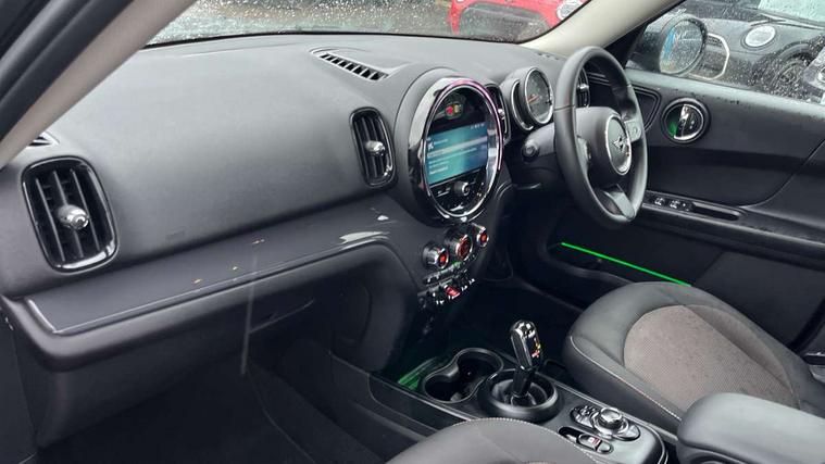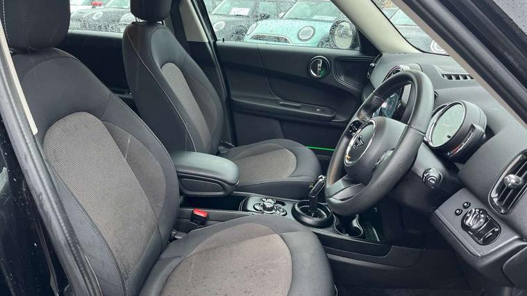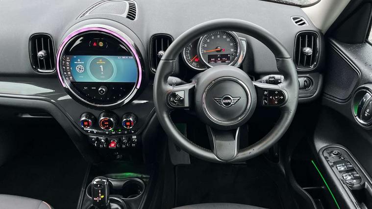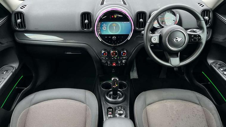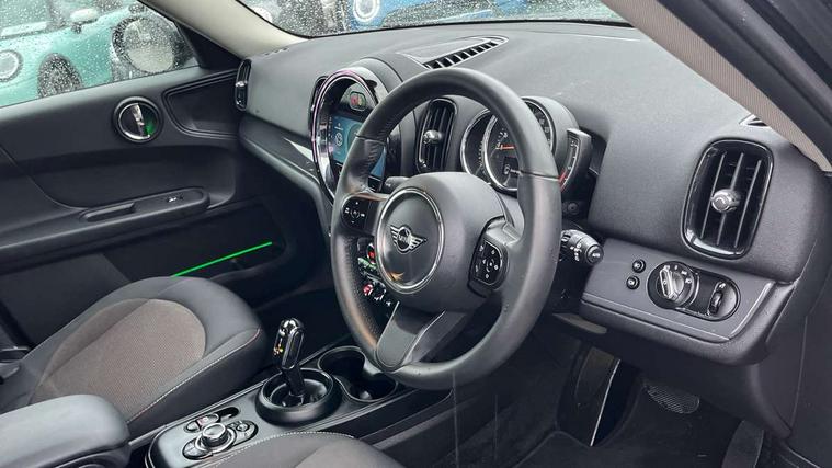 Active Guard incl speed limiting and lane departure functions with auto steering, and front collision warning with brake intervention, Automatic start/stop function with brake energy recuperation, Compatible mobile phone bluetooth with audio streaming, Cruise control with brake assist, Electro-mechanical speed dependant steering assistance, Instrument cluster, Mini E-call, On board computer, Rear parking distance control, 51 Litre fuel tank, Double Vanos system, Fully variable valve control, High precision injection, Performance Control, Steptronic transmission with double clutch, FM tuner and DAB digital radio, 3rd brake light, Body colour fuel filler cap, Day time driving lights, Door sill strips, Dynamic brake lights, Electric windows, Heated rear window, Heated windscreen washer jets, LED fog lights, LED Headlights, Left exhaust tailpipe with chrome finisher, Model logo, Model logo on Tailgate, Radiator grille, Rain sensor with auto headlights, Rear fog lights, Rear side wing doors, Rear window wiper, Side scuttle panel with integrated indicator, Split rear doors, Sun/heat protection glass, White indicator lenses, 12V socket in centre console, 3 seat bench in 2nd row, 3 spoke sport leather steering wheel + limiter function and audio controls, 360L luggage compartment capacity, 4 lashing eyes in luggage compartment, 40:20:40 split folding rear seats, Chrome interior highlights, Colour line - Carbon black, Cupholders, English handbook, Floor mats, Front headrests, Glove compartment, Headliner with grab handles and clothes hooks, Height and length steering column adjustment, Interior lighting with 12 basic colours selectable via toggle switch in roof, Isofix rear child seat preparation, Leather gearshift lever and handbrake gaiters, LED reading lights, vanity mirror lights, front foot well light and spotlight on front seats, Manual air conditioning, Mechanical seat adjustment, driver seat height adjust, forward/back and front seats backrest, Multifunction steering wheel, Passenger seat height adjuster, Rear headrests, Single front passenger seat, Storage compartments in doors, Sunvisors with vanity mirrors, Excitement pack - Countryman, Navigation pack - Countryman, 2 tone horn, 3 point seatbelts on all seats, 6 Airbags - front, side, head and seat belt tensioners, Anti-lock braking system (ABS), DSC - Dynamic Stability Control, Electronic handbrake, Front and rear disc brakes, Hill start assist, Manual rear child locks, Tyre pressure monitoring system, Alarm system with tilt sensor, monitoring doors, bonnet interior and tailgate, Auto drive away locking, Deadlocking function, Electronic vehicle immobiliser, Locking wheel bolts, Start/stop toggle with keyless go, Tool kit,