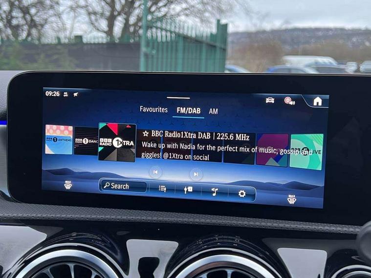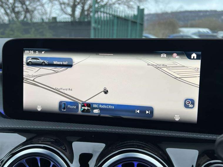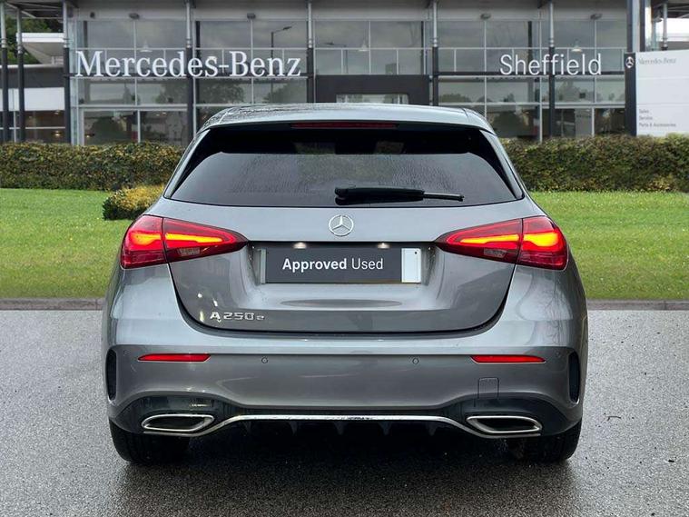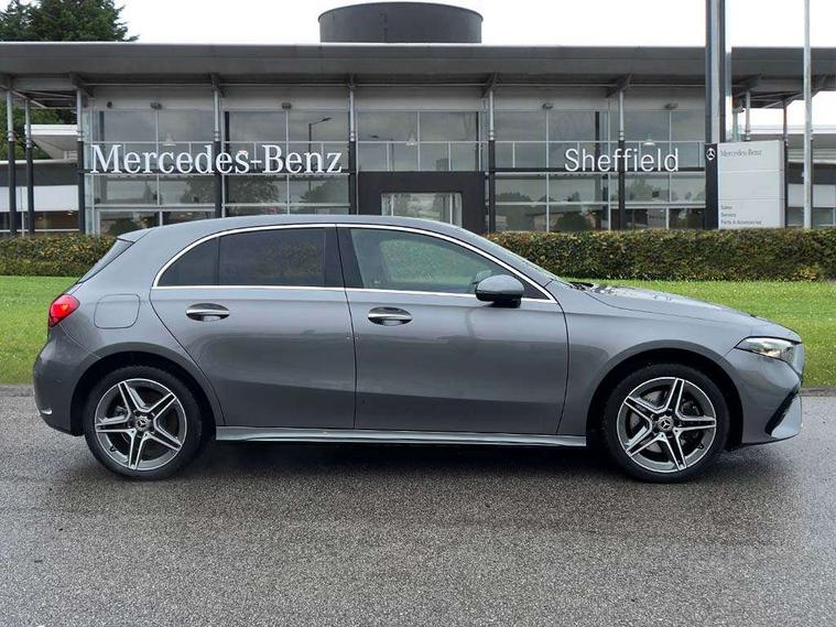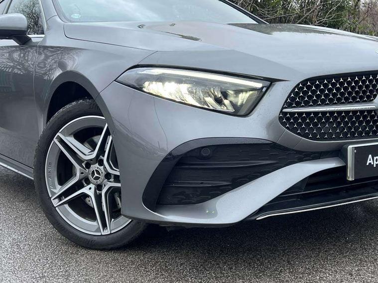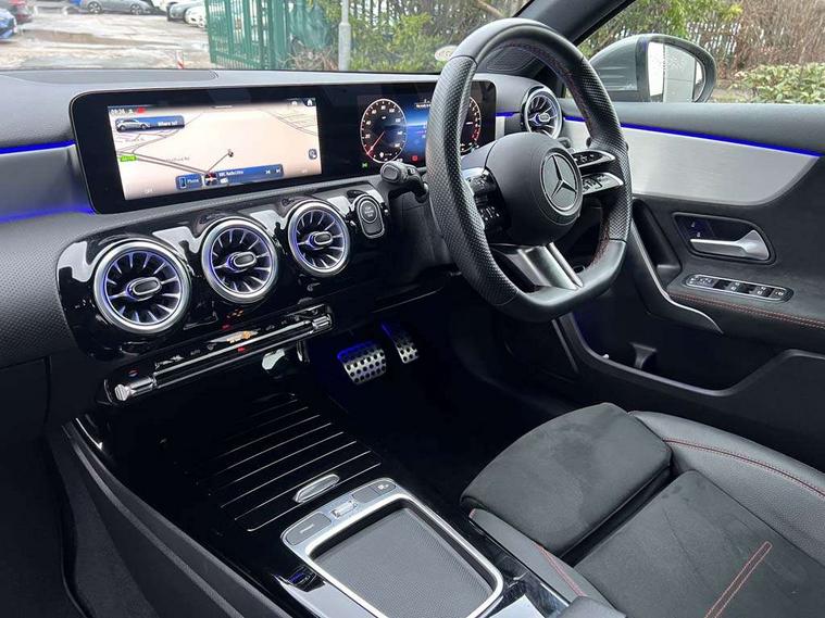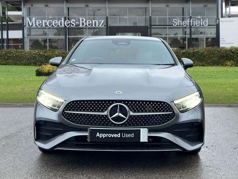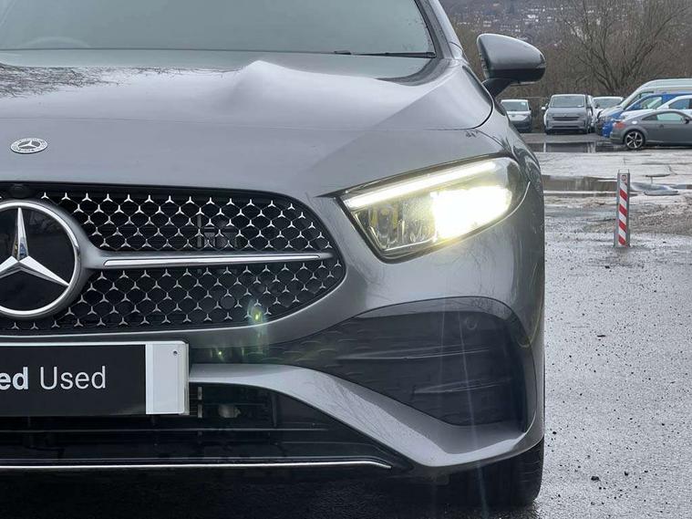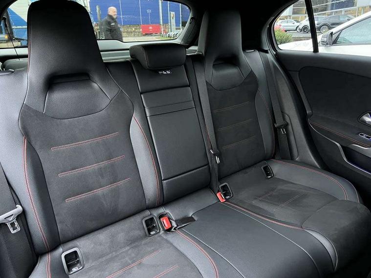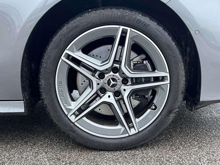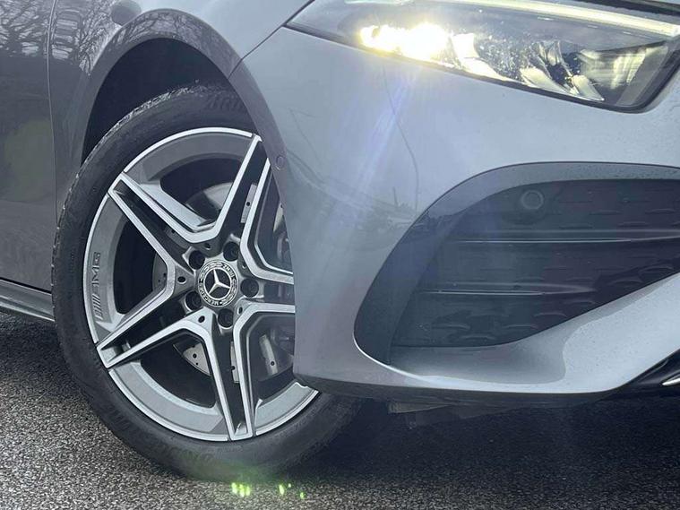 10.25 inch touchscreen central media display, 10.25" Digital instrument cluster display screen, Acoustic ambient protection, Attention assist, Blind spot assist, Brake pad wear indicator warning light, Car wash mode, Cruise control + speed limiter, Direct steering, Direction indicators with lane change function, Dual bluetooth interfaces, DYNAMIC SELECT with a choice of driving modes (ECO, Comfort, Sport and Individual), Easy pack tailgate hands-free access, ECO start/stop function, Engine start/stop button, Fingerprint scanner, Fluid level warning indicator for fuel, oil, coolant and washer fluid, Fluorescent jacket for driver, Hard-disk navigation, Hey Mercedes Voice activation, Lamp failure indicator, Lane keeping system, Mercedes me connect including emergency call system, accident recovery, breakdown and maintenance management, Mercedes me remote services, Outside temperature gauge, Owners manual in English, Pre-installation of private car share, Preinstallation for Mercedes Benz link, Remote and charging services plus, Remote boot closing, Service indicator (ASSYST), Smartphone integration with Apple CarPlay and Android auto, Speed limit assist, Speed sensitive power steering, Tailgate, Trip computer in multifunction display with current consumption indicator, Wireless charging, Charging system - AC charging system rated at 11kW, Charging system - DC charging system rated at 22 kW, Comfort suspension, Mode 2 charging cable for domestic socket with 5m up to 1.8kW, Mode 3 charging cable for wallbox and public charging stations with 4m upto 22 kW, DAB Digital radio, MBUX multimedia system, Mercedes Benz sound system (100 W) with 6 speakers, 4 Electric Front and Rear windows, Adaptive brake lights, AMG body styling - AMG front apron with front splitter and AMG rear apron and visible exhaust tailpipe trim elements, Body colour bumpers, Body colour door handles with chrome inserts, Body colour side skirt, Body coloured door mirrors, Chrome beltline strips, Diamond radiator grille with pins in fine star pattern, Electric adjustable and heated door mirrors with integrated LED side indicators, Exhaust system with 2 visible tailpipe trim elements and rear apron, Headlamp assist automatic headlamp activation, Heat insulating dark tinted rear and rear side windows, Heated glass rear windscreen + timer control, LED High level third brake light, LED High Performance headlamps including integral LED daytime running lamps and adaptive highbeam assist, LED tail lamp, Privacy glass, Radio aerial, Rain sensing windscreen wipers with two sensitivity settings, Rear fog lights, Rear side wing doors, Rear windscreen wiper, Window line trim strip in chrome, 3 seat bench in 2nd row, 3 Spoke flat bottom leather multi function steering wheel with perforated leather in grip area, 4 way lumbar support, 40:20:40 split folding rear seats, Air conditioning - One zone THERMATIC automatic climate control with automatically controlled air distribution, AMG floor mats, Automatic child seat recognition sensor, Black air vents with surround in silver chrome, Black roof lining, Brushed stainless steel sports pedals with rubber studs, Charging socket, Front centre armrest with stowage, Front door sills with Mercedes Benz lettering, Front seat backs luggage nets, Galvanished gear shift paddles on steering wheel, Heated front seats, Height/reach adjustable steering column, Interior lighting - 64 colour Ambient lighting, Interior mirror with reading lamps in black and frameless, Pre-entry climate control, Rear armrest with 2 cupholders, Seat occupancy sensor for front passenger seat, Single front passenger seat, Sports seats with integrated headrests, Stowage compartment in centre console with retractable cover, Sunvisors with illuminated vanity mirrors, Twin front cupholders, Light and sight package - A Class, Mirror package - A Class, Parking pack with 180 degree view - A Class, Seat comfort pack - A Class, USB pack plus - A Class, 3 rear 3 point seatbelts, ABS with Brake Assist, Active bonnet, Active brake assist includes forward collision warning system with autonomous braking, Adaptive brake assist with hold function and hill start assist, Black seatbelts, Bonnet with power domes, Childproof locks manually operated for rear doors and electrically operated for rear power windows, Crash responsive emergency lighting, Driver and passenger head and side airbags, Drivers knee airbag, Dual stage driver/passenger airbags, Electronic parking brake, ESP curve dynamic assist, ESP with ASR, Front and rear seatbelt reminder, ISOFIX and top tether child seat fixing points in two outer rear seats, Perforated front brake discs, Radar based regeneration, Tyre pressure monitoring system, Warning triangle and first aid kit, Window airbags, Alarm system/interior protection/immobiliser, Guard 360 degree vehicle protection, Keyless entry lock/unlock, Keyless Go, Remote central locking and crash sensor with emergency opening function, Light longitudinal grain aluminium trim, 18" AMG 5 twin spoke light alloy wheels, aerodynamically optimised, painted in black with high sheen finish, Summer tyres, Tirefit sealant kit,