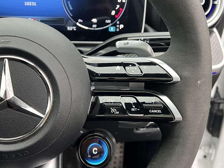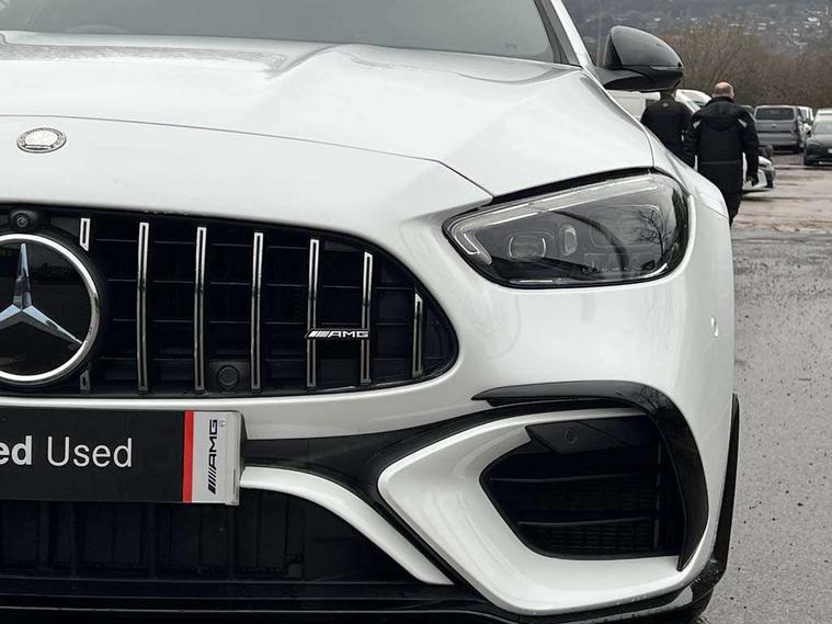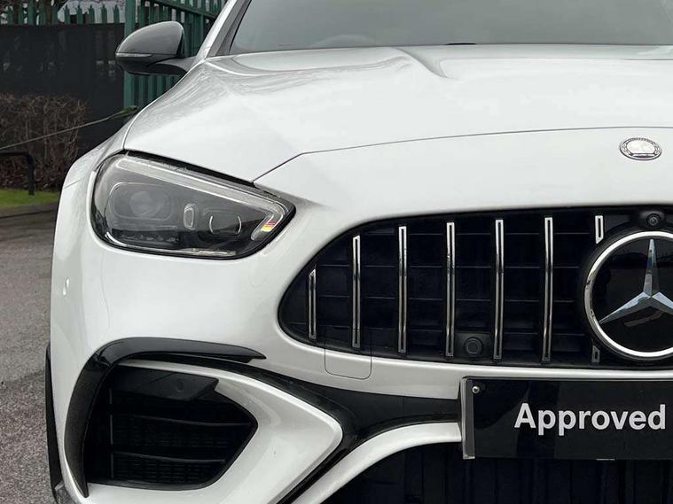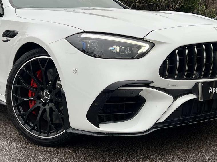 11.9" high resolution multimedia colour display, 12.3" digital instrument cluster display, Acoustic ambient protection, Active lane keeping assist, AMG DYNAMIC SELECT with a choice of eight driving modes(Electric, Comfort, Battery Hold, Sport, Sport+, Race, Slippery and Individual), AMG track pace, Attention assist, E-call, Easy pack automatic powered tailgate, Extended MBUX functions, Finger print sensor, Fluorescent jacket for driver, Head up Display, MBUX augmented reality for navigation, MBUX navigation premium, MBUX voice control activated by keywords "Hey Mercedes", Mercedes connect me, Mercedes me remote services, Outside temperature gauge, Pre-installation for digital key transfer, Rear axle steering, Remote boot release, Service indicator (ASSYST), Smartphone integration, Sports direct steer speed sensitive steering, Status display for rear seat belts in instrument cluster, Traffic sign assist, Wireless charging system for mobile devices, 5m charging cable for household socket (mode 2), 5m charging cable for wall box/public charging stations(mode 3), 70 litre fuel tank, Agility control sports suspension with adaptive damping system, AMG speedshift MCT 9G with wet starting clutch and race start function, Petrol Particulate Filter, Residual engine heat utilisation, Sporty engine sound system, Burmester 3D surround sound system, DAB Digital radio, MBUX multimedia system, Adaptive brake lights, Adaptive high beam assist plus, AMG exhaust system with two black chrome-plated twin tailpipe trim elements, AMG front bumper with sporty air intakes and chrome elements, AMG illuminated door sills with AMG lettering and with exchangeable cover, AMG Real Performance Sound, AMG rear bumper with high gloss chrome elements, AMG side skirts in vehicle colour, AMG specific radiator grille with vertical struts in high gloss chrome and AMG logo, B-pillar trim in glossy black, Black roof rails, Body coloured bumpers, Chrome beltline trim, Daytime running lights, Digital light LED headlights with projection function, Electric panoramic sliding sunroof, Electric windows with one touch opening/closing and obstruction sensors, Electrically adjustable and heated door mirrors, Green tinted glass, LED Indicators, LED tail lights, LED third brake light, Mercedes AMG exterior, Noise acoustic glass, Powerdomes on bonnet, Privacy glass, Radio aerial integrated into rear window, Rain sensor with automatic windscreen wiper activation, Rear side wing doors, Rear wiper, 3 seat bench in 2nd row, 40:20:40 split folding rear bench seat, AMG performance steering wheel in nappa leather/dinamica microfibre, AMG steering wheel buttons, Audio and onboard settings control on multifunction steering wheel, Auto Mercedes-Benz child seat recognition sensor, Black air vents with silver chrome elements, Black floor mats with AMG lettering, Black roof liner, Door trim elements high gloss black with silver chrome surroundings and switches, Double cupholder in centre console, Electric adjustable front seat and 4 way lumbar support, Electrically height/reach adjustable steering column, Folding rear seat backrest, Front and rear head restraints, Front centre armrest with storage compartment, Gearshift paddles on steering wheel, Illuminated glove compartment stowage, Interior lighting - 64 colour Ambient lighting, Load compartment cover, Mercedes AMG interior, Overhead control unit in high gloss black, Rear top tether child seat ISOFIX attachment, Single front passenger seat, Sports pedals with stainless steel surfaces and rubber studs, Sunvisors with illuminated vanity mirrors, Thermotronic automatic 4 zone climate control, AMG aerodynamics package - C Class C63, AMG drivers pack - C Class Estate, AMG exterior night pack - C Class, AMG performance high end seat pack - C Class, Driving assistance plus pack - C Class C63, Interior lighting package - C Class, Memory package - C Class, Mirror pack - C Class, Parking package with 360 degree camera - C Class, Stowage space pack - C Class, USB package plus - C Class, 3 rear 3 point seatbelts, Active bonnet pedestrian safety measure which detects an impact and raises bonnet, Adaptive brake system with HOLD function and brake drying in the wet, AMG high performance composite braking system with red painted brake calipers with AMG lettering, Anti-lock braking system (ABS), Child proof door locks, Drivers knee airbag, Drivers pelvis airbag, Dual stage driver/passenger airbags, Electric parking brake, Electronic Stability Programme (ESP), Front centre airbag between driver and front passenger seats, Front side airbags, Larger brake discs on front axle, Pre Safe system, Rear seatbelt warning indicator, Tyre pressure monitoring system, Warning triangle and first aid kit, Window airbags for driver, front passenger and rear passenger, Central locking with interior switch, automatic locking and crash sensor with emergency opening function, Chrome surround in electric key, Dashcam, Guard 360 degree vehicle protection, Keyless Go comfort access, URBAN GUARD vehicle protection (Thatcham Category 1) consisting of break-in, anti-theft alarm system (ATA), interior monitoring and tow-away protection, Artico man-made leather dashboard with contrast stitching, Centre console trim in high gloss black with carbon fiber trim, 20" AMG cross spoke light alloy wheels painted in high gloss black with high sheen finish, Noise reduced tyre with foam absorber, Summer tyres, TIREFIT with tyre inflation compressor,