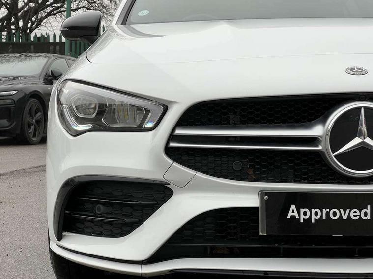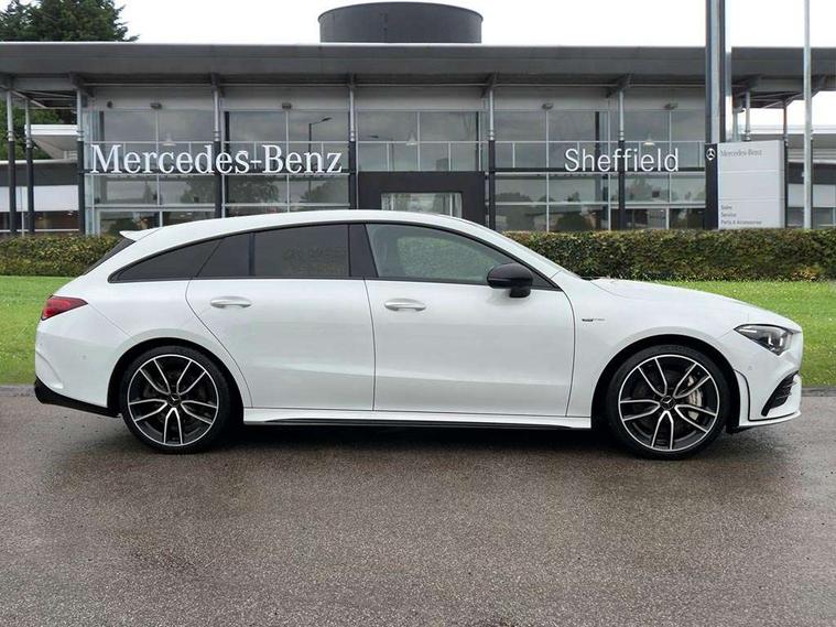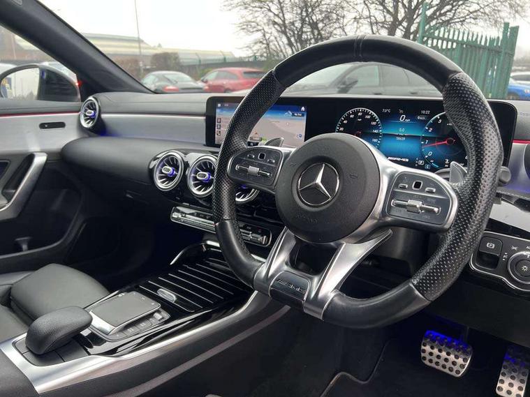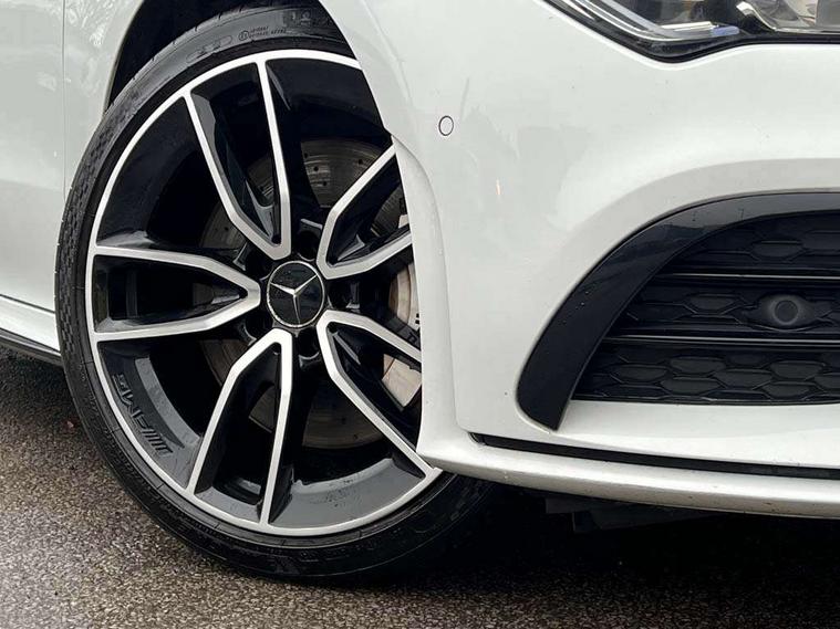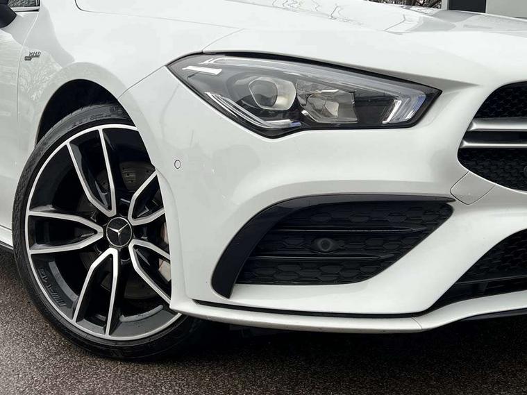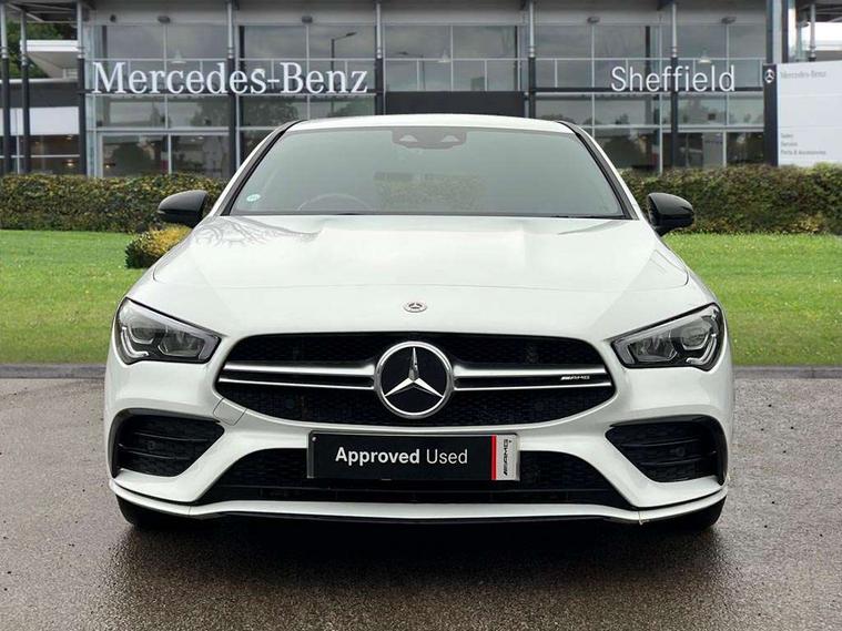 10.25 inch Instrument display with digital cockpit, 10.25 inch touchscreen central media display, Active lane keeping assist, Attention assist - Monitors steering behaviour and long journey fatigue, Bluetooth connection, Car wash mode, Cruise control with limiter, Digital instrument cluster with three AMG display styles and AMG menu, Direct steer system with speed sensitive power steering, DYNAMIC SELECT with driving programs (Slippery, Comfort, Sport, Sport+ and Individual), Easy-pack tailgate, ECO start/stop function, Fluid level warning indicator for fuel, oil, coolant and washer fluid, Hard-disk navigation, Hey Mercedes Voice activation, Lamp failure indicator, MBUX augmented reality for navigation, Mercedes me connect including emergency call system, accident recovery, breakdown management and maintenance, Outside temperature gauge, Owners manual and service booklet in English, Pre-installation for Vehicle Monitoring, Pre-installation for Vehicle Setup, Pre-installation of private car share, Preinstallation for Mercedes Benz link, Radio aerial integrated into front and rear windshields, Service indicator (ASSYST), Smartphone integration with Apple CarPlay and Android auto, Speed limit assist, Trip computer in multifunction display with current consumption indicator, Wireless charging, 4MATIC permanent four wheel drive, 7G-DCT 7 speed automatic transmission, AMG suspension, Rear axle multi-link, DAB digital radio tuner, MBUX multimedia system with DAB digital radio and touchpad including satellite navigation, Mercedes Benz advanced sound system (225 W) with 10 speakers, 1 central speaker, speakers on doors, a tweeter on door, one sub woofer + boost amplifier, USB (type C) ports (2) in stowage compartment and 1 in front of centre console, Adaptive brake lights, AMG body styling with AMG front apron and rear apron and visible exhaust tailpipe in chrome trim elements, AMG bodystyling side skirts, AMG Front apron with flics as air deflector elements on the outer air intakes, AMG radiator grille with twin blade lamella and AMG Lettering, AMG Rear apron with specific diffuser look with four vertical fins and two round chrome plated tailpipe trim elements with a diameter of 90 mm, AMG Sports exhaust system with two round tailpipes attached in rear apron, Automatically controlled exhaust flap, Beltline strips in High gloss Black, Body colour bumpers, Body colour door handles, Chrome weather strip, Electric windows, Electrically adjustable and heated door mirrors with integrated LED indicators, Front splitter and trim elements on the louvres in the outer air inlets in silver chrome, Front wings with TURBO 4MATIC lettering, Headlamp assist automatic headlamp activation, Heated glass rear windscreen + timer control, High level LED third brake light, Interior mirror with black reading lamps and frameless, LED high performance headlamps with integrated LED daytime running lights, LED tail lamp, Privacy glass with dark tinting on rear side windows and rear window, Rain sensing windscreen wipers with two sensitivity settings, Rear fog lamp, Window line trim strip in high gloss black, 40:20:40 split folding rear seats with backrest, Air conditioning - Two zone thermotronic luxury automatic climate control with display, Air vents with surround in silver chrome, AMG Performance steering wheel in nappa leather, Automatic child seat recognition sensor, Black roof lining, Brushed stainless steel sports pedals with rubber studs, Floor mats with stitched AMG lettering, Front centre armrest with stowage, Heated front seats, Illuminated glove compartment stowage, Illuminated Mercedes benz door sills with Mercedes Benz lettering, Interior lighting - 64 colour Ambient lighting, Luggage net on driver/front passenger seat backrest, Manually adjustable front seats, Manually height and reach adjustable steering column, Rear armrest with two integral cup holders for drinks, Rear head restraints, Silver coloured aluminium gear shift paddles on steering wheel, Sport seats with fixed head restraints, Stowage compartment in centre console with retractable cover, Sunvisors with illuminated vanity mirrors, Touchpad on center console, Twin front cupholders, Two outer rear seat isofix and top tether child seat fixing points, AMG Night package - CLA 35/45, Keyless go pack - CLA, Light and sight pack - CLA, Mirror pack - CLA, Parking package - CLA, Seat comfort pack - CLA, Active bonnet pedestrain safety measure which detects an impact and raises bonnet by 65mm, Active brake assist includes forward collision warning system with autonomous braking, Adaptive brake assist with hold function and hill start assist, Anti-lock braking system (ABS), Black seat belts, Bonnet with power domes, Brake pad wear warning indicator, Childproof locks manually operated for rear doors and electrically operated for rear power windows, Crash responsive emergency lighting, Driver and front passenger head and sidebags, Driver and front passenger windowbags, Drivers knee airbag, Dual stage driver and front passenger airbags, Electric parking brake, Electronic stability programme with acceleration skid control, ESP curve dynamic assist, Front and rear seatbelt reminder, Front brake calipers with AMG lettering, Front passenger seat occupancy sensor, Perforated front brake discs, Three point rear seat belts, Tyre pressure monitoring system, Warning triangle and first aid kit, Remote central locking and crash sensor with emergency opening function, Urban guard vehicle protection system with immobiliser and interior protection, Light aluminium with longitudinal grain interior trim, 19" AMG multi-spoke high gloss black painted light alloy wheels with high sheen finish, Summer tyres, Tirefit tyre sealant kit, Wheel arches wider for AMG wheels,