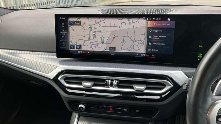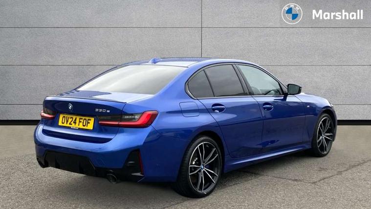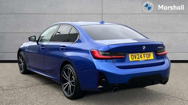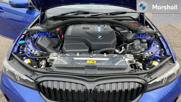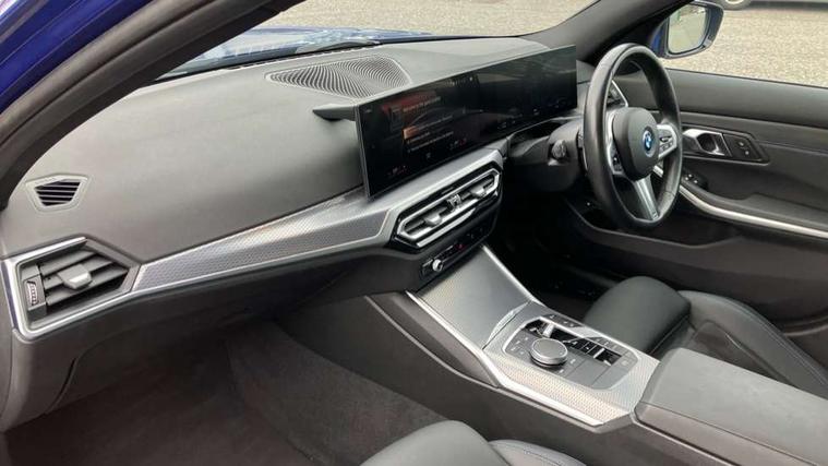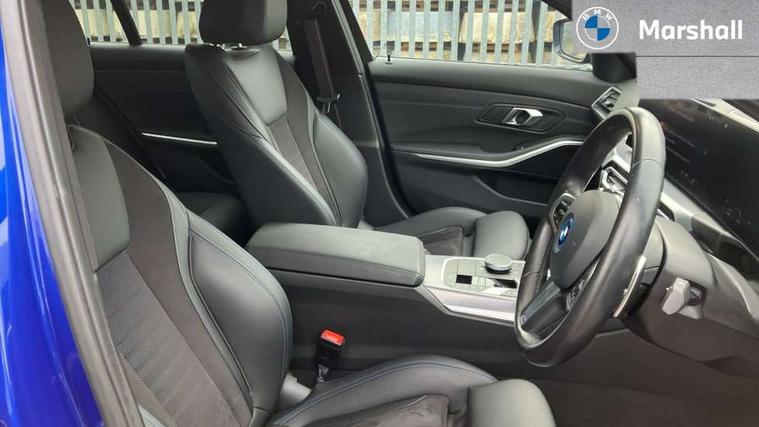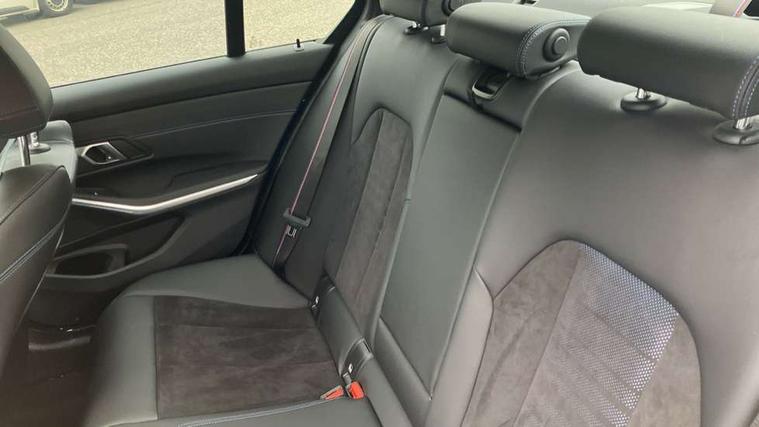 Active guard plus, Attentiveness assist, Automatic Start/stop button, BMW Iconic sounds electric, BMW iDrive, BMW Teleservices, Condition based service, ConnectedDrive Services, Driving experience switch, Live cockpit plus with Navigation + 12.3" instrument display + 14.9" display, Intelligent voice assist, 2 USB, 4G LTE connect, Oil sensor for level and grade, PAS, Preparation for driver assistance, Shifting point display, Double joint spring strut front axle, Electronic differential lock control (EDLC), Fast charging cable - Mode 3, Fuel tank breather system, Sport automatic transmission with steering-wheel mounted gearshift paddles and launch control, Standard suspension, DAB tuner, 3rd brake light, Acoustic glazing, Automatic headlight beam throw control with load dependent regulating reaction, dynamic compensation of braking dive and acceleration squat, BMW emblem, engine compartment lid and tailgate, Body colour roof fin, Door sill strips, Electric windows - front and rear, with open/close fingertip control, anti-trap facility and comfort closing, Follow me home headlight function, Front and rear bumper system with replaceable deformation elements, Front apron plastic in body colour, Fuel filler flap - right rear in body colour, Heated washer jets, High gloss shadow line exterior trim, Illuminated bow type door handles in body colour drivers side with door lock, Interior rear view electrochromatic mirror with automatic anti dazzle function, LED rear lights, Licence plate panel integrated into front bumper and tailgate, Matt black B-pillar finsher, Matt black window recess cover, Model designation on right side of tailgate, One piece front bumper cover including towing eye cover in body colour, Rain sensor with automatic headlight activation, Rear boot, Rear side wing doors, Reversing lights, Side frame decorative moulding black matt, Visible exhaust tailpipe finisher, Welcome lights in interior and door handle area, 12V power socket in front storage compartment, 2 front cupholder in centre console with clamping elements and matt black inlay, 3 seat bench in 2nd row, 3 zone automatic air conditioning, 40:20:40 split folding rear seat with loading system, Ambient inside door handle light, Ambient light design projected onto the left and right entering and exiting area, Ambient lighting front and rear with 9 selectable colours, Ambient storage compartment lighting in the centre console, Anthracite headlining, Armrest integrated in front and rear door trim + front centre console armrest, Battery in luggage compartment, BMW ID, Contour lighting in instrument panel and door trim panel, Cruise control operation in steering wheel, Driver backrest width adjustment, Folding rear centre armrest with 2 cupholders, Front and rear ambient footwell lighting, Front and rear door exit lighting (left / right), Front and rear headrests, Front and rear reading lights, Front and rear velour floor mats, Front sport seats, Heated front seats, Height adjustable mechanically and infinitely variable steering column, Illuminated armrest storage compartment, Illuminated glove compartment, Illuminated luggage compartment, Lashing eyelets in luggage compartment, M Sport multifunction leather steering wheel, Make-up mirror lights, Single front passenger seat, Standard seat for driver and passenger with manual adjustment, Sunvisors with vanity mirrors and ticket pocket, Toolkit located in luggage compartment, Connected pack professional - 3 Series Saloon/Touring, Interior and exterior mirror pack - 3 Series Touring/Saloon, M Aerodynamics package - 3 Series Saloon/Touring, M sport exterior styling pack - 3 Series Saloon/Touring, Storage compartment pack - 3 Series Saloon/Touring, 3x3 point rear seatbelts, BMW emergency call, Child locks on rear doors, Crash sensor activating of airbags, Unlocking doors, hazard warning lights, interior light, safety battery terminal, Driver and front passenger with seat occupancy detection for driver's and passenger side, Driver and passenger side airbags, body protection at side and airbags deploy from seat backrests, Dynamic brake control, Dynamic stability control + (DSC+) - Anti-lock Braking System (ABS) with brake assist and cornering brake control + Automatic Stability Control (ASC), Dynamic Traction Control - DTC, Electric parking brake including automatic hold function and automatic release of the parking brake when driving off, Head airbags in 1st and 2nd row, head protection at side, curtain airbags open from headliner above 1st and 2nd row, Plastic fuel tank, Side impact protection, Tyre pressure monitoring with three level warning strategy, Ventilated front and rear disc brakes, Warning triangle and first aid kit, Alarm system, Centre lock switch, Closing system with central locking, Electronic vehicle immobiliser,