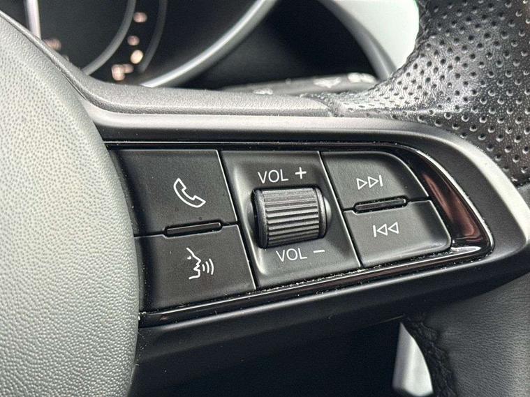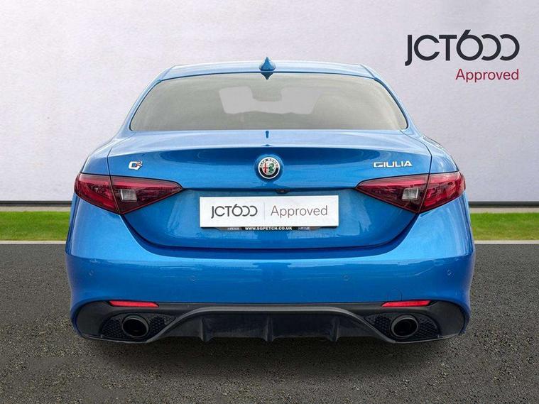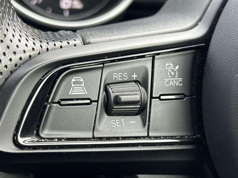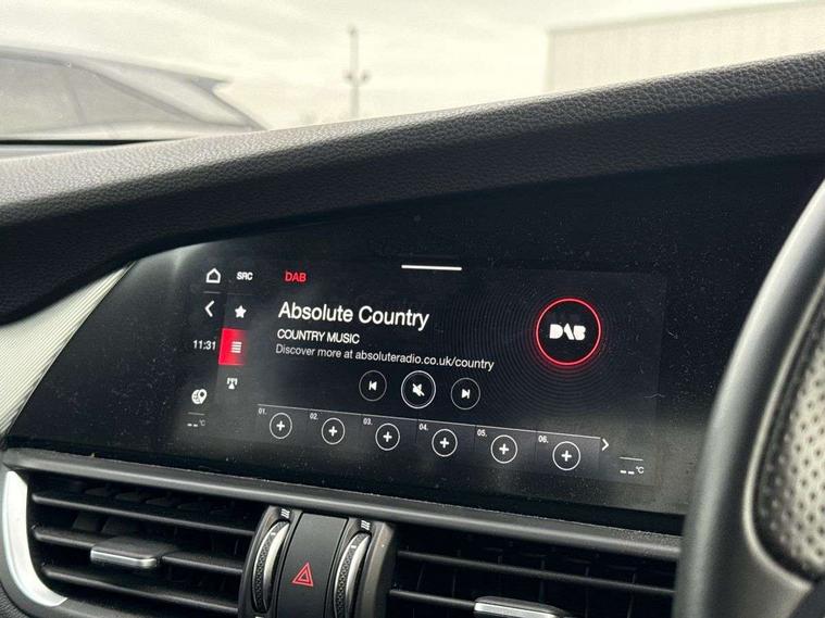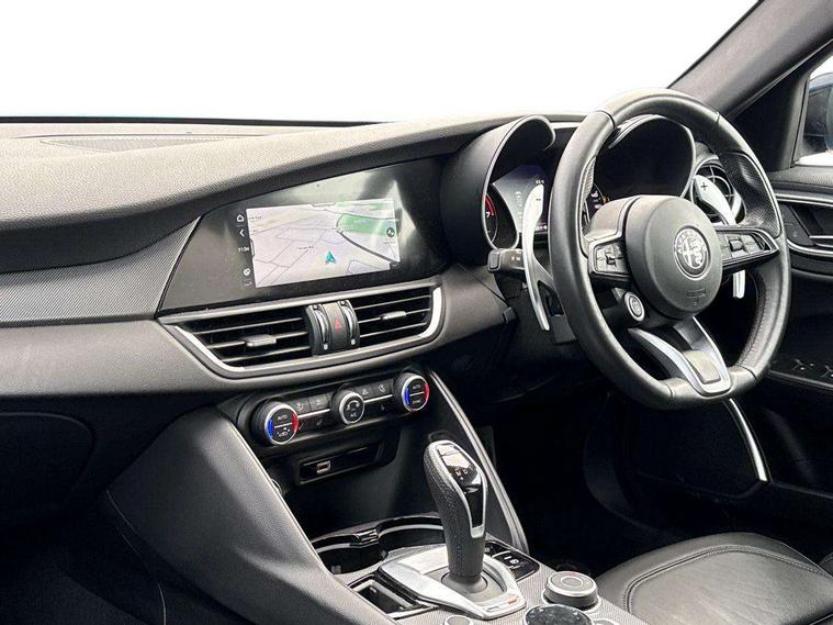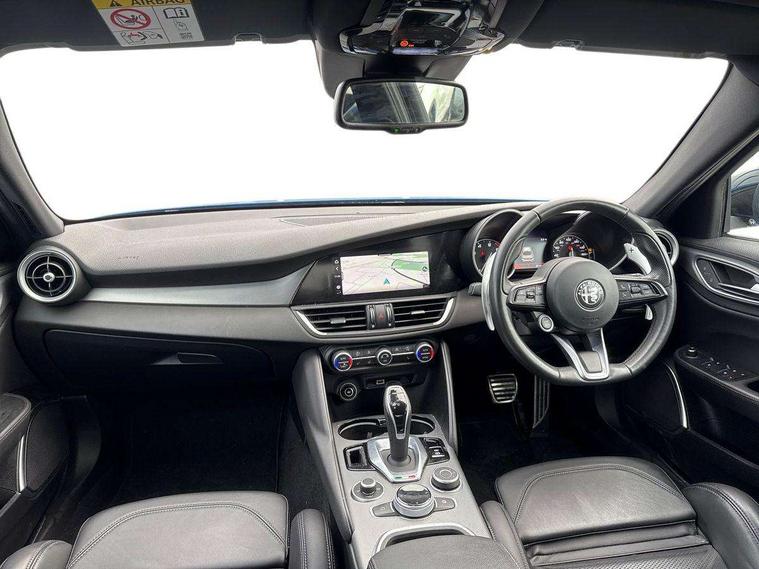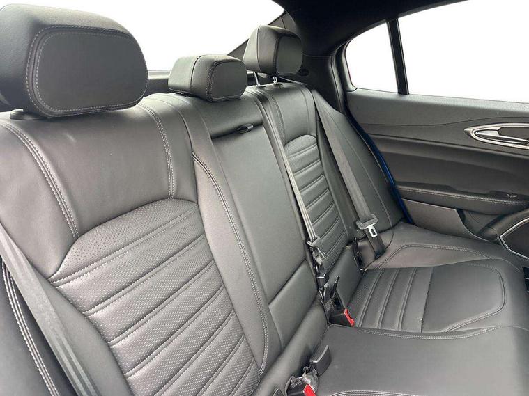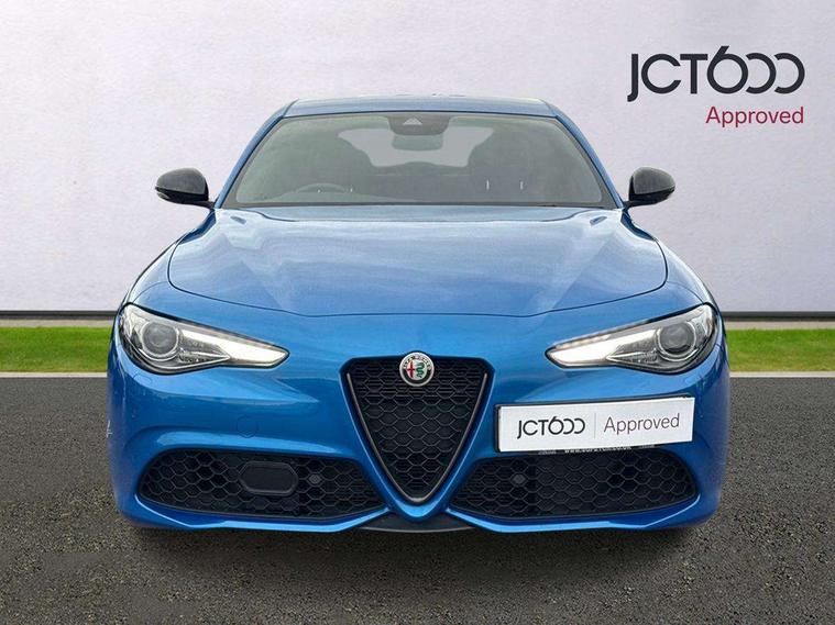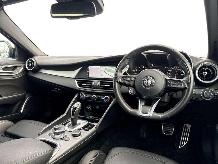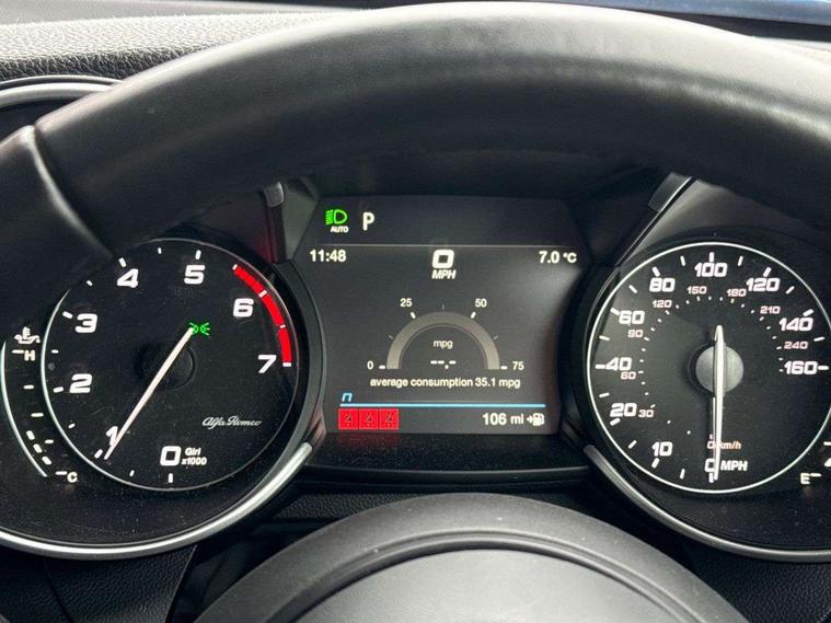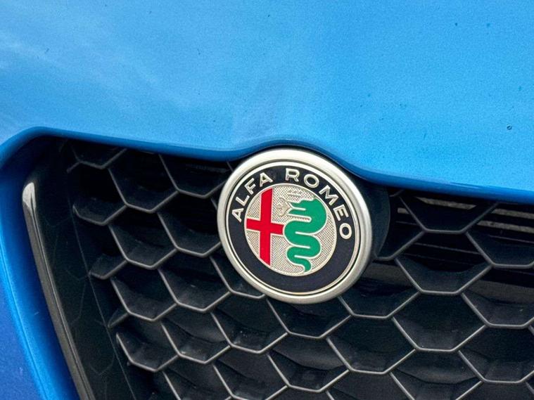 Active cruise control, Alfa connect 3D NAV 8.8'' infotainment system, radio, 3D Sat Nav, MP3, TMC pro, USB, aux-in, bluetooth with 7" TFT instrument display panel, Alfa connect box, Apple car play/Android Auto, Drive mode selector, Electrically operated tailgate, Forward collision warning, Lane departure warning system, PAS, Stop/start system, TMC Pro, Trip computer, West European Map, Wireless charging pad, Digital Audio Broadcast radio-DAB, Satin finish speaker surround system, Steering wheel mounted audio controls, USB in front centre console, USB port front armrest mounted, Adjustable headlights, Aluminium tunnel cover and front door moulding, Automatic front windscreen wipers, Automatic headlights, Dark finish exhaust finisher, Dark finish V grille, Dark tinted rear windows, Dusk sensor, Electrically adjustable and folding door mirrors, Electrochrome rear view mirror, Gloss black side window surrounds, Gloss black windscreen surround, Headlight washers, LED tail and brake lights, Rain sensor, Rear boot, Rear side wing doors, Rear wing door, Sports front and rear bumpers, Sports front splitter and rear diffuser, Veloce badging (front wing), 12V socket in front, 3 individual seats in 2nd row, 40:20:40 split folding rear bench seat, Additional soundproofing, Aluminium kick plate, Aluminium metal sport pedals and footrest, Black painted interior bezels, Boot light, Dark headlining, Dual zone climate control, English handbook, Front headrests, Front passenger seat, Power bolster, Sports leather steering wheel + gearshift, Sports leather upholstery, Sports seats, Start button on steering wheel, Third rear headrest, Cold weather pack - Giulia, Convenience pack - Giulia, Electrically adjustable seats pack, Parking assist pack - Giulia, 3x3 point rear seatbelts, ABS, Autonomous emergency braking, Child locks on rear doors, Electronic parking brake, ESP, Integrated brake system, Passenger seat airbag disable, Performance braking system with larger discs, Seatbelt warning, Traction control, Tyre pressure monitoring system (TPMS), Alarm system with bonnet and intrusion protection, Immobiliser, Remote central locking, Fix and go puncture repair kit, Monochrome central wheel caps,