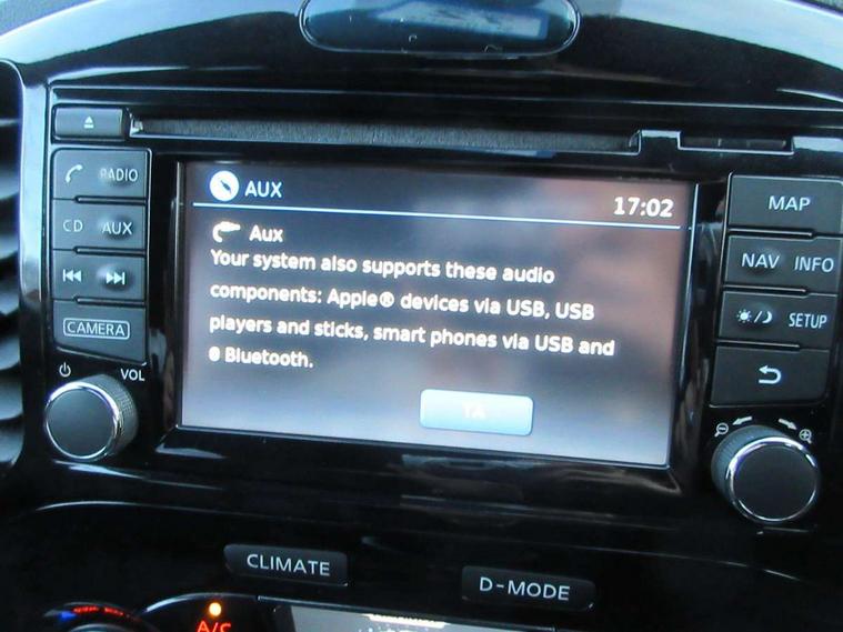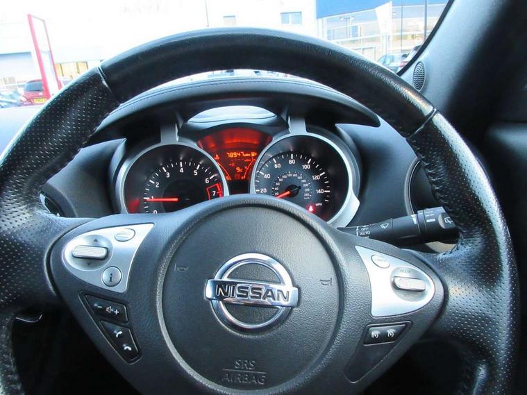 Around View Monitor, Blind spot monitoring, Bluetooth system, Colour rear view camera, Cruise control + speed limiter, Electric speed sensitive power steering, Lane departure warning system, Moving object detection, Nissan connect sat nav system, Push button starter, Service interval indicator, Trip computer, 6 speakers, Aux input, DAB Digital radio, Steering wheel mounted audio controls, Stereo radio/CD player and MP3 facility, USB port, 2 speed wipers+variable intermittent wipe, Automatic headlights, Body colour bumpers, Body colour door handles, Dusk sensor, Electric door mirrors, Electric folding door mirrors, Electric front/rear windows, Front fog lights, Heated door mirrors, LED daytime running lights, Privacy glass, Rain sensor, Rear wiper, 12V socket, 60/40 split folding rear seat, Climate control, Front armrest, Front cupholders x 2, Front door pockets with bottle holders, Front head restraints, Front seat belt pre-tensioners with load limiters, Gear shift indicator, Glovebox, Heated front seats, Height adjustable driver's seat, Internal chrome door handles, Isofix child seat preparation, Leather steering wheel and gear knob, Leather upholstery, Luggage area under floor storage box, Map reading lamp, Passenger seat back pocket, Pollen filter, Rear headrests, Rear tonneau cover integrated into tailgate, Sports seats, Steering wheel rake adjustment, ABS + EBD + EBA, Child locks on rear doors, Driver and passenger airbags, Driver and passenger side airbags, ESP + traction control, Front and rear curtain airbags, Height adjustable front seatbelts, Passenger airbag deactivate switch, Three 3 point rear seatbelts, Tyre pressure monitoring system, VDC Dynamic Vehicle Control, Warning triangle and first aid kit, Alarm, Immobiliser, Intelligent Key, Remote central locking, 17" Urban alloy wheels, Tyre repair kit,