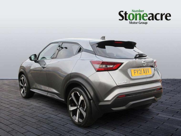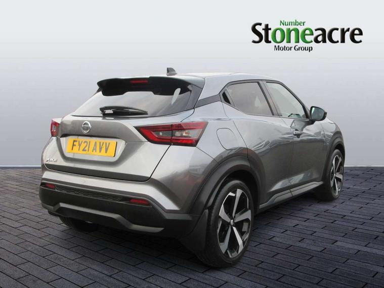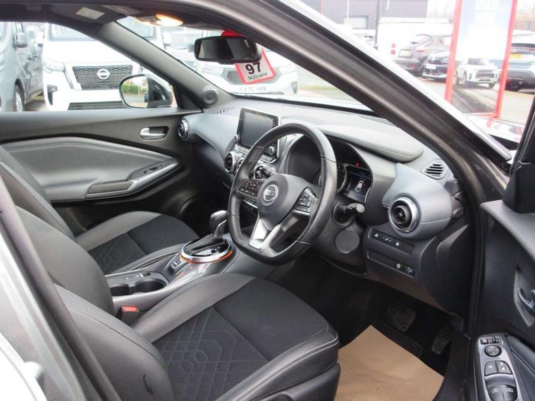 7" full colour TFT screen combimeter, 8" infotainment colour display with touch screen, Apple CarPlay and Google Android auto, Drive modes select (Eco, normal and sport), Emergency and breakdown call, Front parking sensor, Idle start/stop system, Intelligent lane intervention, Lane departure warning system, Nissan connect nav with TomTom traffic, Nissan connect services and Wifi connection, Outside temperature sensor, Power Steering, Rear parking sensor, Traffic sign recognition, Trip computer, Gasoline particulate filter, Bluetooth system, USB, Aux-in and 12V socket, Bose personal plus audio system with 8 speakers(4 speakers and 2 headrest speaker for driver and passenger seats), Bose personal sound stage control, DAB Digital radio, Rear console USB port, Auto dimming interior rear view mirror, Automatic hazard signal with emergency stop signal, Body colour bumpers, Body colour door handles, Electrically adjustable door mirrors with integrated indicators, Follow me home headlights, Front and rear electric window with one touch driver and passenger window, Heated and auto folding door mirrors, High beam assist, LED daytime running lights, LED front fog lights, LED headlamps, LED rear fog lamp, LED rear lamps, Rain sensor windscreen wipers, Rear privacy glass, Rear spoiler, Rear wiper, Thermaclear heated windscreen, Three blink turn signal, 3 height adjustable rear headrests, 60/40 split folding rear seat, Automatic climate control, Card holder on driver sunvisor, Cloth/Synthetic leather upholstery, Door ambient lighting, Driver and passenger sliding and reclining seats, Driver seat back pocket, Driver side rear coat hanger, Driver/passenger sunvisors and illuminated vanity mirrors, Front and rear cabin lights, Front armrest, Front door pockets with bottle holders, Front head restraints, Front passenger isofix child seat anchorage point, Front/rear passenger grab handles, Gear console ambient circle lighting, Grey synthetic leather kneepad, Heated front seats, Height adjustable driver's seat, Height adjustable passenger seat, Internal chrome door handles, Leather gearshift knob, Leather steering wheel, Luggage board, Luggage space lighting, Monoform sporty seats, Multifunction steering wheel, Passenger seat back pocket, Rear door bottle holders, Steering wheel mounted gearshift paddles, Telescopic steering wheel adjustment, Two cupholders in front centre console, Two rear isofix child seat anchorage points with top tether, Voice recognition switch on steering wheel, Welcome light and console tray ambient lighting, ProPilot pack - Juke, ABS with EBD and brake assist, Active ride control, Active Trace Control, Driver and passenger airbags, Driver and passenger side airbags, Electric handbrake with auto hold function, Electronic Stability Programme (ESP), Front and rear curtain airbags, Height adjustable seatbelts, Hill start assist, Intelligent emergency braking with pedestrian and cyclist recognition, Seatbelt reminder for driver/front passenger and rear seats, Single tone horn, Three 3 point rear seatbelts, Traction control, Tyre pressure monitoring system, VDC Dynamic Vehicle Control, Ventilated rear brake discs, Alarm, Immobiliser, Intelligent Key with push button starter, Remote central locking,