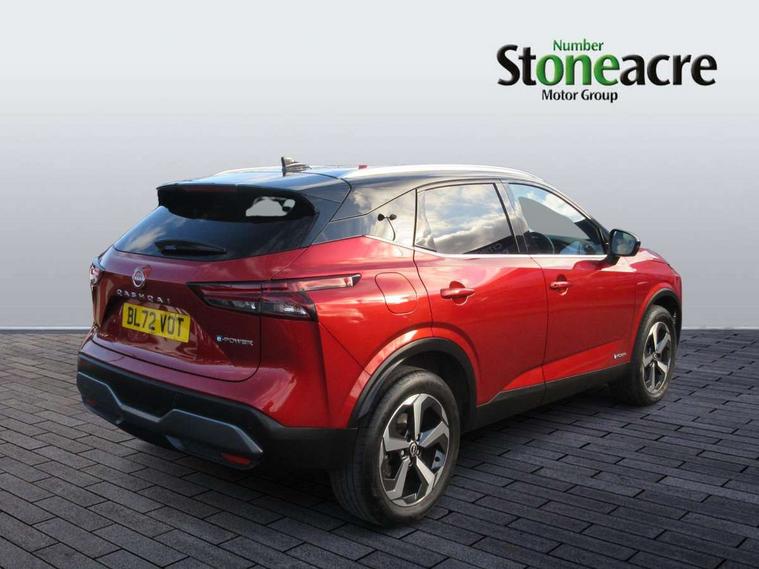 Android auto/Apple CarPlay (Wired), Blind spot warning, Drive modes (sport, normal, eco), Electric speed sensitive power steering, Emergency and breakdown call, Front and rear parking sensors, Full Digital 12.3" TFT Digital Combimeter, Google maps services - search, weather, 3D maps and Google street view, Idle stop/start system, Intelligent around view monitor, Intelligent Cruise control (ICC), Intelligent driver alert system, Intelligent forward collision warning, Intelligent lane intervention, Lane departure prevention, Lane departure warning system, Maximum speed limiter, Moving object detection, Nissan connect 12.3 inch touchscreen infotainment system, Nissan connect navigation, Push button starter, Rear cross traffic alert, Rear view camera, Remote control services - door locks, lights, horn and car locator, Telematics - notifications and connectivity services, TomTom live traffic services, Traffic sign recognition with legal speed adjustment, Trip computer, Virtual personal assistant and firmware over the air capability, Wireless apple carplay, 6 speakers, AM/FM audio system with DAB, Bluetooth audio streaming, Front USB connections (Type-A and Type-C), Rear USB charging only ports (Type-A and Type-C), Auto dimming rear view mirror, Auto rear wiper when reversing, Automatic hazard signal with emergency stop signal, Body colour mirror caps, Body coloured door handles, Bodyside mouldings, Chrome side window finisher, Door handle with button, e-POWER badging, Electric auto folding door mirrors, Electrically adjustable and heated door mirrors with LED turn indicator, Follow me home headlights, High beam assist, Intelligent auto headlights, LED daytime running lights, LED Headlights, LED rear lights, One touch front and rear electric windows with remote opening and closing, Partially body coloured bumpers, Privacy glass, Rear bumper with graphite insert, Rear reversing light (bulb lighting), Rear roof spoiler, Rear side wing doors, Rear styling plate, Shark fin antenna, Splash free rain sensing wipers, Super UV and infrared cut glass, Three blink turn signal, 12v power socket in dashboard and luggage, 2x Rear coat hooks, 3 bench rear seats in 2nd row, 3 rear headrests, 4 folding assist grip, 6-way manually adjustable driver's seat, 60/40 split folding rear seat bench, Ambient lighting around centre console, Centre console storage tray, Chrome interior door handles, Cloth monoform upholstery, Driver and front passenger sunvisors with illuminated vanity mirrors, Driver seat back pocket, Dual zone automatic climate control with pollen filter, e-POWER shifter, Front and rear door storage, Front centre console and armrest, Front cupholders x 2, Front door with bottle holders, Glovebox with light, Hard trunk cover, Height adjustable driver's seat, Height adjustable front headrests, Height adjustable passenger seat, Leather steering wheel, Luggage board system, Luggage space lighting, Manually adjustable passenger (slide recline + lifter), Multifunction steering wheel, Passenger seat back pocket, Rear armrest with 2 cupholders, Rear door bottle holders, Single front passenger seat, Soft PVC kneepad, Steering wheel switches, Sunglasses holder, Tilt/telescopic adjustable steering wheel, Two rear isofix child seat anchorage points with top tether, Welcome light and console tray ambient lighting, 3x3 point rear seatbelt pretensioners + load limiters, ABS with EBD and brake assist, Active brake limited slip, Auto hold function, Child locks on rear doors, Curtain and front side, far side airbags, Driver and passenger airbags, Driver, passenger and 2nd row rear seat belt reminder, Electronic parking brake, Front seatbelt pretensioners + load limiters, Height adjustable front seatbelts, Hill start assist, Intelligent blind spot intervention, Intelligent front emergency braking with pedestrian, cyclist recognition and junction assist, Intelligent rear automatic braking, Tyre pressure monitoring system, Vehicle dynamic control, Capless fuel filler, Engine immobiliser, Intelligent Key, Remote central door locking with deadlocking, Thatcham Cat.1 alarm, Interior instrumental panel B finisher, 18" Diamond cut alloy wheels, Tyre puncture repair kit,