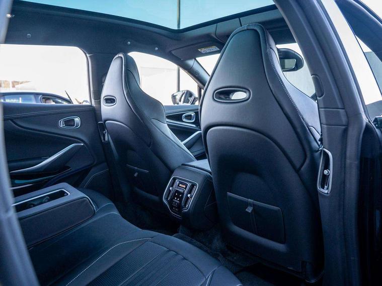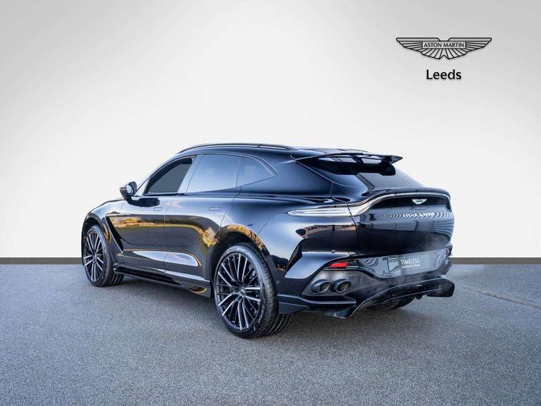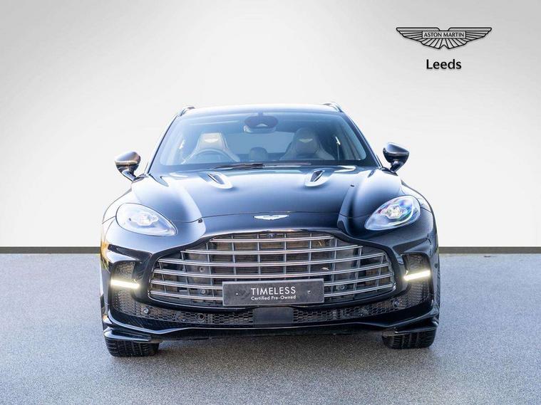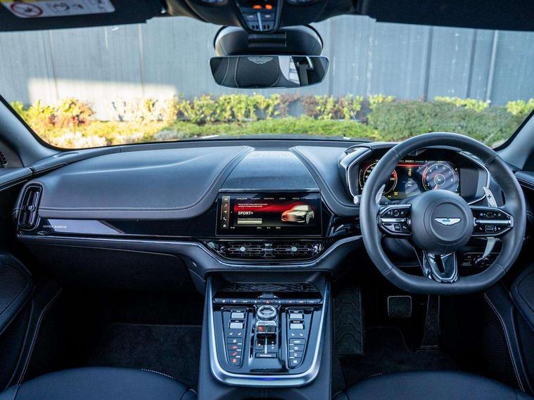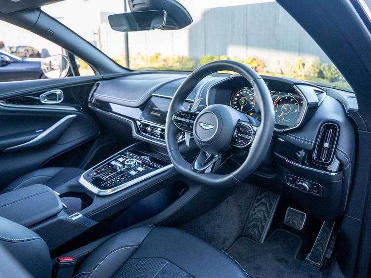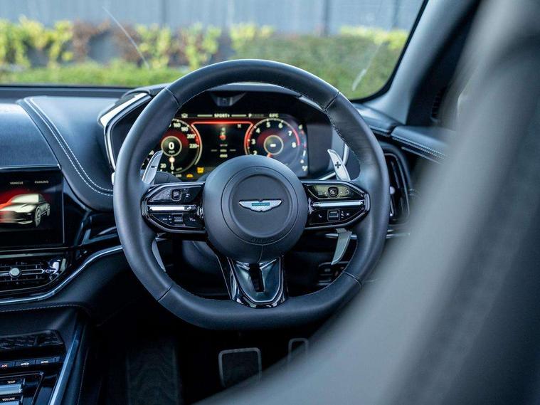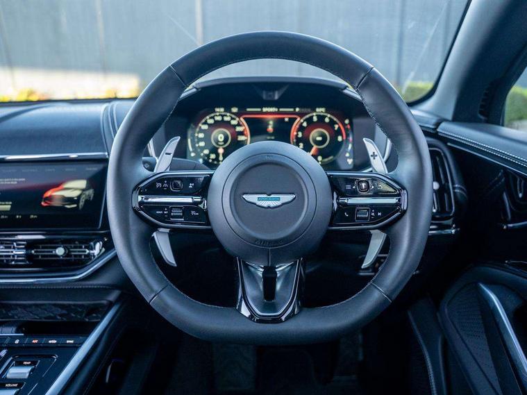 10.25" TFT centre display, 12.3" TFT instrument display, Adaptive cruise control, Apple car play/Android Auto, Aston martin satin chrome designer key, Blind spot monitoring, Bluetooth telephone connectivity, Brake pad wear indicator, Drive modes Terrain, Individual, GT, Sport, Sport + including launch control, eCall emergency call system, Electric power assisted steering (EPAS), Forward collision warning, Front parking aid with visual indicator, Inductive phone charger, Infotainment touchpad and dial, Lane change warning, Lane departure warning system (LDW), Lane keep assist, Outside temperature display, Park assist system, Rear crossing traffic warning, Rear parking aid with visual indicator, Rotary dials, Rotary infotainment system interface, Satellite navigation system, SOS emergency call button, Speed limiter, Standard underbonnet, Stop/start system, Surround camera system with deploying rear camera, Traffic sign recognition, Voice control system, 9 speed automatic transmission, Active centre transfer case, Adaptive triple chamber air suspension, All Wheel Drive (AWD), Battery conditioning connector, Electric active roll control, Electric limited slip rear differential, Electronic adaptive damping system, AM/FM radio, Aston martin premium audio, Bluetooth audio streaming, DAB Digital radio, SD card slot, USB port, 3rd brake light, Acoustic laminated front windows, Active rear brake lights, Approach Illumination, Auto dimming interior rear view mirror, Automatic headlights, Automatic high beam - AHB, Bi LED headlights, Body colour side vent, Carbon fibre rear wing lip spoiler, Electric windows, Fixed panoramic glass sunroof, Heat insulating glass, Heated rear window, Horizontal DRL/turn indicator design with larger air intakes and brake cooling grilles, LED centre high mounted stop light, LED daytime running lights, LED rear fog light, Matte black mesh bonnet vents, Power foldback door mirrors, Rain sensing windscreen wipers, Rear bumper design with integrated quarter panel vents, Rear side wing doors, Rear wiper, Sport exhaust, Standard paint protection film, 12V power sockets, 16 way electric front seats with memory, 3 seat bench in 2nd row, 40:20:40 split folding rear seats, Ambient lighting, Anodised aluminium sill plaques with aston martin wings, Automatic climate control, Black loadspace carpet, Courtesy Light, Embossed - Aston martin wings, Front and rear door pockets, Front centre console storage cover, Front head restraints, Gloss black double layer side sills, Glovebox with electric locking, Heated seats, Isofix/I size rear outer, Load rails in load space, Load tie downs in load space, Lower front console storage, Map pocket on front seat storage, Rear head restraints, Single front passenger seat, Soft close doors, Sports plus seats, Stainless steel sill protector in load space, Twin cupholders in front and rear, Twin front centre armrest, Twin sunvisors with illuminated vanity mirrors, 3x3 point rear seatbelts, Airbags - Driver and front passenger and knee, Anti theft locking wheel bolts, Anti-lock braking system (ABS), Auto vehicle hold function, Autonomous emergency braking, Carbon ceramic disc brakes, Door exit warning, EBD - Electronic brakeforce distribution, Electric parking brake (EPB), Emergency brake assist, ESC (Electronic Stability Control), Front thorax airbags/Side curtain airbags, HDC - Hill descent control, High performance braking system, Hill start assist, Intelligent wet brake control, Rear child proof door locks, Rear thorax airbags, RSC - Roll stability control, Seatbelt pre-tensioners, Seatbelt status indicator, Torque vectoring brake, Traction control, Tyre pressure monitoring system, Warning triangle, Alarm/immobiliser, Keyless entry with start/stop button, Remote central locking, Seat perforaton elegant, Seat quilting elegant,