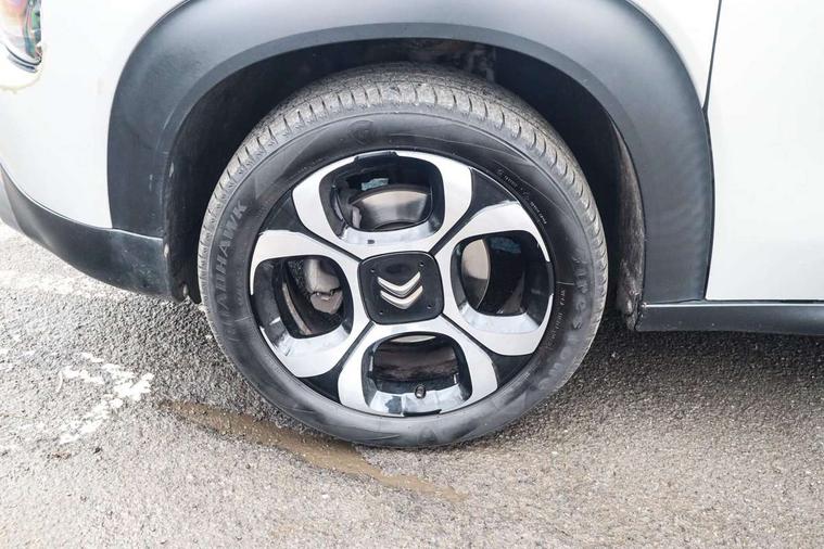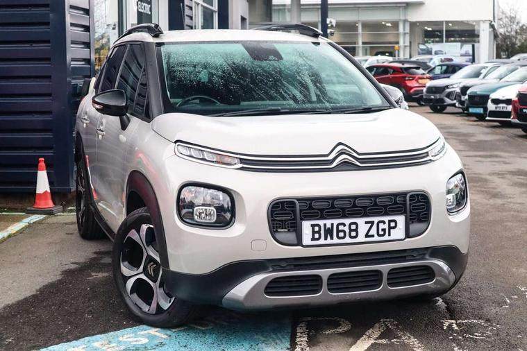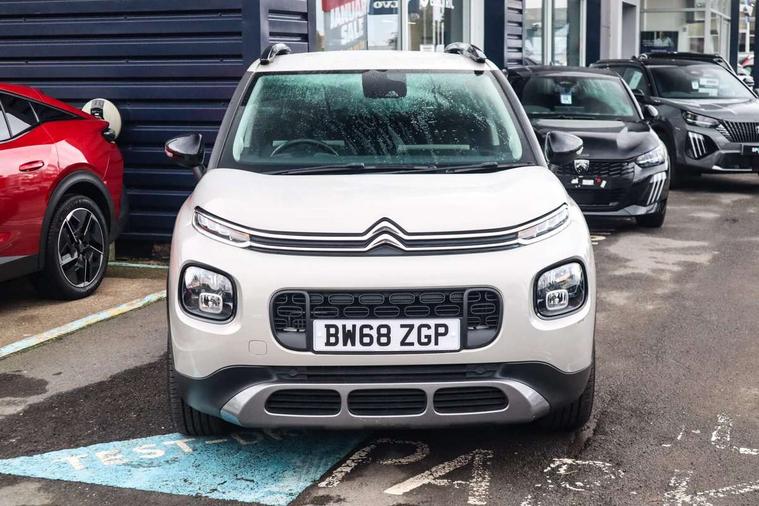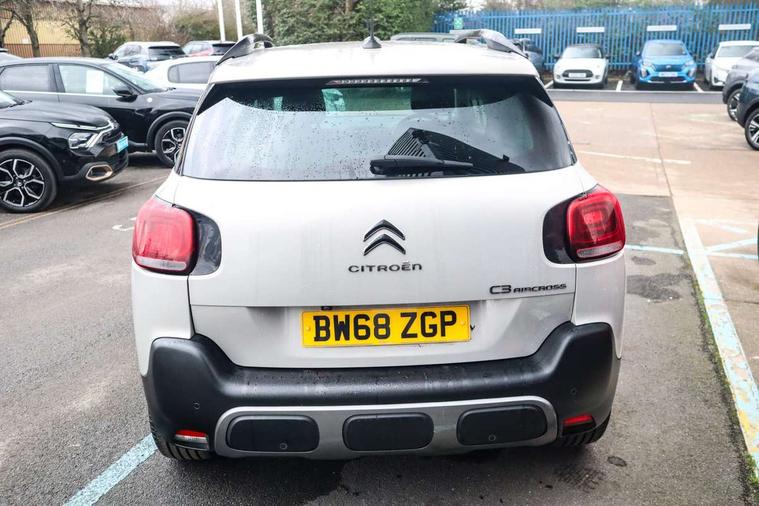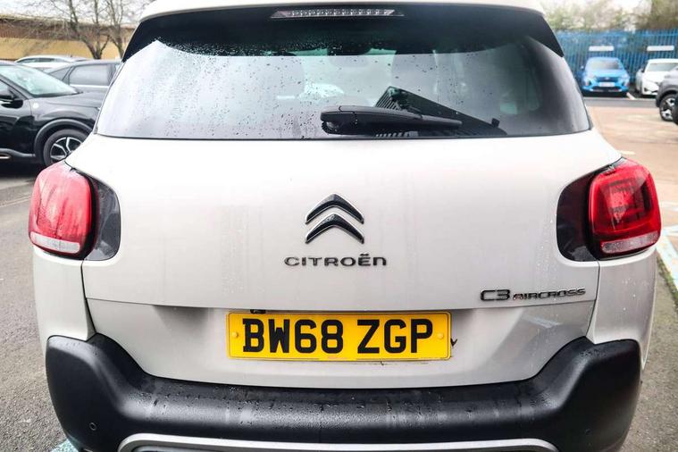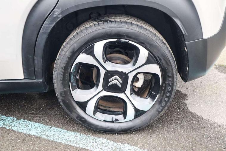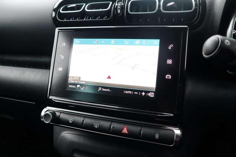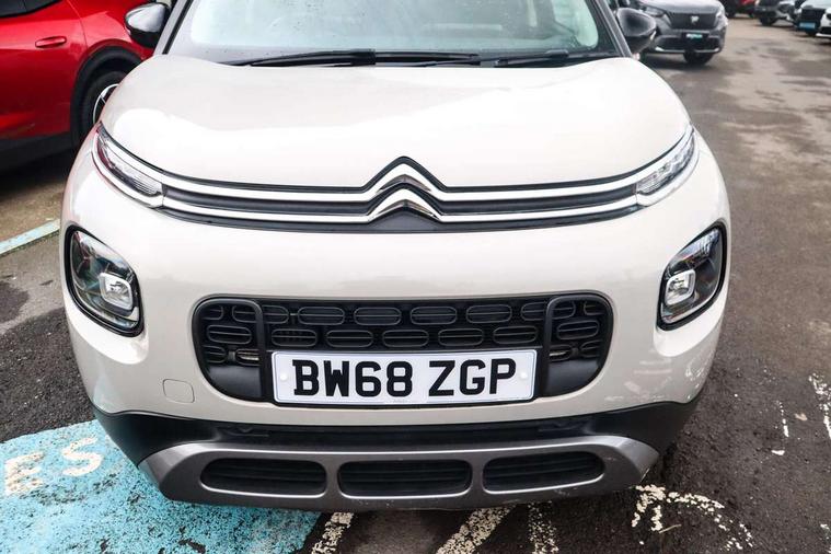 7" colour touch screen, Citroen connected nav with connect box and emergency assist system, Coffee Break Alert, Cruise control + speed limiter, Lane departure warning system, Mirror screen with mirror link, apple carplay and android auto, Multi function on board trip computer, Rear parking sensors, Rev counter, Speed limit recognition and recommendation, Variable PAS, Bluetooth hands free and media streaming with USB socket and jack, Citroen connected DAB radio with 6 speakers, Steering wheel mounted controls for stereo and telephone, Automatic lights, Body colour bumpers, Body colour painted door handles with chrome insert, Dark tinted rear windows, Electric front windows + one touch + anti-pinch, Electric rear windows + anti-pinch, Electrically adjustable, heated and folding door mirrors, Front and rear aluminium effect bumper protectors, Front fog lights with cornering function, Halogen headlights with LED daytime running lights, Rear wiper, 0.5L Large bottle rear door storage, 1.5L Large bottle front door storage, 12 volt front socket, 12 volt rear socket, 60/40 split folding rear seat, Boot light, Driver and passenger sunvisor with courtesy mirror, Floor console central storage with 2 cup holders, Front courtesy reading lights, Grey soft touch dashboard facia, Height adjustable driver's seat, Height adjustable front headrests, Height and reach adjustable steering wheel, ISOFIX outer rear seats mounting points including top tether, Lashing eyelets in boot, Leather gear knob, Leather steering wheel with satin chrome inserts and radio controls, Pull out boot floor, Rear centre armrest/ski flap, Sliding rear bench, Three height adjustable rear head restraints, Tilt adjustable rear seats (Two positions), Automatic pack - C3 Aircross, 3 point inertia reel seatbelts on all 5 seats, ABS with Electronic brakeforce distribution and Emergency braking assistance, Active safety brake, Airbags - Driver/front passenger, front lateral and curtain, Drivers/passengers and rear seats unfastened seat belt warning, Electronic stability control, Forward collision alert, Front seatbelt pretensioners, Hill start assist function, Manual rear child locks, Tyre pressure monitor, Alarm, Automatic boot locking, Automatic door locking, Immobiliser, Keyless entry and start, Locking wheel nuts, Remote central locking + deadlocks, 17" Diamond cut 4 ever alloy wheels, Space saver spare wheel,