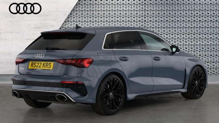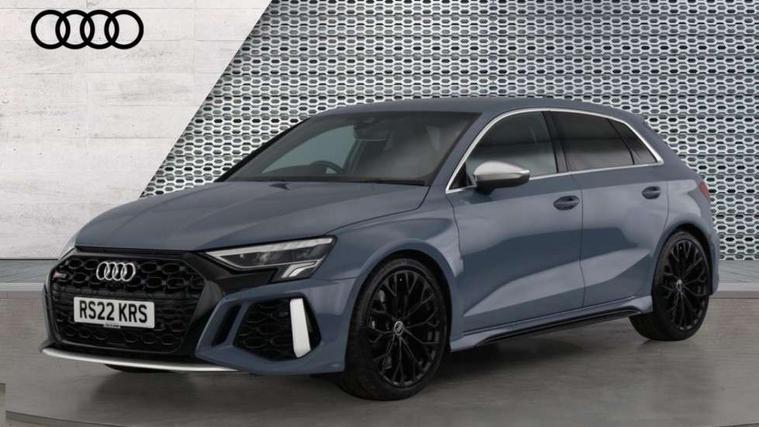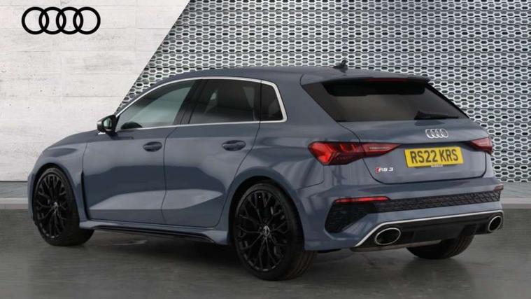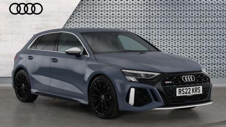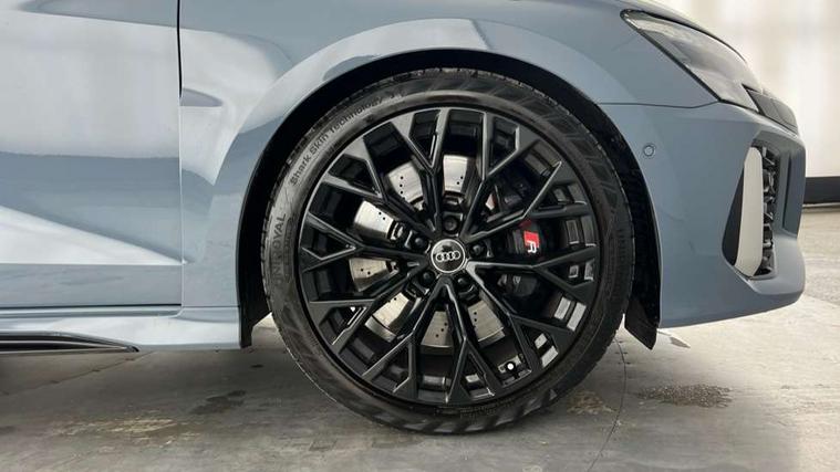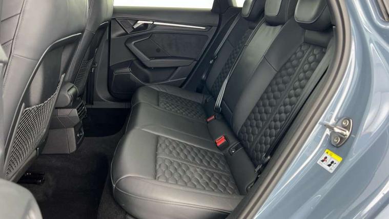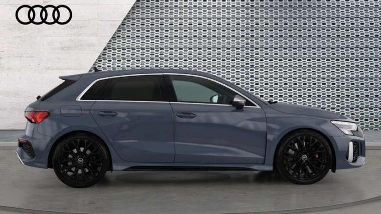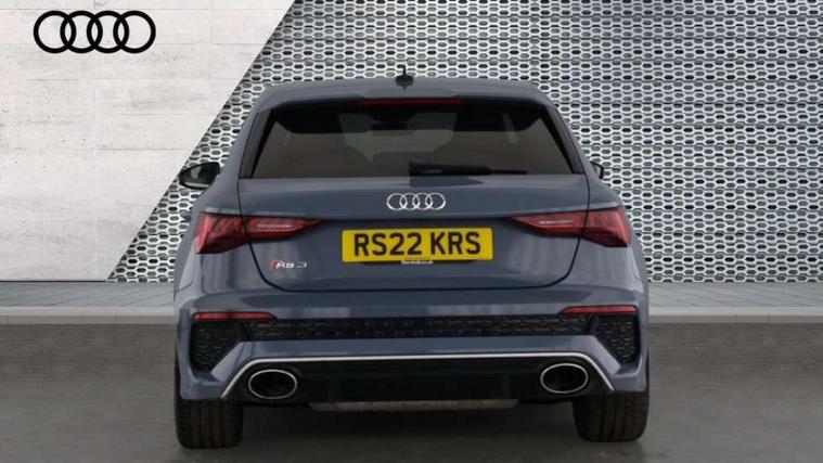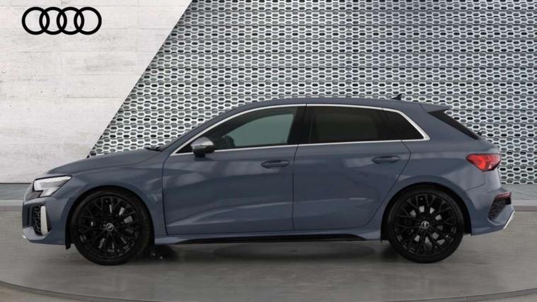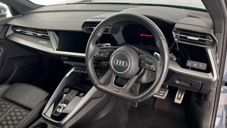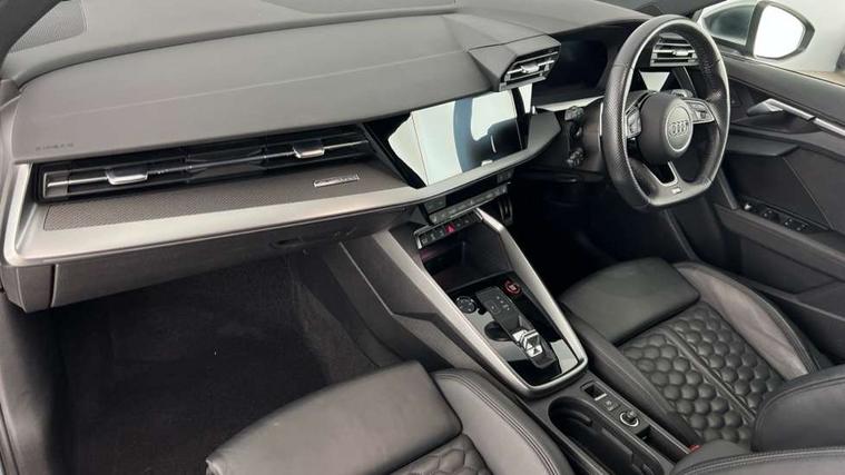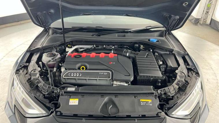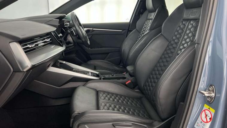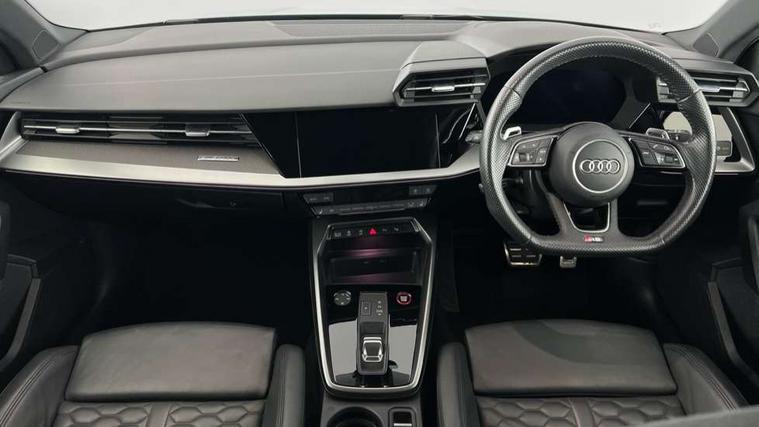 Audi connect emergency call and service, Audi smartphone interface, Audi virtual cockpit with RS specific display 12.3" full colour digital instrument cluster, Automatic start/stop system with recuperation, Bluetooth interface, Collision avoidance assistant, Lane departure warning system, Legal emergency call, Manual boot opening, Parking assist with parking system plus, Progressive power assisted steering, Quattro permanent four wheel drive, Rear suspension, Audi sound system impressive sound with 10 loudspeakers including centre speaker and subwoofer, 6-channel amplifier with a total output of 180 watts, DAB Digital radio, 3rd brake light, Acoustic glass windscreen, Audi beam uses LEDs to project the Audi sport logo onto the ground as you exit your RS 3, Auto dimming rear view mirror, Black side skirts, Body colour roof, Door mirrors - electrically adjustable, heated, folding and auto dimming on both sides, Headlight washers, LED headlights with LED rear lights + dynamic rear indicators, Light and rain sensors, Matt aluminium door mirrors, Matt aluminium window trims, Privacy glass - dark tinted rear and rear side windows from B-pillar backwards, Rear window wiper and washer system, 40/20/40 split folding rear seat bench, Black cloth headlining, Dual zone electronic climate control, Front and rear headrests, Front centre armrest, Front sports seats RS embossed logo, Front/rear floor mats, Heated front seats, Honeycomb stitching and RS embossing, Illuminated door sill trims inlays in aluminium with RS 3 logo, Manually adjustable front seats, RS emblems, Stainless steel pedals and front footrest in black, Aluminium interior elements pack - RS3, Ambient lighting pack - RS3, MMI navigation plus with MMI touch - RS3, RS bodystyling - RS3, Storage Pack - RS3, 3x3 point rear seat belts, ABS/EBD, ASR, Audi pre sense front, Driver/Front Passenger airbags, EDL, ESC - Electronic Stability Control + traction control, Front passenger airbag deactivation, Front side airbags with head airbags and interaction airbag, Hill hold assist, Seat belt reminder with passenger presence detection in rear, Tyre pressure loss indicator, Warning triangle and first aid kit, Anti theft alarm, Anti-theft wheel bolts, Electronically operated child lock, Remote control central locking, Carbon inlays, accent surfaces in the dashboard and centre console in platinum grey silk effect paint finish, 19" 10 Y spoke platinum grey, gloss turned finish alloy wheels, Tool kit, Tyre repair kit,