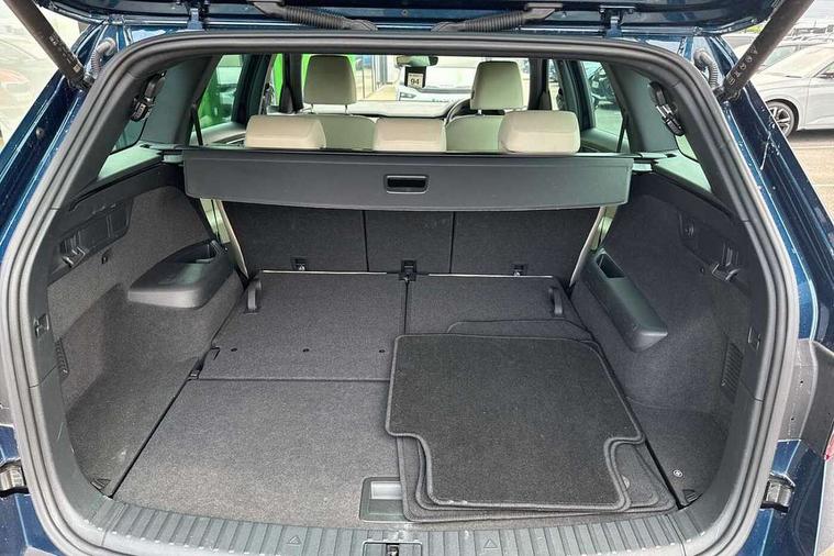 Bluetooth system, Digital voice enhancement, E-call, ECO Stop/start function, Exterior temperature indicator, Rear view camera, Smartlink wireless for apple carplay and wired for android auto, Speed limiter, Tailgate unlocking from outside, USB C Port x 2 in front centre console, Wireless charging, 8 Speakers, DAB Digital radio, Aero front windscreen wipers with intermittent function, Aero rear window wiper, Auto dimming rear view mirror, Black wheel arch surrounds, Body colour bumpers, Body colour door mirrors and handles, Chrome front grille, Chrome roof rails with chrome window surround, Daytime running lights, Electric adjustable/heated/folding door mirrors, driver side auto dimming with boarding sports and memory function, Electric front and rear windows, Extended rear spoiler with finlets in gloss black, Front fog lights, Full LED matrix headlights with AFS (adaptive front light system), cornering function and AWL (all weather lighting system), Headlight washers, Heated rear window, Invisible tailpipe, LED rear fog light, LED third brake light in rear spoiler, Light assistant (coming/leaving home/tunnel light), Off-road style lower front bumper element, Privacy glass, Rain and light sensors, Rear LED lights (high functionality) with welcome effect and dynamic indicators, Rear side wing doors, Safety reflectors on front and rear doors, Window control switches with black trim, Without engine designation, 12V socket in boot, 2 rails with 2 hooks, 2 seat bench in 3rd row, 3 seat bench in 2nd row, 4 foldable roof handles with rear coat hooks, 60:40 foldable rear seat with sliding adjustment and backrest angle adjustment, Bottle holders in door panel in the 1.5 litre front and 1 litre rear, Cargo storage compartments, Chrome headlight control button, Chrome interior door handles, Coat hooks on B pillar, Covered storage compartment on driver side, Front centre armrest with storage compartment, cup holder and 12V socket, Front courtesy lights, Gear shift lever with chrome frame and black gloss insert, Grey stitching in front and rear armrests and door armrests + door inserts, Height adjustable front headrests, Illuminated and cooled glovebox, Illuminated luggage compartment, Isofix child seat fittings in outer rear seats with top tether, Manually adjustable steering column, Net programme in boot (1x horizontal Net, 2x vertical Nets), Overhead glasses storage compartment, Pollen filter, Rear centre armrest with cupholders, Single front passenger seat, Sliding trunk cover, Small Bags on the inner sides of the front backrests, Sunvisors with illuminated vanity mirrors, Three rear height adjustable headrests, Ticket holder on A Pillar, Umbrella in door panel, Variable boot floor, Auto door release and activation of warning lights in the event of an accident, Child locks on rear doors, Driver and front passenger airbag with knee airbag and front passenger airbag deactivation, Electronic parking brake with hill start assist, Emergency rear braking signal, ESC (incl. ABS+MSR+ASR+EDS+HBA+DSR+RBS+MKB), Front assist with autonomous emergency braking, Front side airbags with curtain airbags, Fuel cut off safety device, Height adjustable front 3 point seatbelts + pretensioners, Hill hold control, Rear disc brakes, Safety vest holder in door, Seat belt reminder for all seats, Three point rear seat belts, Two tone horn, Tyre pressure monitor, Alarm with interior monitoring and tilt sensor with safe function, Anti-theft wheel bolts, Immobiliser, Keyless entry and start system (KESSY), Remote central locking with 2 keys, Grey stitching in dashboard, Linear diamonds decorative inserts, Temporary spare wheel (space saver),