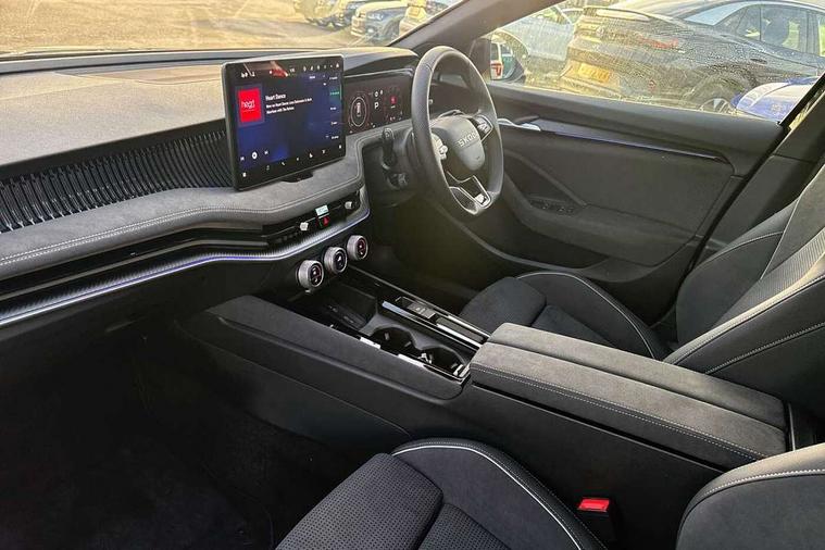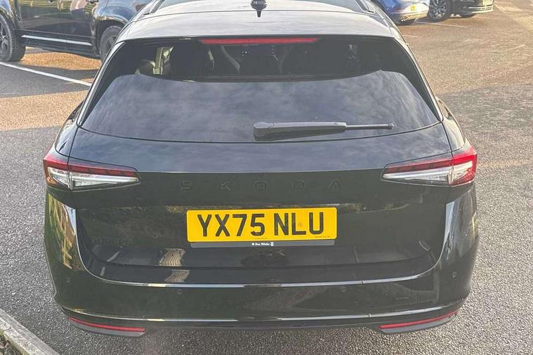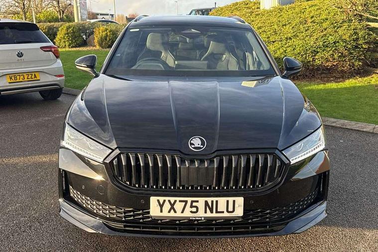 13" touchscreen display with satellite navigation, 4x USB-C ports (2x in front centre console and 2x in rear) (45W), Adaptive cruise control with speed assist, lane assist plus and traffic tram assist, Blind spot detection with door exit warning, Bluetooth system, CareConnect and Emergency Call, ChatGPT functionality, Driver fatigue sensor, Front assist with extended predictive pedestrian protection, Front cross traffic assist, PAS, Quick start all heating software functionality, Stop/start engine system, Traffic sign recognition, Turn assist with evasive assistance, Virtual Cockpit - 10.25" digital display, Voice control system, Washer for rear camera, Wireless charging for one smartphone (15W) with cooling function, Wireless smartlink apple carplay, SmartLink+ android auto, Dynamic chassis control plus with progressive dynamic steering, DAB Digital radio, Display cleaner, FM radio connection, Web radio connection, Acoustic side windows and interior noise suppression, Backdrop lighting, Black exterior styling window and grille surrounds, Black roof rails, Body colour door handles, Dynamic range control with poor weather light and integrated fog light, Electrically adjustable, heated, folding and driver side auto-dimming door mirrors with memory function, integrated indicators and logo projection, Frameless auto-dimming rear view mirror with USB-C, Gloss black door mirrors, Ice scraper in fuel tank cap, LED 3rd brake light, Light assist with High beam control, Light assistant (coming/leaving home/tunnel light), Privacy glass, Rear fog lights (x2), Rear roof spoiler, Rear side wing doors, Rear windscreen wiper, Skoda lettering in black, Sportline badging, Sports bumpers, Windscreen wipers with rain sensor, 12V socket 1x centre console 1x boot, 14-way electrically adjustable, memory, front seats with 4-way pneumatic lumbar support, and extendable thigh support with smart comfort entry aid, 2x cargo elements in boot, 2x light in boot, 3 seat bench in 2nd row, 4x foldable bag hooks in boot, 60:40 Split folding rear seats, Aluminium pedals, Bottle holders in the front doors 1.5 litre bottle and rear 1.5 litre bottle, Cup holder in front with easy open mat, Front armrest with storage box, Front sports seats, Heated and ventilated front seats, Height adjustable front and rear head restraints, Illuminated glovebox, Interior lights with control switches, Isofix child seat fittings in outer rear and front passenger seats, LED front and rear reading lights, Single front passenger seat, Skoda lettering on steering wheel, Storage compartment with cover, Storage pockets on back of front seats, Sun visors with illuminated vanity mirrors, Ticket holder on A Pillar, Tri zone climate control, Umbrella in driver's door, Light and view package - Superb, Transport package - Superb Estate, 3 rear seatbelts, 8 Airbags - Front driver and passenger, front side driver and passenger, centre, curtain front and rear, drivers knee, Crew protect assist, Driver and passenger seatbelts with warning light, Electronic parking brake, ESC including ABS, EBV, MSR, ASR, EDS, HBA, DSR, RBS, CBC, multi-collision brake (MKB) and Auto hold, Hill hold assist, Power operated child lock in rear doors, Alarm with interior monitoring tilt sensor and back up horn, Backrest remote release from trunk, Electronic engine immobiliser, Keyless start/stop, Remote central locking with SAFE system, Third key, Walk away locking, Decorative front door sills, 19" Torcular polished black alloy wheels with anti theft wheel bolts,