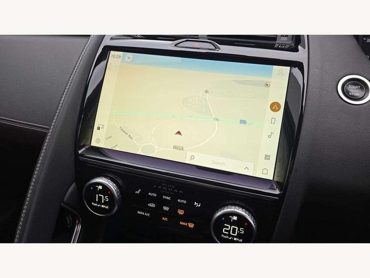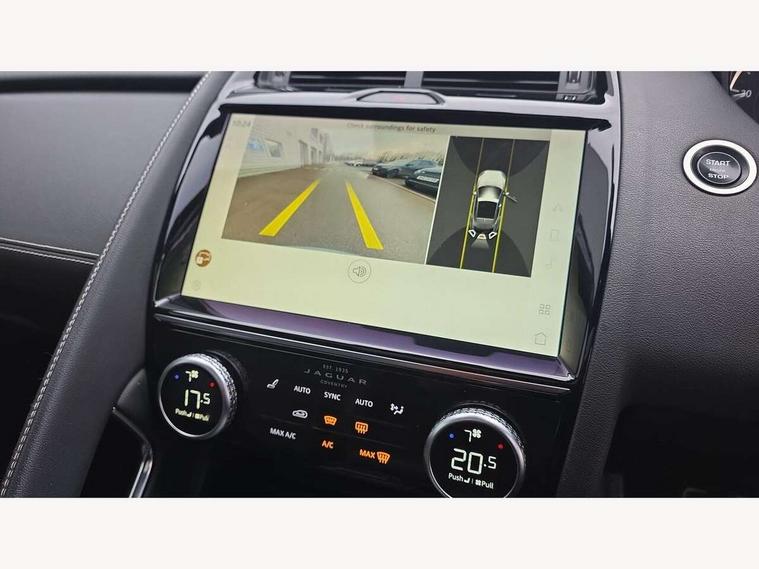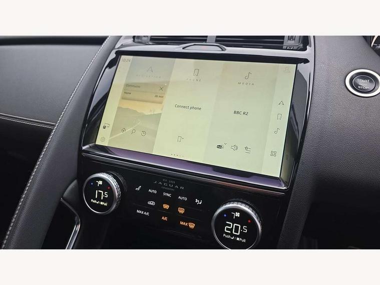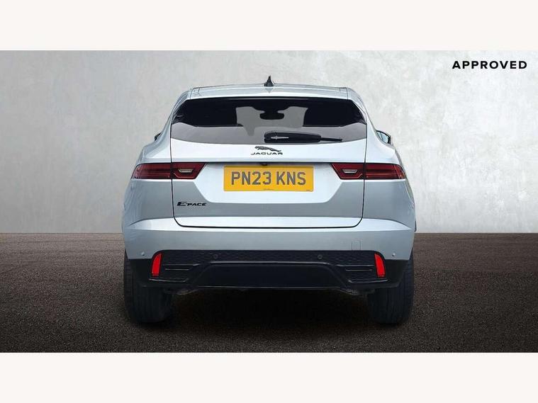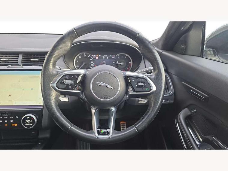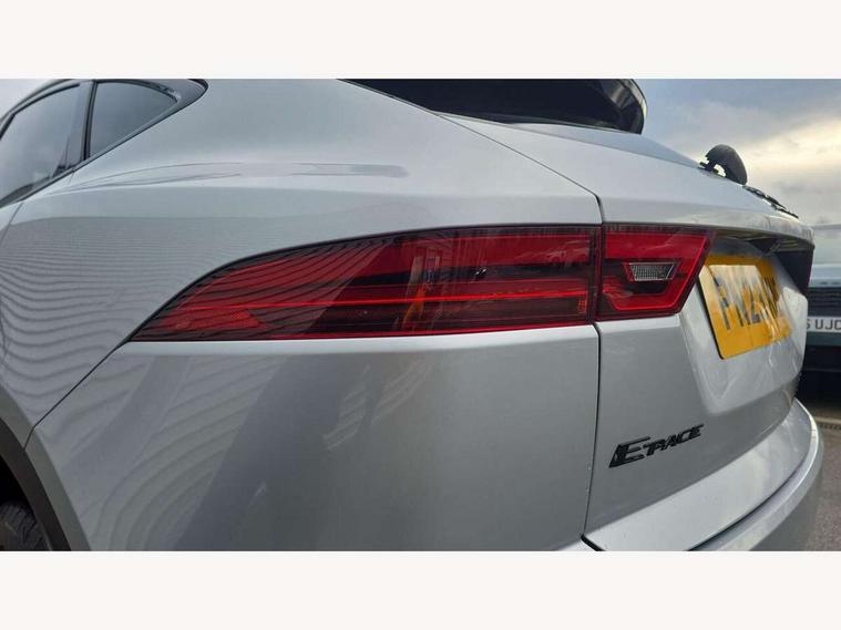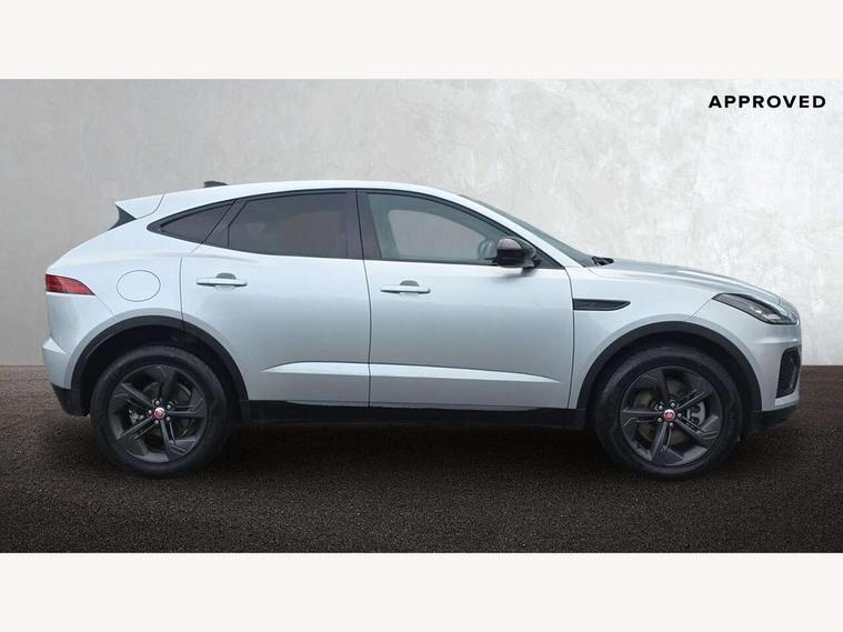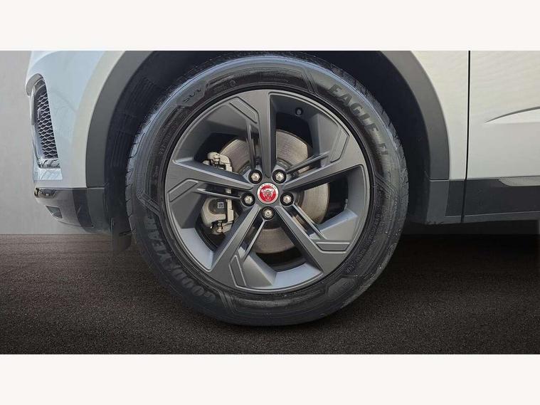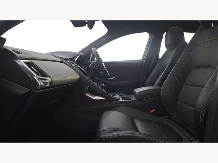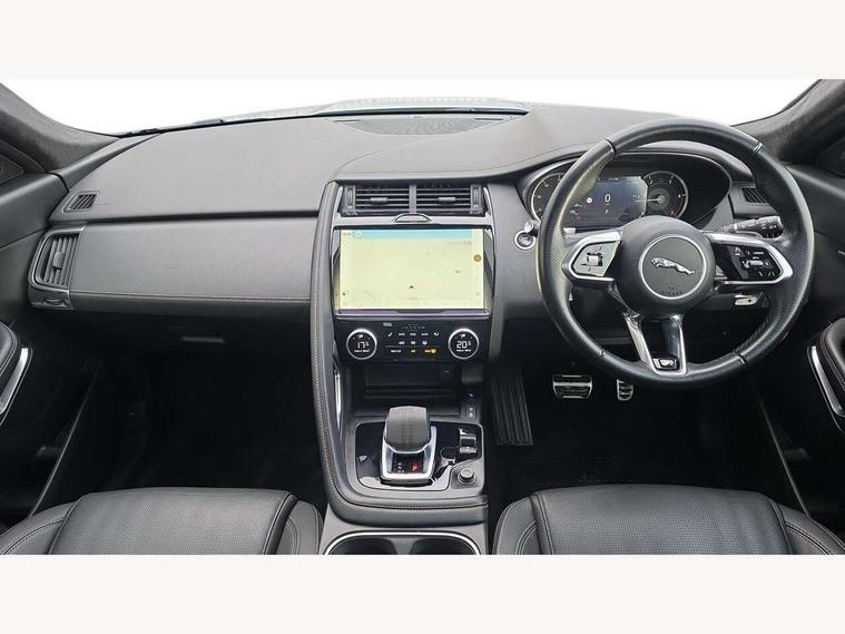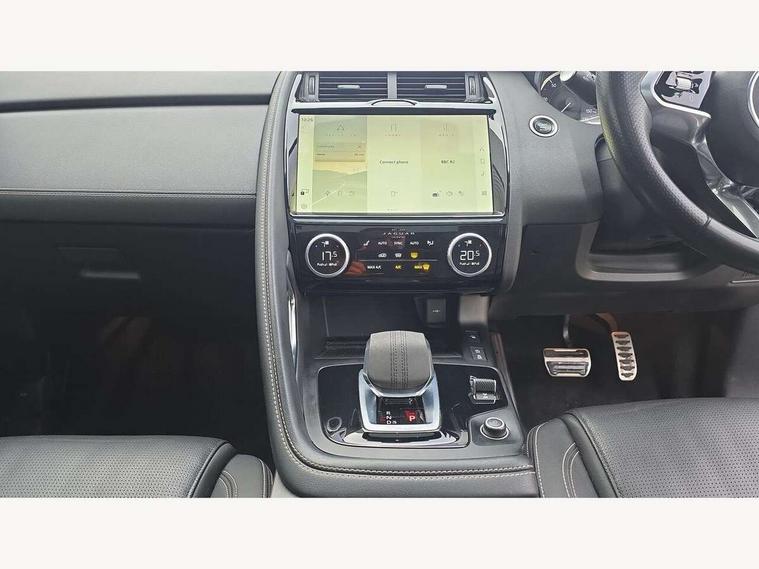 11.4" touchscreen with central ICP, 12.3" full digital instrument panel, Adaptive cruise control, Android Auto, Apple car play, Driver condition monitor, Eco driving style assistant, Electric power assisted steering, Emergency services call system, Front and rear parking aid, InControl remote, Jaguar drive control with adaptive surface response, Jaguar Toggle sport shift selector, Lane keep assist, Outside temperature gauge, Pivi pro connected infotainment system with smart settings and navigation pro, Push button start, Speed proportional steering, Traffic sign recognition with adaptive speed limiter, Trip computer, Voice control system, Configurable dynamics, Diesel particulate filter, Efficient Driveline, Passive suspension, AM/FM DVD MP3 radio, Bluetooth connectivity including audio streaming, DAB digital audio broadcast, Dynamic volume control, 3 flash lane change indicators, Approach Illumination, Auto high beam assist, Automatic headlights, Body colour door handles, Body colour upper spoiler, Body coloured side sills, Centre high-mounted stop light, Electric front/rear windows with one touch/auto up/down, Electric heated/power fold memory door mirrors with approach lights and auto dimming driver side, Embossed leaper for grained and windsor leather, Fixed panoramic glass sunroof, Heated washer jets, Heated windscreen, Jaguar script and leaper, LED tail lights, LED third brake light, Narvik black antenna pod and side pillar finisher, Narvik black door mirrors, Narvik black front and rear low bumpers, Narvik black lower side cladding, Privacy glass, R Dynamic badge, Rain sensor windscreen wipers, Rear fog lights, Rear side wing doors, Rear wash wiper, Satin black grained front outer grille, low grill mesh and low bumper valence, side fender vent mesh and finisher, rear tow eye cover and grille mesh, Twin exhaust tailpipe, Variable front intermittent wipers, 3 rear head restraints, 3 seat bench in 2nd row, 40:20:40 rear seat fold, Bright metal pedals, Carpet mats, Centre console with armrest, Enhanced ambient lighting, Hooks loadspace, ISOFIX on outer rear seats, Loadspace cover, Loadspace light, Loadspace storage net, Luggage tie-downs in loadspace, Manual height/reach adjust steering wheel, Multifunction steering wheel, Overhead lighting console, Passive front head restraints, Power sockets, R-Dynamic branded leather steering wheel, Rear air vents, Rear bench seats, Satin chrome gearshift paddles, Single front passenger seat, Sunvisors with illuminated vanity mirrors, Twin front cupholders, Two zone climate control, Exterior black pack - E-pace, 3x3 point rear seatbelts, ABS, All surface progress control (ASPC), Child locks on rear doors, Customer configurable autolock, DSC - Dynamic Stability Control, Electronic brake force distribution, Electronic parking brake, Emergency brake assist, Emergency braking, Front airbags with passenger seat occupant detector, Front and rear curtain airbags, Front and rear seatbelt reminder, Front passenger airbag deactivation, Front seatbelt pretensioners, Front side airbags, Height adjustable front seatbelts, Hill start assist, Low friction launch, Power child locks, Torque vectoring brake, Tyre pressure monitoring system, Intrusion sensor and alarm, Locking wheel nuts, Remote central locking,
