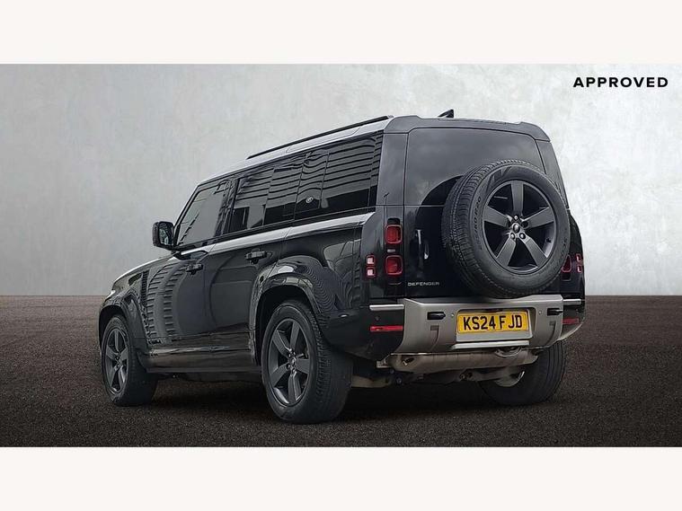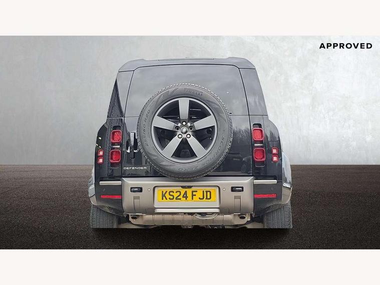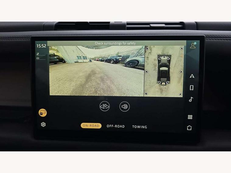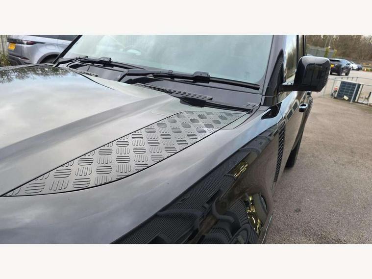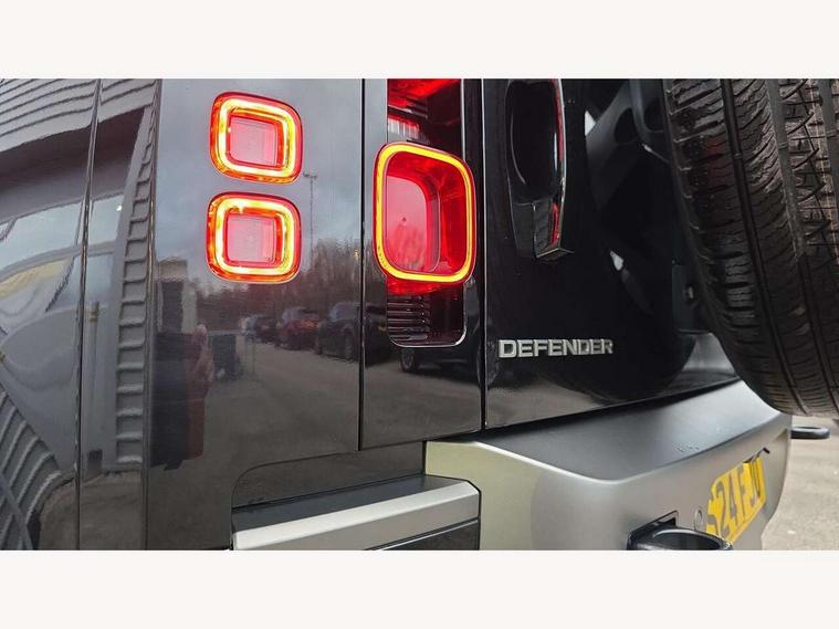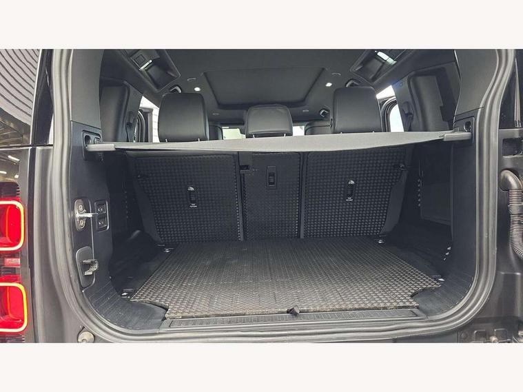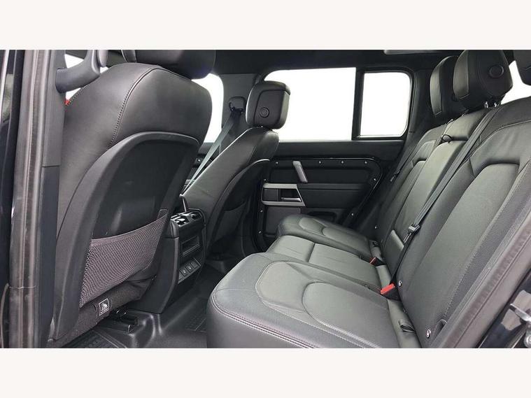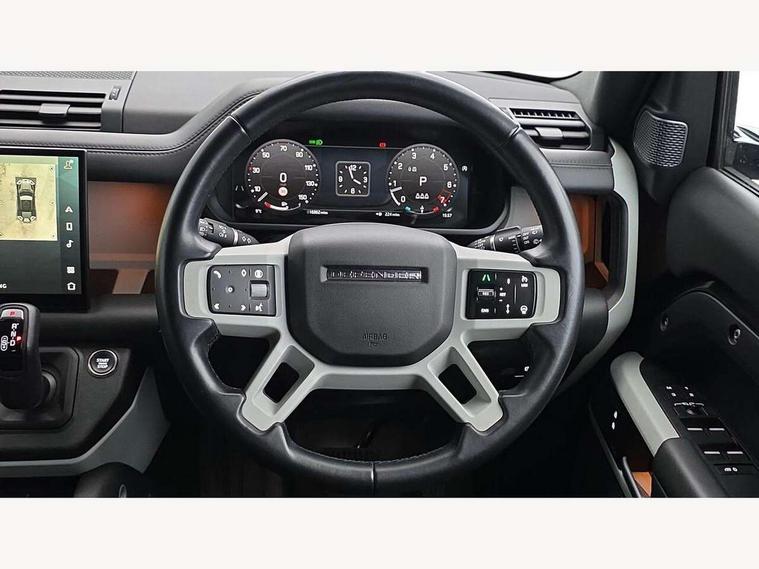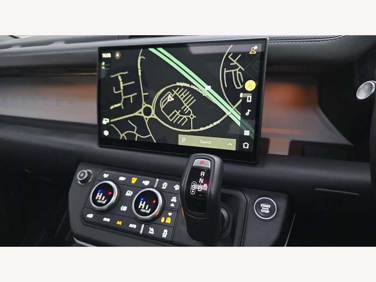 360 degree parking aid, 3D Surround Camera with 360 View, 180 Rear View, Front Traffic Detection, Forward Vehicle Guidance, Tow Hitch Assist and clear sight Ground View, Adaptive cruise control, Android Auto, Apple CarPlay, Assisted tailgate with soft close, Blind spot assist, Bluetooth system, Brake pad wear indicator, Clear exit monitor, Click and go integrated base unit, Connected navigation pro, Driver condition monitor, Electric power assisted steering (EPAS), Interactive driver display, Lane keep assist, Push button start, Rear collision monitor, Rear traffic monitor, Traffic sign recognition with adaptive speed limiter, Trip computer, Wade Sensing, DAB Radio (Digital Audio Broadcasting), Pivi pro connected, Auto dimming interior rear view mirror, Automatic headlight levelling, Automatic headlights, Black exposed rear recovery eyes, Centre high mounted stop light, Electric heated/power fold door mirrors with approach lights and auto dimming driver side, Electric windows with one touch open/close and anti-trap, Follow me home lighting, Front fog lights, Heated rear window with timer, Heated windscreen, LED tail lights, Privacy glass, Puddle lights, Rain sensing windscreen wipers, Rear fog lights, Rear side wing doors, Rear wiper, Trailer stability assist, X-Dynamic badge, 12V power socket in loadspace, 14 way heated and cooled electric adjustable memory front seats with 4 way manual headrests, 3 seat bench in 2nd row, Carpet mats, Configurable cabin lighting, Durable rubber cabin flooring, Durable rubber loadspace flooring, Electric reach + rake adjustable steering column, Extended leather upgrade, Footwell lights, Front passenger isofix child seat attachment, Heated steering wheel, Leather steering wheel, Loadspace cover, Loadspace Hook, Multifunction steering wheel, Overhead stowage for sunglasses, Premium cabin lighting, Rear headrests, Rear ISOFIX, Rear reading lights, Single front passenger seat, Storage glovebox, Sunvisors with illuminated vanity mirrors, Windsor leather and Robustek upholstery, Online pack with data plan - Defender, X-Dynamic exterior pack - Defender, 5 x 3 point seatbelts, ABS, Brake hold function, Cornering brake control (CBC), Customer configurable autolock, Driver and passenger airbags, DSC - Dynamic Stability Control, EBD - Electronic brakeforce distribution, Electric parking brake (EPB), Emergency brake assist, Emergency braking, ESP + traction control, Front airbags with passenger seat occupant detector, HDC - Hill descent control, Hill launch assist, Low traction launch, Power operated child locks, Remote for (e-Call, Optimised assistance call, InControl app, Climate, beep and flash and door), RSC - Roll stability control, Seat belt reminder, TPMS (Tyre pressure monitoring system), Alarm, Immobiliser, Intrusion sensor, Keyless entry, Locking wheel nuts,