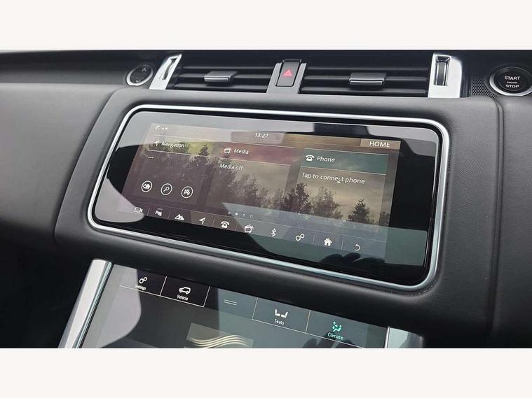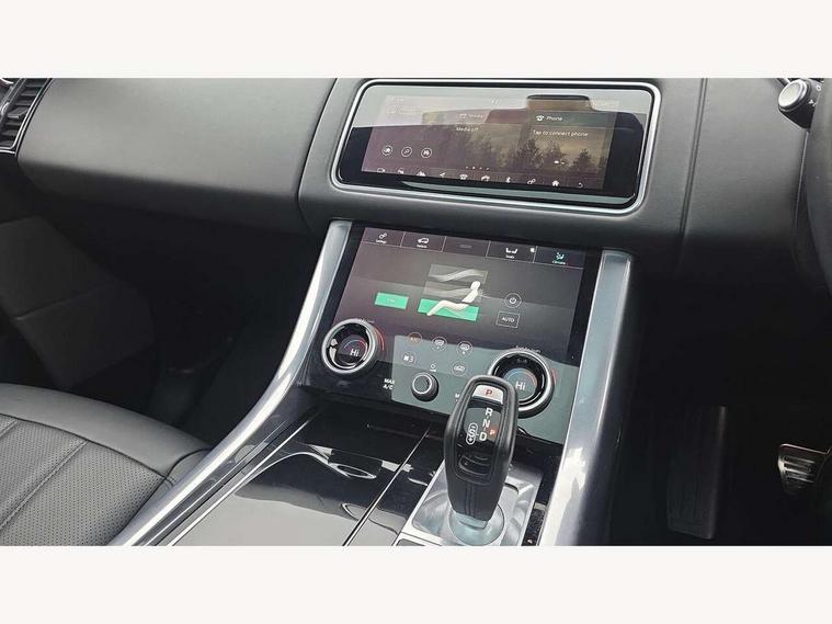 All Terrain Info Centre, Android Auto, Apple car play, Bluetooth connectivity, Electric power assisted steering (EPAS), Incontrol apps in vehicle touchscreen, Interactive Driver display instrument cluster, Mist sensor, Navigation pro system with 10" touch screen, app interface and media storage, Pro services and wifi hotspot, Push button start, Remote premium - Upgraded Incontrol remote app including remote climate control (engine dependent), remote lock + Unlock and remote beep + flash, TFT Virtual Instrument Panel, Touch pro duo system, Trip computer, 7 kW onboard charger, Adaptive dynamics, Electronic active differential with brake torque vectoring, Electronic air suspension, Gradient release control (GRC), Public charging cable, Terrain Response 2 with dynamic program, Twin speed transfer box, Bluetooth audio streaming, DAB Radio (Digital Audio Broadcasting), Incontrol protect - SOS emergency call with automatic collision detection, optimised assistance call and Incontrol remote app essential, USB/aux input socket, Acoustic front and toughened rear side glass, Acoustic laminated front windows, Adaptive brake lights, Auto dimming interior rear view mirror, Automatic headlights, Body coloured side sills and bumpers corners, Centre high mounted stop light, Electric windows with one touch open/close and anti trap, Electrical towing preparation, Engine cover, Follow me home lighting, Front and rear recovery eyes, Front fog lights, Headlight power wash, Heated rear window, Heated windscreen includes heated washer jets, Illuminated metal treadplates with brand name script, LED rear lamps, Privacy glass (Tinted glass rear of B pillar), Rain sensing windscreen wipers, Rear fog lights, Rear side wing doors, Rear wash/wipe, Remote window closing, Side repeater indicators in mirror, Sport Badge in black, Standard bonnet, Trailer stability assist, Twin bright tailpipes, 2 way active front head restraints, 2 way rear head restraints, 3 seat bench in 2nd row, Auto air recirculation, Bright metal foot pedals, Centre console with armrest, Climate control memory, Customer configurable single point entry, Driver's footrest, Extended leather upgrade includes door top rolls and leather instrument panel mid section, Front and rear cupholders, Front door storage space, Front map lights, Front seat back map pockets, Front stowage pocket, Front/rear passenger grab handles, Heated steering wheel, Isofix child seat preparation, Leather steering wheel with Atlas inserts, Loadspace light, Loadspace mounting provisions, Lockable glovebox, Multifunction steering wheel, Perforated Windsor leather upholstery, Pollen filter, Power socket, Reach/rake electric adjustable steering column + entry/exit tilt away, Rear centre armrest, Rear ISOFIX, Roller blind loadspace cover, Satin chrome gearshift paddles, Single front passenger seat, Sports pedals, Three 12V accessory power outlets, Black Exterior pack - Range Rover Sport Dynamic, Smartphone pack - Range Rover Sport, 3 point seatbelts on all seats, Anti-lock braking system (ABS), Brake pre-fill technology, Cornering brake control (CBC), Curtain airbags, Customer configurable autolock, DSC - Dynamic Stability Control, Dual stage driver/passenger airbags, EBD - Electronic brakeforce distribution, Electric parking brake, Electronic traction control, Emergency braking includes city, urban AEB and pedestrian, Front seatbelt pretensioners, Gradient acceleration control, Height adjustable front seatbelts, Hill descent control, Hill launch assist, Low traction launch, Passenger seat occupant detector with front airbags, Power operated child locks, Roll stability control, Seatbelt warning, TPMS (Tyre pressure monitoring system), Immobiliser, Intrusion sensor, Keyless entry, Locking wheel nuts, Perimetric and volumetric anti theft alarm, Remote locking, Grand black veneer, 21" 9 spoke gloss black alloy wheels - style 9001, Tyre repair system,