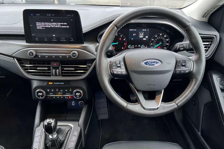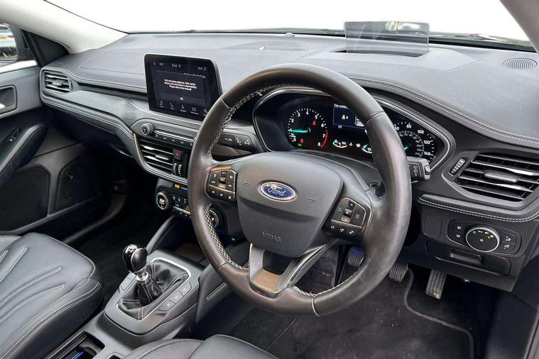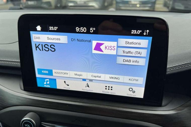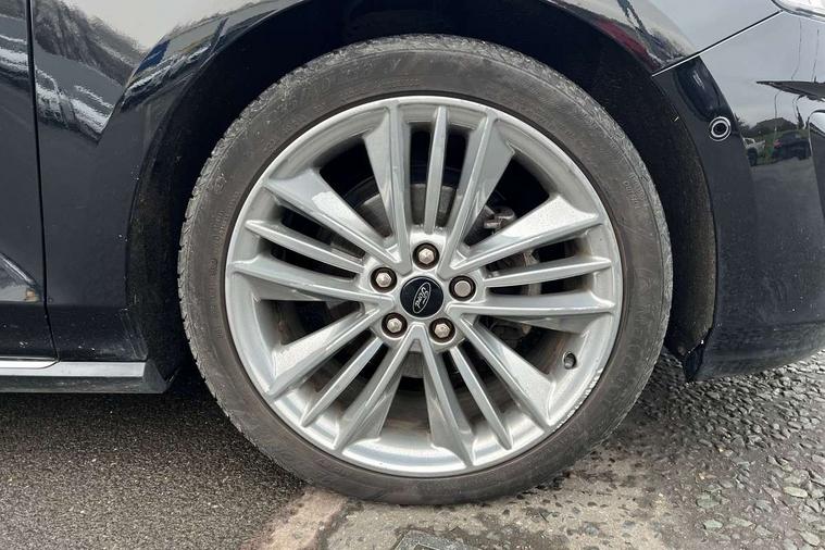 4" TFT coloured cluster screen, Active park assist system, Bluetooth system, Digital clock, Easy fuel capless refuelling system, Eco mode, Ford pass connect, Ford SYNC 3 nav system with DAB radio, 8" colour touch screen, voice control, app link, Apple car play/Android auto and 4.2" TFT coloured cluster, Front and rear parking sensors, Head up Display, Lane keeping aid with lane departure warning, PAS, Rear wide view camera, Trip computer, 2 USB ports, Aux input, B&O Audio system with 360 degree sound, 10 speakers, 675 watts of total amplifier power and digital sound processor, 'Quickclear' heated windscreen/heated washer jets, Auto dimming rear view mirror, Auto headlamps (on/off), Automatic rain sensing wipers, Body colour large rear spoiler, Body coloured bumpers, Body coloured door handles, Body coloured electrically operated and heated door mirrors with side indicators, Door edge protectors, Electrically operated front and rear windows with one touch opening and closing, Front variable intermittent wipers with electric wash, Heated rear window, LED daytime running lamp, LED front fog lamps with cornering function, LED rear lamps, Polished twin tailpipe, Power folding door mirrors with puddle lights, Rear privacy glass, Tailgate wash/wipe, Vignale front grille and body styling, 3 spoke leather trimmed steering wheel with integrated audio controls, 6 way power adjustable driver seat, 60/40 split back and cushion rear seats with 2 height adjustable headrests, Alloy finish pedals, Ambient LED multi colour interior lighting, Centre console with sliding front armrest, Dual zone electronic air temperature control, Front/rear floor mats, Heated front seats, Heated steering wheel, Height adjustable front headrests, Isofix child seat preparation, Leather gear knob, Leather upholstery, Load through ski hatch, Manual passenger seat height and lumbar adjust, Reach + rake adjustable steering column, Rear centre headrest, ABS+Electronic Brake force Distribution, Auto hold function, Driver airbag, Electronic parking brake, Electronic stability control, Front and rear seatbelt reminder, Front inertia reel height adjustable seatbelts with pre-tensioners, Front passenger airbag, Front side airbags, Hill start assist, Passenger airbag deactivate switch, Post collision braking, Pre collision assist with autonomous emergency braking and pedestrian/cyclist detection, Side curtain airbags, Three rear inertia reel lap/diagonal seatbelts, Tyre pressure monitoring system, Ford keyfree system with Keyless entry and keyless start, MyKey system, Remote central locking & engine immobiliser, Thatcham category 1 alarm, 18" 5x3 spoke liquid aluminium alloy wheels, Mini steel spare wheel,