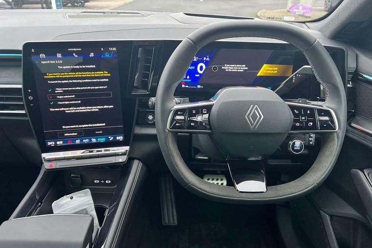 12" openR multimedia screen, 12.3" driver information display cluster, 3D 360 degree surround camera, 9.3" head-up display, Adaptive cruise control with speed limiter, lane centering and hands-off detection, Apple car play and Android auto, Blind spot warning, Bluetooth, Configurable dashboard display, Digital owner's manual, Driver attention alert with drowsiness warning, E-call, Eco mode, Electric power boot with handsfree opening, Emergency lane keep assist including overtaking and oncoming traffic, Engine start button, Exterior temperature display, Front cross traffic camera, Front, rear and side parking sensors, Gear selection indicator, Google built-in: maps, assistant and playstore, Hands-free parking, Intelligent speed assist with speed sign recognition and overspeed warning, Internet access, Lane change warning, Lane departure warning, Multisense driving modes (eco, comfort, sport and normal), OEM internet services, On board diagnostics, PAS, Pedestrian alert, Real time traffic information, Rear cross traffic alert, Rear cross traffic camera, Service interval indicator, Start/stop system, Tailgate, Travel data recorder, Trip computer, Voice control for audio, climate, telephone, navigation, Wi-Fi hotspot, Wireless phone charger, 2 front and 2 rear USB-C ports, DAB radio, Harman Kardon premium audio system with 12 speakers, Steering wheel audio controls, Auto dimming door mirrors, Auto dimming rear view mirror, Automatic headlights and wipers, Automatic high / low beam, Body coloured bumpers, Cornering headlights, Door mirror LED indicator lights, Door sill protector, Electric adjustable door mirrors, Electric folding, heated door mirrors with memory, Electric one-touch power front and rear windows, esprit Alpine detailing, Flush roof bars, Frameless rear view mirror with rain and light sensor, Front fog lights, Front wiper de-icer, Heated rear window, LED 3rd brake light, LED adaptive vision, LED daytime running lights, LED rear lights with moirage effect, Matrix LED vision headlights, Panoramic sunroof, Privacy glass, Rear side wing doors, Shark fin antenna, Tinted rear windows, Trailer Stability Programme, Underbody protection, Variable intermittent front wash/wipe, Variable intermittent rear wash/wipe, 12v power outlet in cargo area, 12V power outlets front and rear, 3 folding rear headrests, 6 way driver mechanical seat adjustment with 2 way lumbar, Air purifier, Cabin air filter, Cigarette lighter, Cloth/alcantara upholstery, Cruise control operation in steering wheel, Dual zone automatic climate control, Esprit Alpine synthetic leather TEP steering wheel, False floor in boot, Front and rear head restraints, Front floor lighting, Heated front seats, Heated steering wheel, Interior ambient lighting, ISOFIX child seat fixing points on rear outermost seats, Luggage area divider, Luggage compartment cover, Luggage compartment light, Manually adjustable steering column, Multifunction steering wheel, Reach and rake adjustable steering column, Rear armrest, Regenerative braking paddles, Rubber floor mats, Seat pockets on rear of front seats, Single front passenger seat, Sliding 3 seat rear bench, Sliding centre console handrest, Tie down hooks, Timed interior light, 3 point seatbelts on all rear seats, ABS, Automatic emergency braking system (urban, city pedestrian and cyclist), Curtain airbags, Distance warning alert, Driver airbag, Driver knee airbag, Electronic parking brake with auto hold, Emergency brake assist with intersection function, ESP, Fire protection system, Front & rear active emergency brake assist, Front side airbags, Height adjustable front seatbelts, Height adjustable rear seatbelts, Hill start assist, Manual passenger airbag deactivation function, Manual rear child locks, Passenger airbag, Passenger knee airbag, Pedestrian airbag system, Seatbelt load limiter, Seatbelt pretensioners, Seatbelt reminder, Tyre pressure monitor, Alarm, Central locking, Drive away door locking, Hands free key card with keyless entry, Immobiliser, Remote central locking, Remote vehicle locator, 20" Daytona alloy wheels, Tyre inflation kit,