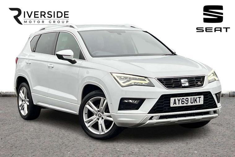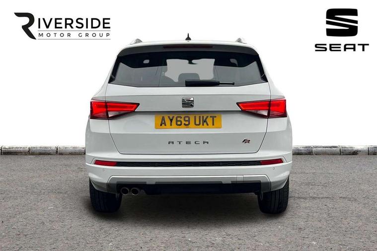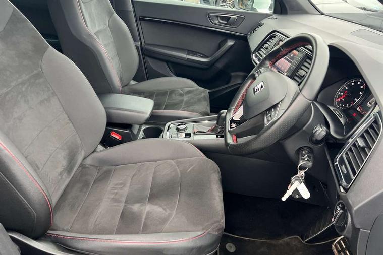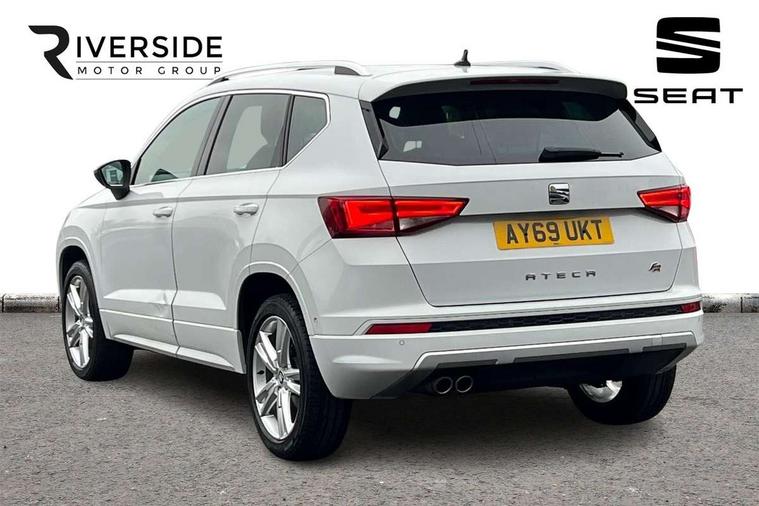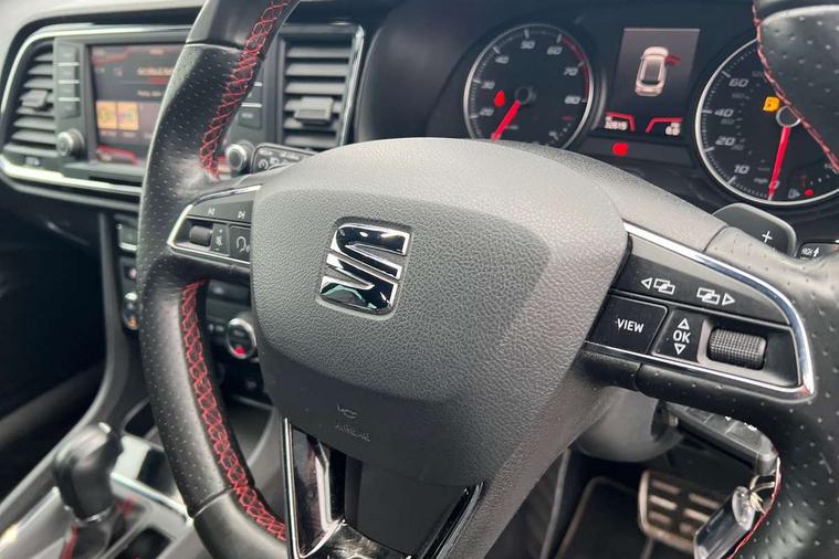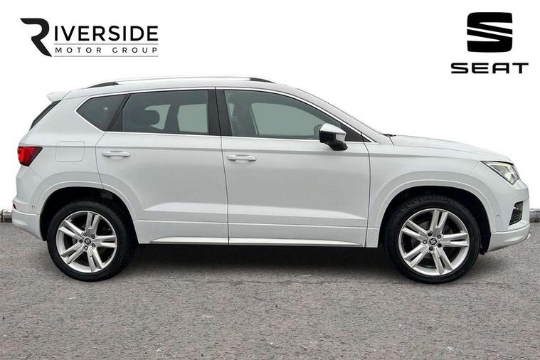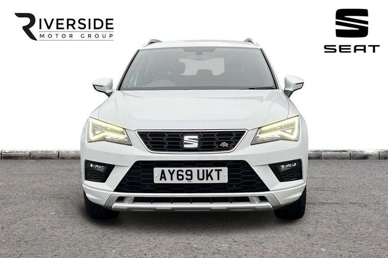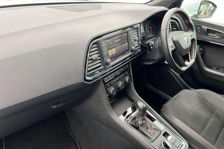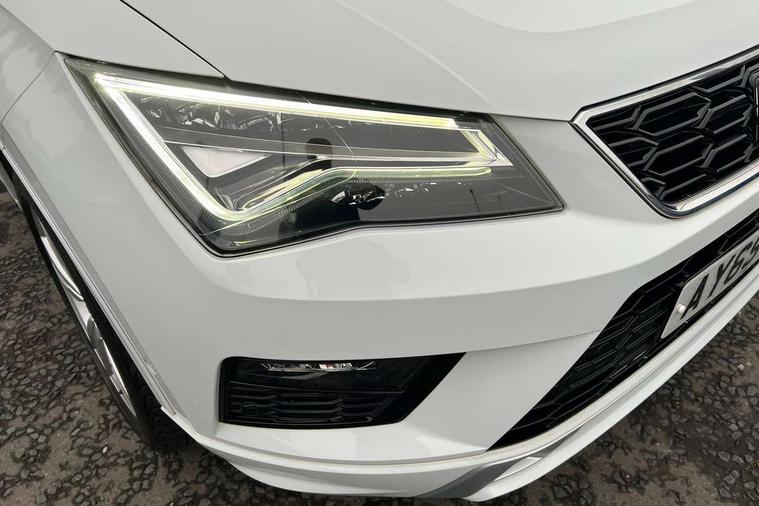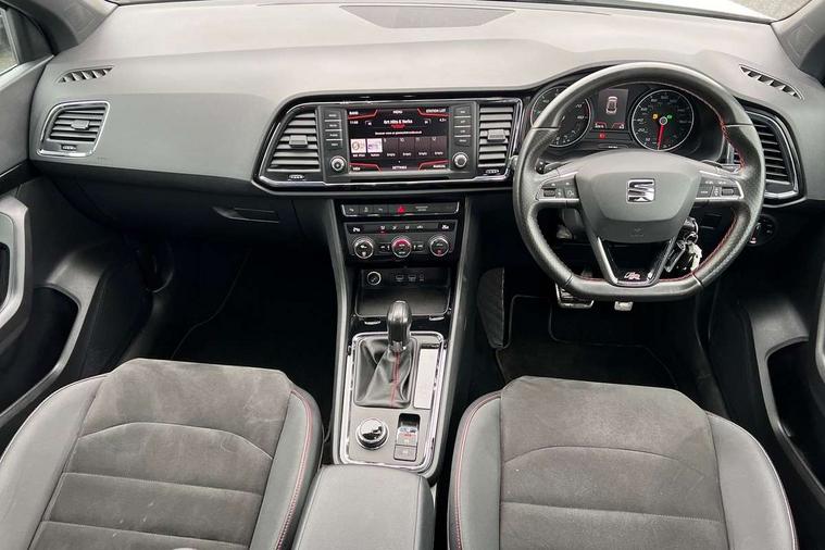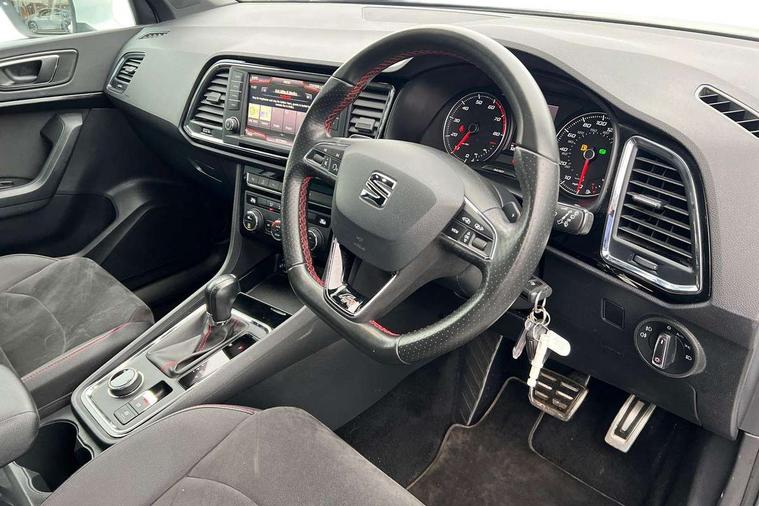Chrome interior detailing, Convenience pack - Ateca, Navigation system pack - Ateca, 18" Performance alloy wheels, 2 folding remote keys with window open/close function, Immobiliser, Locking wheel bolts, Remote central locking, Volumetric alarm with back up horn, 2 USB ports, 8 speakers, AM/FM radio, DAB digital audio broadcast, High resolution colour driver display, SD card slot, SEAT USB media cable, Steering wheel mounted audio/phone controls, 3x3 point rear seatbelts, ABS, Active front headrests, Automatic post collision braking, Driver/Front Passenger airbags, Drivers knee airbag, Electronic parking brake with auto hold, Electronic stability control, ESP+EBA, Front and rear seatbelt reminder, Front passenger airbag deactivation, Front side airbags, Hill hold control, Tiredness recognition system, Traction control, Twin curtain airbags, Tyre pressure monitoring system, Aluminium front door sills, Armrest with air outlet in rear, Auto dimming rear view mirror, Auto headlights with automatic coming and leaving home function, Body colour bumpers, Body colour door handles, Body colour door mirrors, Body coloured wheel arches, Chrome front grille frame, Chrome roof rails, Chrome side window trim, Dark tinted rear windows, Door mirrors with welcome light silhouette, Electric adjustable/heated/folding door mirrors, Front and rear electric windows, Front grille in glossy black, Full LED headlights, Illuminated aluminium front door sill with trim logo, LED daytime running lights, LED front fog lights, Rear fog lights, Rear LED tail lights, Rear spoiler, Rear wash/wipe, Twin chromed exhaust pipes, Visible dual exhaust pipes, 12v socket in front, 4 Lashing eyes in boot, 60/40 split folding rear seat, Adjustable front armrest with storage compartment, Aluminium pedals, Ambient spot lighting and front footwell illumination, Black roof lining, Driver and passenger seats, height-adjustable, with lumbar adjustment and height-adjustable headrests, Driver and passenger sun visor, covered and illuminated mirror, driver sun visor with card holder, Dual zone climate control, Frameless interior mirror, Front courtesy lights, Front cupholders, Front reading lights, Front seat back storage pockets, Gear shift indicator, Illuminated boot, Illuminated glovebox, Instrument lighting with brightness control, ISOFIX points in outer rear seats with top tether anchorage points, Leather steering wheel and gear knob, Microsuede upholstery with front sports seats, Multicoloured ambient lighting with LED interior illumination, Rear armrest and easy back seat release mechanism from boot, Rear reading lights, Steering wheel gearshift paddles, Storage box under drivers seat, 'Lights On' Reminder warning buzzer, 3.5" driver's display, 8.0" colour touchscreen with proximity sensor, Cruise control, Digital clock, Driver alert system, Front assist city emergency braking and pedestrian protection, Full Link Smartphone Integration with Mirror Link, Apple Car Play, Google Android Auto, Low fuel warning light, Multi function display, Outside temperature gauge, Remote fuel flap release, RPM counter, Satellite navigation system, SEAT drive profile with driving experience button, SEAT logo boot release, Self parking functionality (includes front and rear parking sensors), Trip computer, Voice control system, Comfort suspension, XDS electronic differential lock,