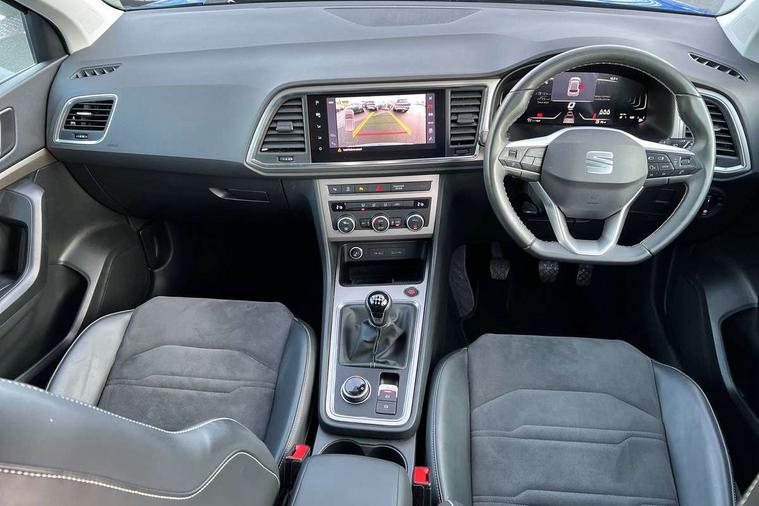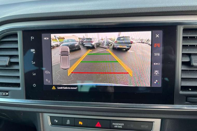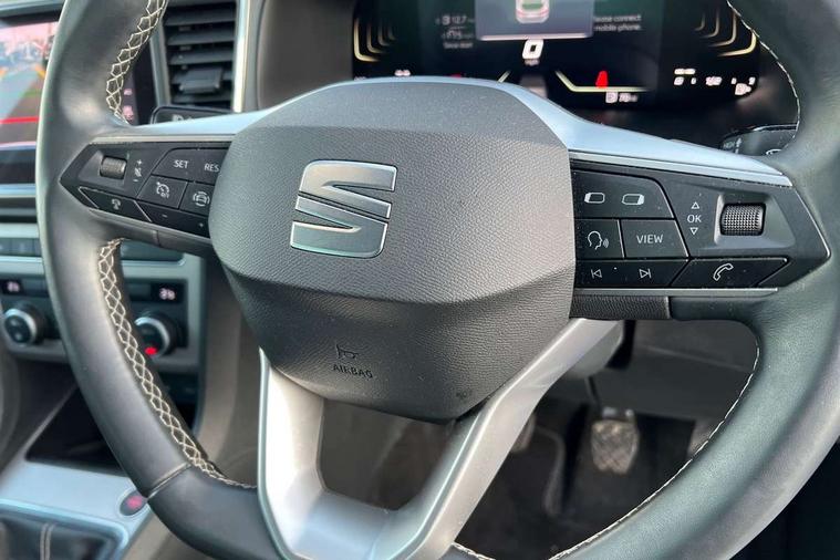 8" Digital cockpit, Colour multi-function on board computer display, E-call, Outside temperature gauge, Progressive power assisted steering, Rear view camera, SEAT drive profile with driving experience button - Normal, Sport, Eco and Individual mode, steering and throttle response, Self parking functionality (includes front and rear parking sensors), Start/stop system, Tailgate, Trip computer, Wireless full link smartphone integration, Wireless phone charger, Steering wheel mounted audio/phone controls, Black simulated exhaust pipes, Black wheel arch surrounds, Body colour bumpers, Chrome front grille frame, Chrome roof rails, Chrome side window trim, Dark tinted rear windows, Daytime running lights, Door mirrors with welcome light silhouette, Dynamic headlight range control with self adjusting whilst driving, Electric adjustable/heated/folding door mirrors, Front and rear electric windows, Front grille hot stamping, Full LED headlamps with lens and LED front fog lamps with cornering function, Illuminated aluminium front door sill, LED rear tail lights with dynamic indicators, Rear fog lights, Rear side wing doors, Rear wash/wipe, Reflex silver side mouldings, Variable front intermittent wipers, 12V socket in front, 3 seat bench in 2nd row, 60/40 split folding rear seat, Drawer under right front seat, Dual zone climate control, Front and rear head restraints, Front centre armrest, Front seat back storage pockets, Height adjustable driver and passenger seat with lumbar adjustment, ISOFIX points in outer rear seats with top tether anchorage points, Leather steering wheel and gear knob, Microsuede upholstery with front comfort seats, Rear armrest and easy back seat release mechanism from boot, Single front passenger seat, Convenience pack - Ateca, Interior lighting pack - Ateca, Navigation system pack with DAB - Ateca, Safe and driving pack with lane assist - Ateca, 3x3 point rear seatbelts, ABS, Traction control system (TCS), Electronic stability control (ESC) and Electronic differential lock system (XDS), Airbags - Driver and front passenger airbag with deactivation, front side, two curtain and driver's knee airbags, Electric parking brake with auto hold function, Front and rear seatbelt reminder, Hill hold control, Manual rear child locks, Single tone horn, Tiredness recognition system, Traction control, Tyre pressure monitoring system, Alarm, Keyless entry, Locking wheel bolts, Remote central locking, Chrome interior detailing, 18" Brillaint silver alloy wheels,
