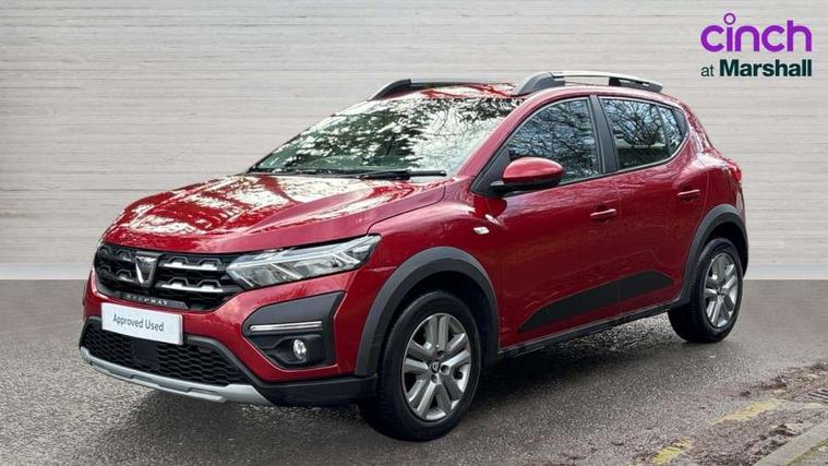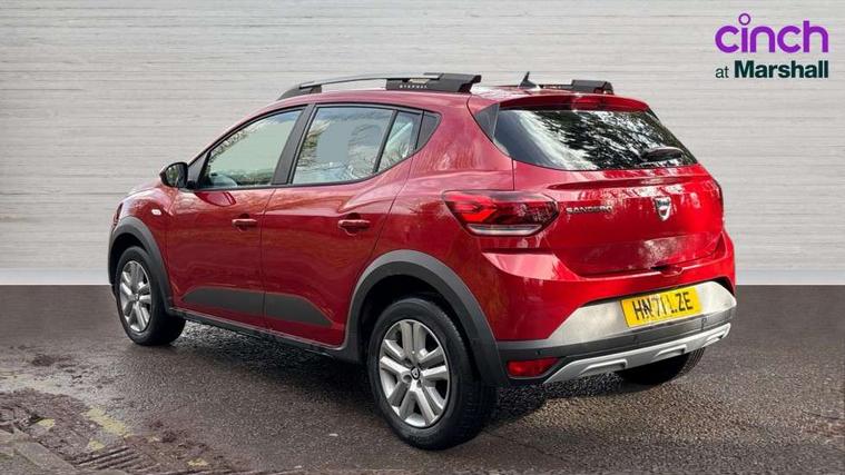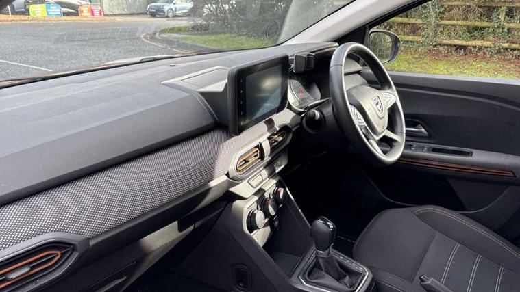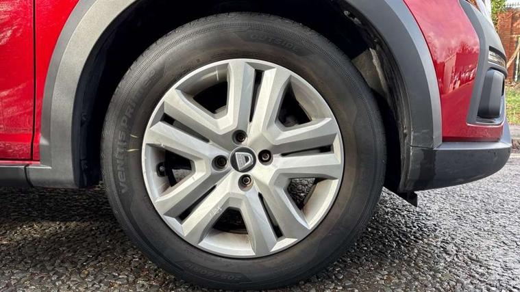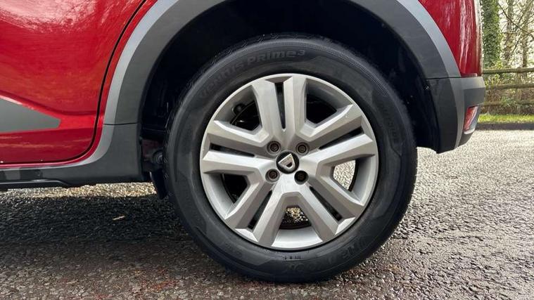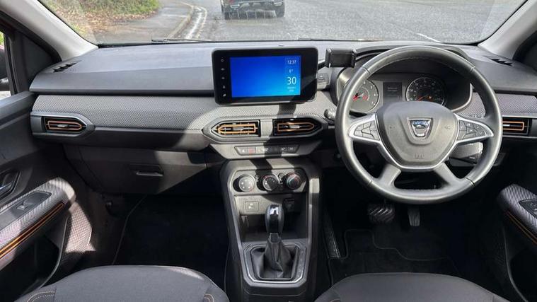 3.5" TFT instrument panel with on-board computer, Cruise control with speed limiter, eCall emergency call system, Eco mode, Electric power assisted steering, Rear parking sensors, Rev counter, Reversing camera, Stop/start system, 8" Media display - DAB radio, smartphone replication, bluetooth, 4 speakers, Apple CarPlay and Android Auto, USB connection for data transfer and charging, USB socket, 3 speed windscreen wipers, Auto lighting, Automatic wipers, Body colour door handles, Body colour door mirrors, Body coloured bumpers, Chrome longitudinal roof bars, Chrome radiator grille, Electrically adjustable and heated door mirrors, Front fog lights, Heated rear window, High level third brake light, LED automatic daytime running lights, LED Y-shape Dacia signature lighting, Modular roof bars, One touch electric front windows, Rear electric windows, Rear wash/wipe, Stepway inscription on radiator grille and roof bars, Tinted windows, 1/3 to 2/3 split folding rear seats, 12 volt front socket, 12 volt rear socket, 3 height adjustable rear headrests, Driver + passenger vanity mirrors, Fabric upholstery, Fixed smartphone holder on dashboard, Front armrest, Height adjustable driver seat, Height adjustable front headrests, Height/depth adjustable steering wheel, Isofix points for child seats in both outer rear seats, Manual air conditioning, Satin chrome interior door handles, Satin Chrome/Copper orange air vents, Soft feel steering wheel, Steering wheel controls, 3x3 point rear seatbelts, ABS and Emergency brake assist, Automatic emergency braking system, Child locks on rear doors, Door open warning, Driver airbag, ESC (Electronic Stability Control), ESP + Hill Start Assist, Front curtain airbags, Front seatbelt pretensioners, Front side airbags, Height adjustable front seatbelts, Passenger airbag, Seatbelt reminder for driver and front passenger, Tyre pressure monitor, Automatic central locking, Immobiliser, Keyless entry, Remote central locking, Decopart on instrument panel and door with textile, 16" Flex wheels with full wheel cap,