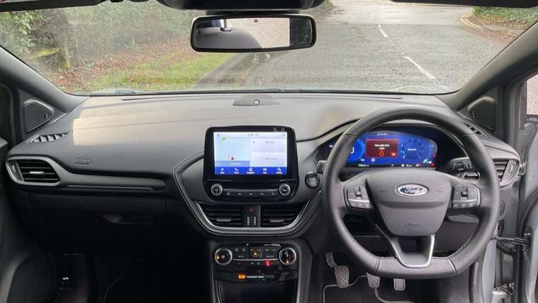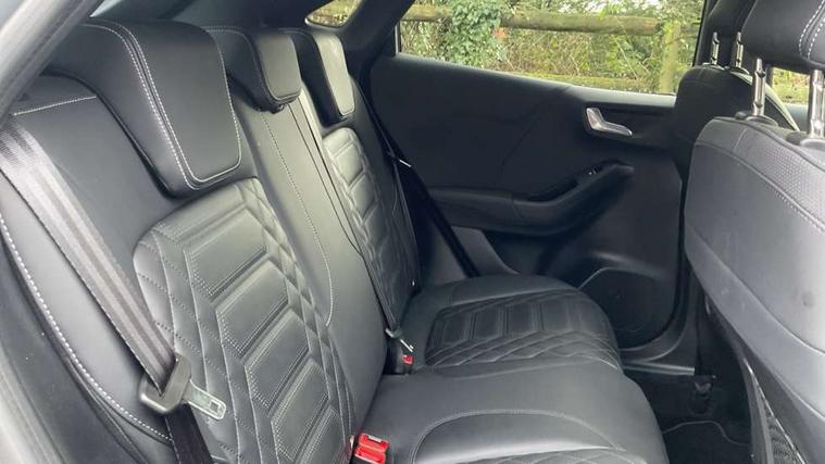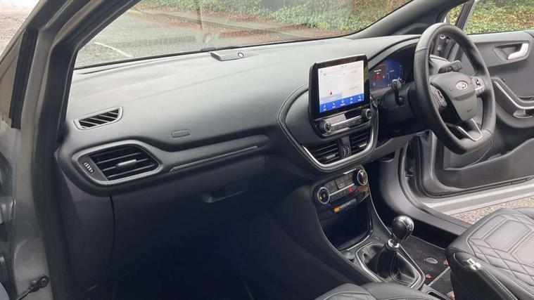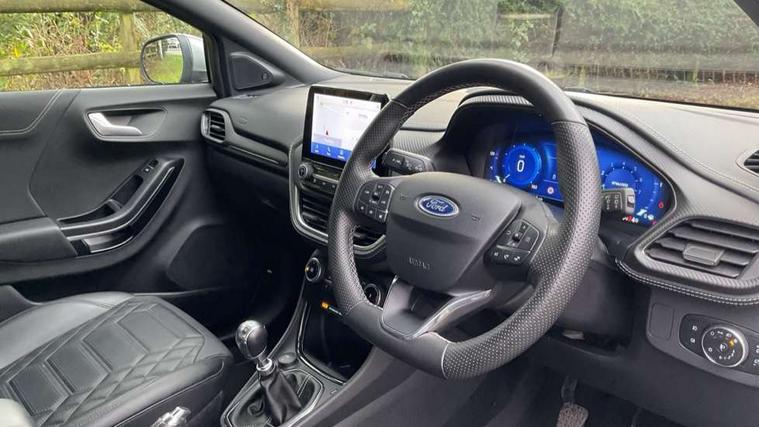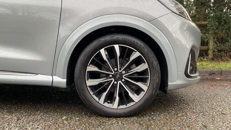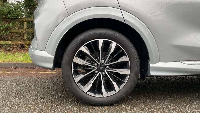 Driver impairment monitor, Emergency call service, Ford easy fuel, Front and rear parking sensors, Full digital 12.3" instrument cluster, Lane keeping aid with lane departure warning, Power assist steering, Selectable drive modes(Normal, sport, Eco, trail, slippery), Speed sign recognition, Sport suspension, Automatic headlights with auto high beam, Automatic rain sensing wipers, Bodyside chrome styling, Fixed LED signature headlamps, Front fog lamps, Gloss black with chrome elements on front and rear bumpers, High chrome waistline, LED daytime running lights, LED rear lamps, Power foldable heated door mirrors with puddle lamps and puma logo protection, Privacy glass to side rear windows and tailgate glass, Quickclear heated windscreen, Rear side wing doors, Rear wiper, Third brake light, Vignale body styling kit with unique grille and large body colour rear spoiler, 3 seat bench in 2nd row, Centre console with armrest and stowage, Ford megabox extended bootspace, Front and rear floor mats, Front and rear head restraints, Manual 4 way driver seat adjust with lumbar adjustment and massage function, Manual 4 way passenger seat adjust with lumbar adjustment and massage function, Premium sensico leather upholstery with metal grey stitching, Premium sensico perforated flat bottomed steering with metal grey stitching, Premium sensico wrapped instrument cluster, Single front passenger seat, Wireless charging pad with electronic air temperature control (EATC), B&O Premium Audio system + Ford SYNC 3 navigation pack - Puma, Winter pack - Puma, 3 rear seatbelts, Child safety lock, Electronic stability control (ESC) and hill start assist, Pedestrian/cyclist detection & post-collision braking, Pre collision assist system, Tyre pressure monitoring system (TPMS), Keyless entry and power start button, Thatcham alarm, Carbon look interior deco spears,