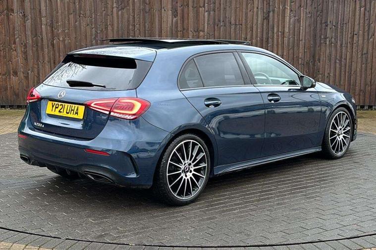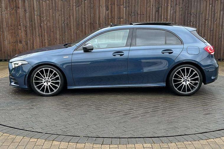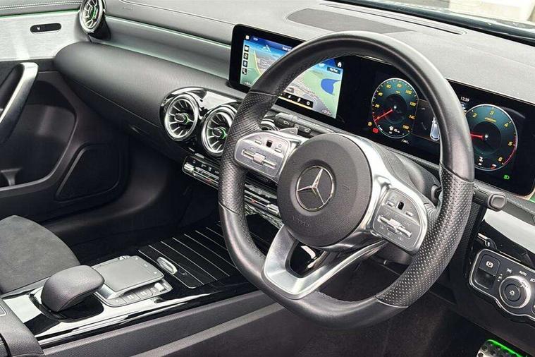 10.25" Digital instrument cluster display screen, 10.25" media display, 180 degree rear view camera with parking guidelines, Active parking assist with visual and audible warning of detected obstacles, Attention assist, Brake pad wear indicator warning light, Car wash mode, Cruise control + speed limiter, Direct steering, Dual bluetooth interfaces, DYNAMIC SELECT with a choice of driving modes (ECO, Comfort, Sport and Individual), ECO start/stop function, Fluid level warning indicator for fuel, oil, coolant and washer fluid, Hard-disk navigation, Hey Mercedes Voice activation, Lamp failure indicator, Mercedes me connect including emergency call system, accident recovery, breakdown management and maintenance, Mercedes me remote services, Outside temperature gauge, Owners manual in English, Pre-installation for car sharing, Preinstallation for Mercedes Benz link, Service indicator (ASSYST), Smartphone integration with Apple CarPlay and Android auto, Speed limit assist, Speed sensitive power steering, Trip computer, Ultrasonic sensors positioned in the front and rear bumpers, Wireless charging, Lowered comfort suspension, Rear axle torsion beam, 2 USB ports (type C) in rear stowage compartment and one in front of center console, 6 speakers, MBUX multimedia system with DAB digital radio and touchpad including satellite navigation, Mercedes-Benz sound system - 100W, 4 Electric Front and Rear windows, Adaptive brake lights, Black chrome plated tailpipe trim, Body colour bumpers, Body colour door handles, Body colour side skirt, Diamond radiator grille with pins in black and black louvre, Edition badging on the front wings, Electric adjustable and heated door mirrors with integrated LED side indicators, Headlamp assist automatic headlamp activation, Heated glass rear windscreen + timer control, LED high performance headlamps with integrated LED daytime running lights, LED tail lamp, LED third brake light, Panoramic sliding sunroof, Privacy glass, Radio aerial, Rain sensing windscreen wipers with two sensitivity settings, Rear fog lights, Rear wiper, 3 Spoke flat bottom leather multi function steering wheel with perforated leather in grip area, 40:20:40 split folding rear seats, Artico man-made leather/ Dinamica microfiber upholstery, Auto Mercedes-Benz child seat recognition sensor, Black air vents with surround in silver chrome, Black roof lining, Brushed stainless steel sports pedals with rubber studs, Floor mats with black top stitching and embroidered edition logo and piping in light grey, Floor mats with stitched edging and AMG lettering, Front centre armrest with storage compartment, Front door sills with Mercedes Benz lettering, Front seat backs luggage nets, Front seat cushion length adjustment, Galvanished gear shift paddles on steering wheel, Heated front seats, Height/reach adjustable steering column, Interior lighting - 64 colour Ambient lighting, Interior mirror with reading lamps in black and frameless, ISOFIX and top tether child seat fixing points in two outer rear seats, Rear head restraints, Seat occupancy sensor for front passenger seat, Sports seats with integrated headrests, Stowage compartment in centre console with retractable cover, Sunvisors with illuminated vanity mirrors, Touchpad on center console, Twin front cupholders, Two zone thermotronic luxury automatic climate control, Light and sight pack - A Class, Mirror package - A Class, Night pack - A Class Exclusive Edition, Seat comfort pack - A Class, 3 rear 3 point seatbelts, ABS with Brake Assist, Active bonnet, Active brake assist includes forward collision warning system with autonomous braking, Adaptive brake assist with hold function and hill start assist, Black seatbelts, Bonnet with power domes, Childproof locks manually operated for rear doors and electrically operated for rear power windows, Crash responsive emergency lighting, Driver and passenger head and side airbags, Drivers knee airbag, Dual stage driver/passenger airbags, Electronic parking brake, ESP curve dynamic assist, ESP with ASR, Front and rear seatbelt reminder, Tyre pressure monitoring system, Warning triangle and first aid kit, Window airbags, Alarm system/interior protection/immobiliser, Keyless Go, Remote central locking and crash sensor with emergency opening function, Urban guard vehicle protection system with immobiliser and interior protection, Light longitudinal grain aluminium trim painted, 19" AMG multi spoke light alloy wheels painted in titanium grey with high sheen finish, Summer tyres, Tirefit sealant kit,