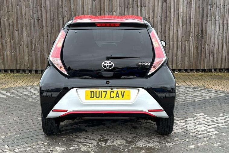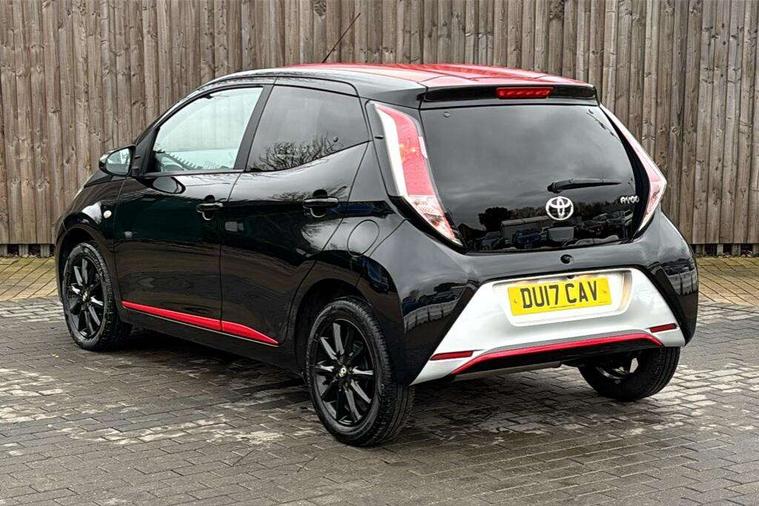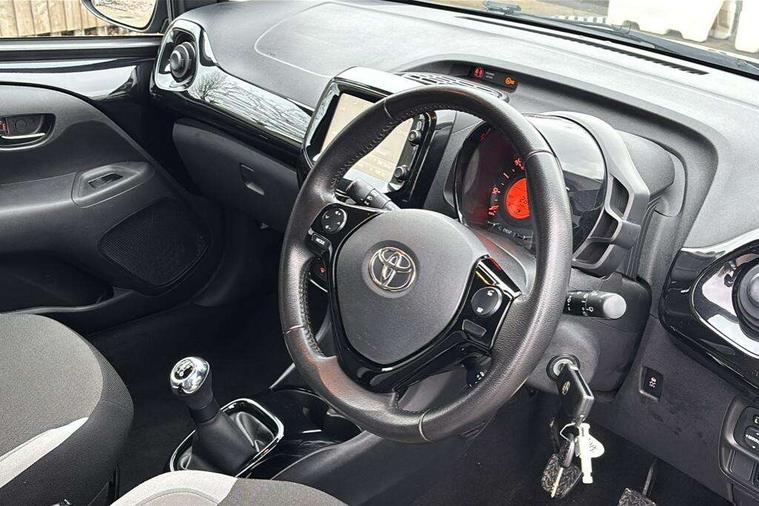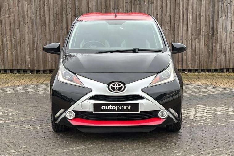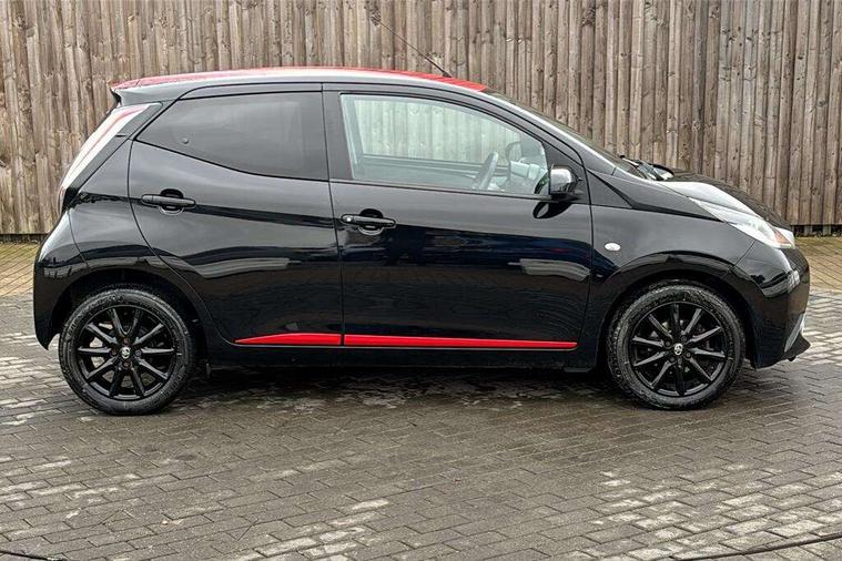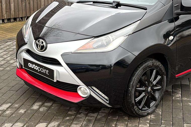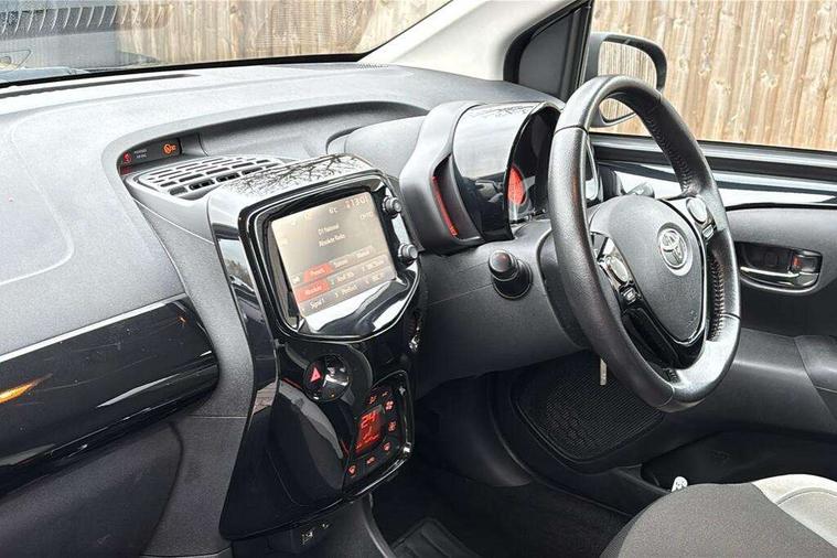 7" touch screen, Bluetooth system, Digital clock, Electric power steering, Fuel indicator with low level warning, Lights on warning, MirrorLink, Rear view camera, Speed limiter, Tachometer, Vehicle Stability Control (VSC), 4 speakers, Auxiliary input socket, Bluetooth audio streaming, DAB Digital radio, Multimedia System, Stereo radio, USB connection, 2 speed wipers/variable intermittent/mist function, Automatic headlights, Body colour bumpers, Body colour door handles, Body colour door mirrors, Electric adjustable door mirrors, Electric front windows, Front fog lights, Green tinted glass, Headlamp levelling, Heated door mirrors, Heated rear windscreen, LED daytime running lights, Privacy glass, Rear spoiler, Rear window demister, Rear wiper, Red front bumper accent, Red roof decal, Red side sills, Roof mounted aerial, 12V Accessory socket, 3 spoke leather steering wheel, 50/50 split folding rear seat, Air recirculation system, Auto air conditioning, Body colour instrument panel, Centre console storage, Chrome insert to gearknob, Chrome interior door handles, Driver and passenger sunvisors, Driver's seat height adjuster, Driver/passenger seat recline/slide adjust, Driver/passenger vanity mirrors with covers, Front and rear door pockets, Front cupholder, Front map reading lights, Front sports seats, Gleam cloth upholstery, Glovebox, Height adjustable front head restraints, Isofix system on outer rear seats, Leather gear knob, Pollen filter, Rear cupholders, Rear headrests, Steering wheel mounted radio/phone controls, Stepless tilt adjustable steering column, Storage bins on all doors, Tonneau cover, Outburst pack red pop - Aygo, ABS, Driver and passenger airbags, ESP, Fasten seatbelt reminder, Front side airbags, Height adjustable front seatbelts with pre-tensioners and load limiters, Hill start assist, Passenger airbag deactivate switch, Rear child proof door locks, Side curtain airbags, Tyre pressure warning, Engine immobiliser, Lockable fuel cap, Remote central locking, Body colour dashboard, Gloss black air vent surround, Gloss black centre console, Tyre repair kit,