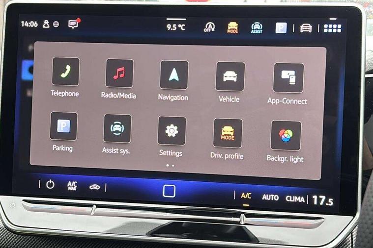 Activated carbon canister, Adaptive cruise control (ACC), Advanced driver attention and drowsiness monitor, Dynamic road sign display, Dynamic steering, E-Sim card for online connectivity, eCall emergency call system, Multi-color Digital cockpit pro, selection of different info profile possible, Multifunction front facing camera for distance control, Navigation system, Oncoming vehicle braking when turning including swerve support, Preparation for light assist system, Speed limiter, Speedo, rev counter, electronic odometer, trip, service interval display, exterior temperature and fuel gauge, Traffic jam assist, Voice enhancer and voice control, Warning signal and warning light for front and rear seatbelts not fastened, We connect plus preparation, We connect preparation, Wireless app connect, Diesel particulate filter, Hybrid propulsion system, Start-stop system with battery regeneration (recuperation - energy recovery during braking), XDS electronic differential lock for improved traction and handling, 2 USB C ports in front, 2 USB charging sockets on the centre console in the rear charging capacity upto 45W, Comfort telephony + wireless charging, without wireless aerial connection, Digital radio reception (DAB), Diversity antenna for FM reception, Gaming platform via car app, Infotainment system with 12.9" display, Mobile phone interface with inductive charging feature, 3rd brake light, Auto headlights, Automatic headlamp activation with Coming home and Leaving home feature, Body colored bumpers in R-Line style, Body colour door handles, Exterior ambient lighting with illuminated door handles, Exterior mirrors convex on the left and aspherical on the right, Front and rear electric windows, Heat insulating windshield made of laminated glass, LED daytime running lights, Rear exhaust tailpipe, Rear fog light on one side and reversing lights on both sides, Rear side wing doors, Rear windscreen washer and wiper with interval delay, Remote electrically foldable door mirrors, puddle lights and reverse activated passenger's door mirror, Welcome light with surround lighting, 12V socket in front centre console, 12V socket in luggage compartment, 3 rear head restraints, 3 seat bench in 2nd row, Ambient lighting with 30 colour including LED light unit in front footwell with selectable light colour, Brushed stainless steel pedals, Carpet mats, front and rear, Chrome plated radiator grille inserts, air vent surrounds and light switch surrounds, Front centre armrest, Integrated front head restraints, ISOFIX anchors for child seats on outer rear bench seats and on front passanger seat compatible for i-Size, Luggage compartment lighting, Plastic gear knob, Premium sports seats in front, Rear cupholder and loadthough, Single front passenger seat, Soul black instrument panel, Split folding backrest with centre armrest and unsplit rear seat bench, Storm grey roof lining, Sun visors with illuminated vanity mirrors, 3 point height adj front seatbelts + pretensioners, 3 rear three point seatbelts, ABS, Autonomous emergency braking front assist with pedestrian and cyclist monitoring, Child locks on rear doors, Driver and front passenger airbag with front passenger airbag deactivation, Electronic parking brake with auto hold, ESC (Electronic Stability Control), Extended pedestrian protection measures, Hill start assist, Rear disc brakes, Two tone horn, Tyre pressure loss indicator, Volkswagen roadside assistance, Anti theft wheel bolts, Preparation for alcohol interlock, Decorative inserts carbon grey for dashboard and front door trim panels,