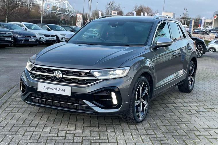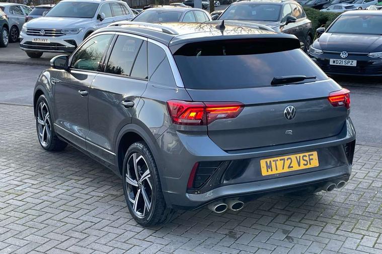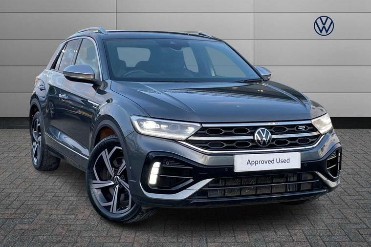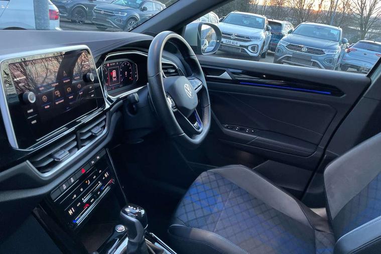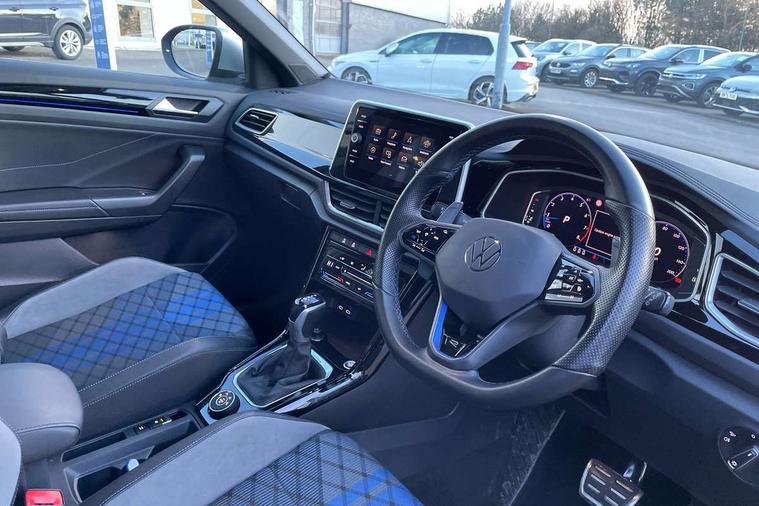 10.25" Digital cockpit pro, Bluetooth mobile phone interface, Driver alert system with fatigue detection, Driver tips and journey analysis, Emergency call service, Lane keeping system Lane Assist, Modified key software - reduce switch off time for key status change to Long no motion, Online services, Park assist including front and rear parking sensors, Service interval indicator, Tailgate/trunk lid release from outside, Think blue trainer driver tips and journey analysis, Warning sound and light for front seatbelts unfastened, Wireless app connect, Battery regeneration during braking, Four wheel drive, Start/stop function with battery regeneration, Diversity antenna for FM reception, Front and rear 6 speakers, Music playback - MP3, WMA and AAC files, Premium USB cable in choice of either Apple or Android smartphone compatibility, SD card slot, Simultaneous pairing of 2 compatible mobile devices, Title and cover art display, We Connect and We Connect Plus functionality, 3rd brake light, Auto dimming interior rear view mirror, Automatic hazard lights activation under emergency braking, Automatic headlight control with LED separate daytime running lights with coming/leaving home function, Extended roof spoiler, Exterior mirrors aspherical on driver side, convex on front passenger side, External USB type C socket and charging sockets, Front windscreen wiper with intermittent wipe and 4 position delay, Heated rear window, LED Plus headlamps, LED rear combination lamps, LED rear number plate lights, LED tail lamp rear comination lamps, Power windows with comfort operation and circuit breaker, Privacy glass for rear side windows and rear window, R-Line design body coloured bumpers, Rain sensor, Rear fog light on one side and reversing lights on both sides, Rear side wing doors, Rear wash/wipe with intermittent wipe setting, Remote electrically foldable door mirrors, puddle lights and reverse activated passenger's door mirror, 12V power socket in centre console, 3 rear head restraints, 3 seat bench in 2nd row, 4 load lashing points in luggage compartment, Air care climatronic air conditoning system with active combination filter and 2-zone temperature control, Ambient lighting - 10 colour (blue), Black roof lining, Chrome plated radiator grille inserts, air vent surrounds and light switch surrounds, Door and side trim panel with leatherette insert, Drawer under drivers seat, Driver/front passenger seat height adjustment, Front + rear carpet mats, Front centre armrest, Front cupholders x 2, Front footwell illumination, Front scuff plates with R logo in door apertures, Front sport seats, Heated leather wrapped multi function sports steering wheel with tiptronic, Instrument lighting, white adjustable panel illumination, Interior light delay, Isofix child seat preparation, Leather gearshift handle, LED interior light with switch off delay/dimmer and 2 front/rear LED reading lights, Load-through provision with cup holder when folded down ('Unsplit rear seat bench, split folding backrest, with centre armrest), Luggage compartment lighting, Lumbar support for driver's and front passengers seat, Non-folding front passenger seat backrest, R-logo stitching in floor mats, Single front passenger seat, Stainless steel pedals, Storage compartment in left and right luggage area, Storage compartment in rear doors, Storage compartments in driver and front passenger doors, Sunvisors with illuminated vanity mirrors, Variable boot floor, height adjustable and removable, Driver assistance pack without proactive passenger protection - T-Roc, R styling pack - T-Roc, 3 point height adj front seatbelts + pretensioners, 3 point seatbelts in outer rear with ECE label, ABS, Child locks on rear doors, Driver and front passenger airbag with front passenger airbag deactivation, Driver and front passenger safety-optimised head restraints, Drivers seatbelt reminder, Electronic parking brake, Electronic Stability Control (ESC) inc EDL (Electronic Differential Lock) and ASR (Traction Control), Front and rear passengers curtain airbag system including front side airbags, Front assist with city emergency braking and pedestrian monitoring, Front seat side impact airbags, Hill descent control, Hill start assist, Predictive pedestrian protection, Rear disc brakes, Single tone horn, Tyre pressure loss indicator, Volkswagen roadside assistance, Alarm with interior protection, Anti-theft alarm system with interior monitoring, backup horn, and towing protection, Keyless entry and start, Remote central locking with SAFELOCK, radio remote control with 2 remote control folding keys, Trims for alloy wheels,