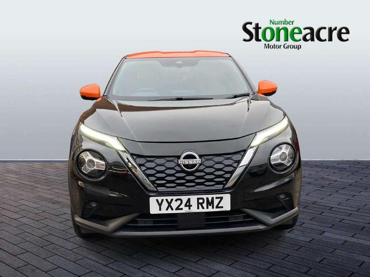 7" full colour TFT screen combimeter, Apple CarPlay and Google Android auto, Drive modes select (Eco, normal and sport), e-Pedal step, Emergency and breakdown call, EV mode selector, Front parking sensor, Intelligent lane intervention, Lane departure warning system, Nissan connect 8" touch screen entertainment system, Nissan connect nav with TomTom traffic, Nissan connect services and Wifi connection, Outside temperature sensor, Power Steering, Rear parking sensor, Traffic sign recognition, Trip computer, Voice recognition, Gasoline particulate filter, 10 Bose speakers 6 speakers and 2 headrest speakers for driver/passenger seats, Bluetooth system, USB, Aux-in and 12V socket, Bose personal sound stage control, DAB Digital radio, Rear console USB port, Auto dimming interior rear view mirror, Auto headlights, Automatic hazard signal with emergency stop signal, Body colour bumpers, Body colour door handles, Electrically adjustable door mirrors with integrated indicators, Follow me home headlights, Front and rear electric window with one touch driver window, Heated and auto folding door mirrors, High beam assist, LED 3rd brake light, LED daytime running lights, LED front fog lights, LED headlamps, LED rear fog lamp, LED rear lamps, Rain sensor windscreen wipers, Rear privacy glass, Rear side wing doors, Rear wiper, Roof spoiler, Shark fin roof antenna in Pearl Black, Thermaclear heated windscreen, Three blink turn signal, 3 height adjustable rear headrests, 3 seat bench in 2nd row, 60/40 split folding rear seat, Automatic climate control, Card holder on driver sunvisor, Door ambient lighting, Driver and passenger sliding and reclining seats, Driver seat back pocket, Driver side rear coat hanger, Driver/passenger sunvisors and vanity mirrors, Front and rear cabin lights, Front armrest, Front door pockets with bottle holders, Front head restraints, Front passenger isofix child seat anchorage point, Front/rear passenger grab handles, Gear console ambient circle lighting, Grey synthetic leather kneepad, Heated front seats, Height adjustable driver's seat, Height adjustable passenger seat, Internal chrome door handles, Leather gearshift knob, Leather steering wheel, Luggage board, Luggage space lighting, Monoform sporty seats, Multifunction steering wheel, Passenger seat back pocket, Rear door bottle holders, Single front passenger seat, Steering wheel mounted gearshift paddles, Synthetic leather upholstery, Telescopic steering wheel adjustment, Two cupholders in front centre console, Two rear isofix child seat anchorage points with top tether, Welcome light and console tray ambient lighting, ProPilot pack - Juke, ABS with EBD and brake assist, Active ride control, Active Trace Control, Driver and passenger airbags, Driver and passenger side airbags, Electric handbrake with auto hold function, Electronic Stability Programme (ESP), Front and rear curtain airbags, Height adjustable seatbelts, Hill start assist, Intelligent emergency braking with pedestrian and cyclist recognition, Rear door child safety locks, Seatbelt reminder for driver/front passenger and rear seats, Single tone horn, Three 3 point rear seatbelts, Traction control, Tyre pressure monitoring system, VDC Dynamic Vehicle Control, Ventilated rear brake discs, Alarm, Immobiliser, Intelligent key and start push button with walk away lock and approach unlock functions, Remote central locking,