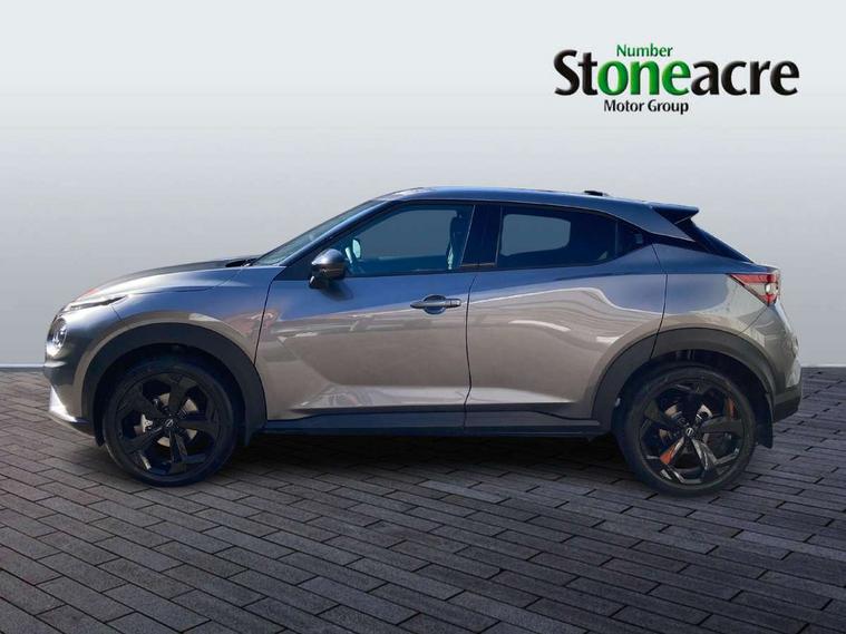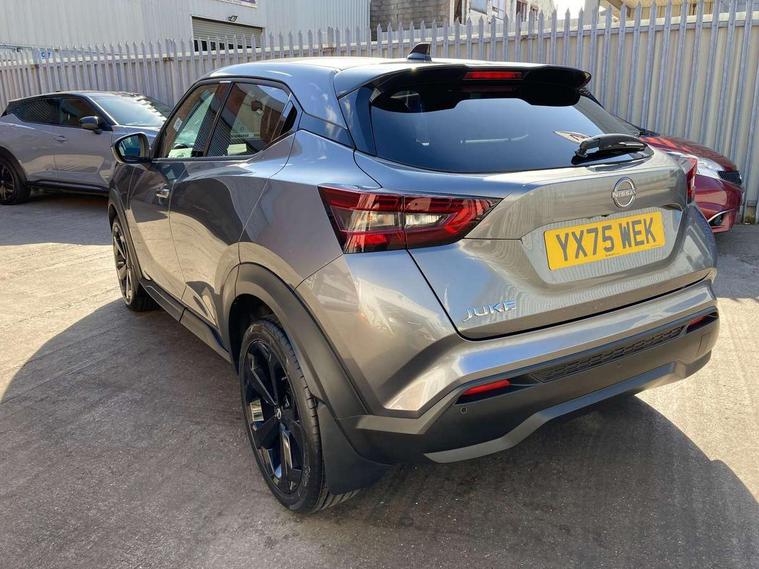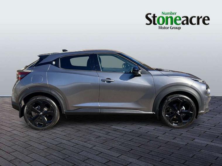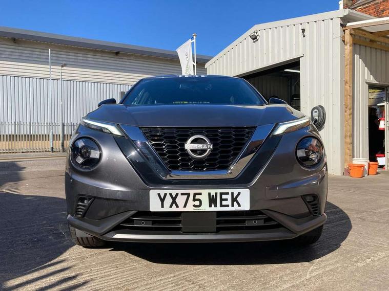 12.3" full colour TFT screen combimeter, Drive modes select (Eco, normal and sport), Emergency and breakdown call, Front parking sensor, Idle start/stop system, Intelligent driver alert system, Intelligent lane intervention, Lane departure warning system, Nissan connect 12.3" touch screen entertainment system, Nissan connect nav with TomTom traffic, Nissan connect services, Outside temperature sensor, Power Steering, Rear parking sensor, Stop/start button, Traffic sign recognition, Trip computer, Voice recognition, WiFi connectivity, Wireless Apple CarPlay and Google Android auto, Wireless Smartphone charger, 10 Bose speakers 8 speakers and 2 headrest speakers for driver/passenger seats, 2 X Rear console USB port, Bluetooth system, USB, Aux-in and 12V socket, Bose personal plus audio system, DAB Digital radio, Auto dimming frameless rear view mirror, Automatic hazard signal with emergency stop signal, Body colour door handles, Electrically adjustable door mirrors with integrated indicators, Follow me home headlights, Front and rear electric window with one touch driver window, High beam assist, LED 3rd brake light, LED daytime running lights, LED front fog lights, LED headlamps, LED rear fog lamp, LED rear lamps, One touch passenger window, Rear privacy glass, Rear side wing doors, Rear wiper, Roof spoiler, Shark fin roof antenna in solid Black, Solid black door mirrors, Three blink turn signal, 3 height adjustable rear headrests, 3 seat bench in 2nd row, 60/40 split folding rear seat, Card holder on driver sunvisor, Door ambient lighting, Driver seat back pocket, Driver side rear coat hanger, Driver/passenger sunvisors and vanity mirrors, Front and rear cabin lights, Front armrest, Front door pockets with bottle holders, Front head restraints, Front/rear passenger grab handles, Gear console ambient circle lighting, Height adjustable driver's seat, Internal chrome door handles, Luggage board, Luggage space lighting, Monoform sporty seats, Multifunction steering wheel, Passenger seat back pocket, Rear door bottle holders, Single front passenger seat, Smooth synthetic leather steering wheel, Synthetic leather kneepad, Synthetic leather shift knob, Synthetic leather upholstery, Telescopic steering wheel adjustment, Two cupholders in front centre console, Two rear isofix child seat anchorage points with top tether, Welcome light and console tray ambient lighting, Advanced safety shield pack - Juke Manual, Comfort pack - Juke, Heat pack with height adjustable passenger seats - Juke, ABS with EBD and brake assist, Active ride control, Active Trace Control, Driver and passenger airbags, Driver and passenger side airbags, Electric handbrake with auto hold function, Electronic Stability Programme (ESP), Front and rear curtain airbags, Height adjustable seatbelts, Hill start assist, Intelligent emergency braking with pedestrian and cyclist recognition, Rear door child safety locks, Seatbelt reminder for driver/front passenger and rear seats, Three 3 point rear seatbelts, Traction control, Tyre pressure monitoring system, VDC Dynamic Vehicle Control, Alarm, Immobiliser, Intelligent key and start push button with walk away lock and approach unlock functions, Remote central locking, 19" Alloy wheels, Tyre puncture repair kit,