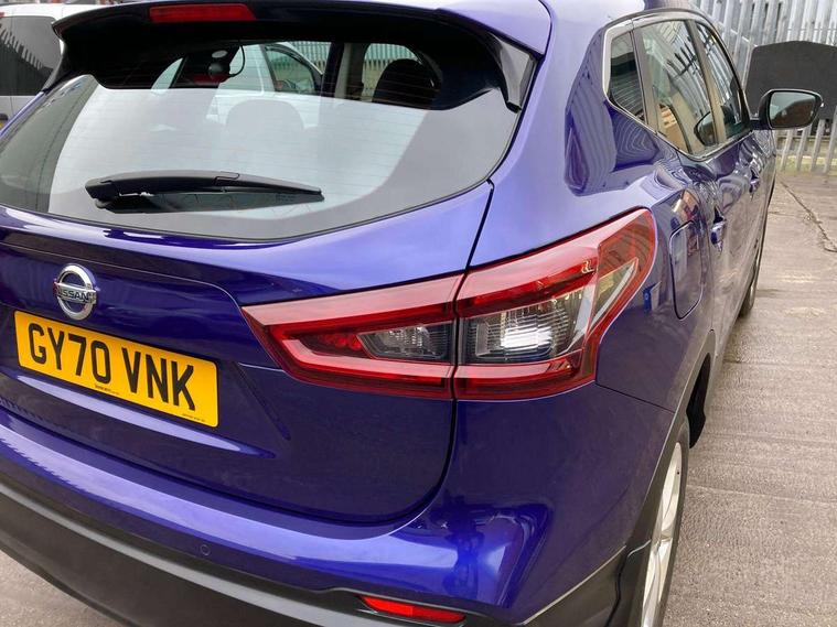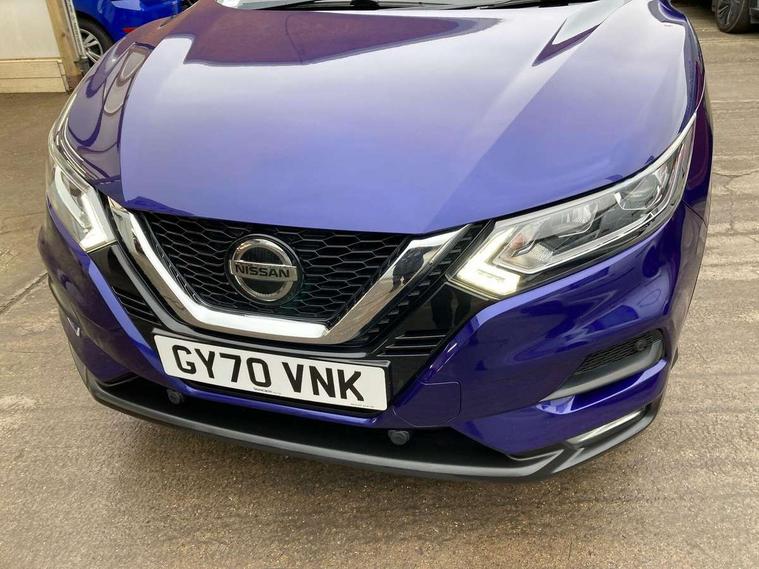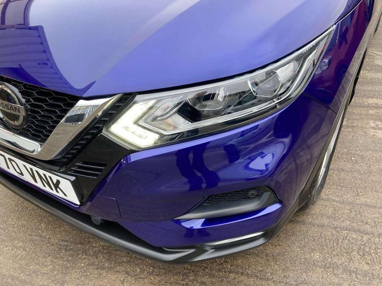 Advanced drive assist display 5'' TFT coloured screen, Apple car play/Android Auto, Bluetooth connectivity, Cruise control + speed limiter, Electric speed sensitive power steering, Front parking sensors, Idle stop/start system, Lane departure warning system, Nissan connect evo 7" touchscreen navigation and entertainment system, Normal or sport selectable steering, Outside temperature sensor, Premium Tomtom connected services, Rear parking sensors, Rear view camera, Service interval indicator, Smartphone integration, Traffic sign recognition, Trip computer, Voice control system, Nissan chassis control (intelligent ride control, intelligent trace control, intelligent engine brake), 6 speakers, AM/FM radio, CD audio system, Aux-in socket, DAB Digital radio, USB port, Anti dazzle rear view mirror, Auto wipers, Body colour bumpers, Body coloured door handles, Body coloured door mirrors, Chrome window surround, Daytime running lights dip function when turn signal applied, Electric folding door mirrors, Electric front and rear windows with one touch illuminated window controls, Electrically adjustable door mirrors, Front fog lights, Halogen headlights, Heated door mirrors, High beam assist, Intelligent auto headlights, LED indicators in door mirrors, Rear roof spoiler, Rear wiper with reverse link, Shark fin antenna, Signature LED daytime running lights, Underbody vortex generators, 2 X front 12v power sockets, 3 height adjustable rear headrests, 60/40 split folding rear seat, Ambient interior lighting, Ambient lighting around centre console, Bi-colour cloth upholstery, Boot lighting, Centre console storage box/armrest, Chrome interior door handles, Driver's seat manual height adjust, Dual zone climate control, Front and rear door pockets with bottle holders, Front and rear seat belt pre-tensioners with load limiters, Height adjustable front headrests, ISOFIX restraints on outer rear seats x2, Leather D shaped steering wheel, Leather gear lever, Leather knee pad, Manual height adjustable passenger seat, Manual lumbar support on driver seat, Pollen filter, Rear armrest with 2 cupholders, Tilt/telescopic adjustable steering wheel, Velour floor mats, 6 airbags - Driver, front passenger, curtain and side airbags, ABS, ESP, EBD and brake assist, Auto hold function, Child locks on rear doors, Electronic parking brake, Front and rear seat belt warning, Height adjustable front seatbelts, Hill start assist, Intelligent emergency braking with pedestrian recognition, Manual passenger airbag deactivation function, Three 3 point rear seatbelts, Tyre pressure monitoring system, Anti-theft immobiliser, Remote central locking, Thatcham Cat.1 alarm, Piano black dash trim, 17" Alloy wheels, Tyre puncture repair kit,