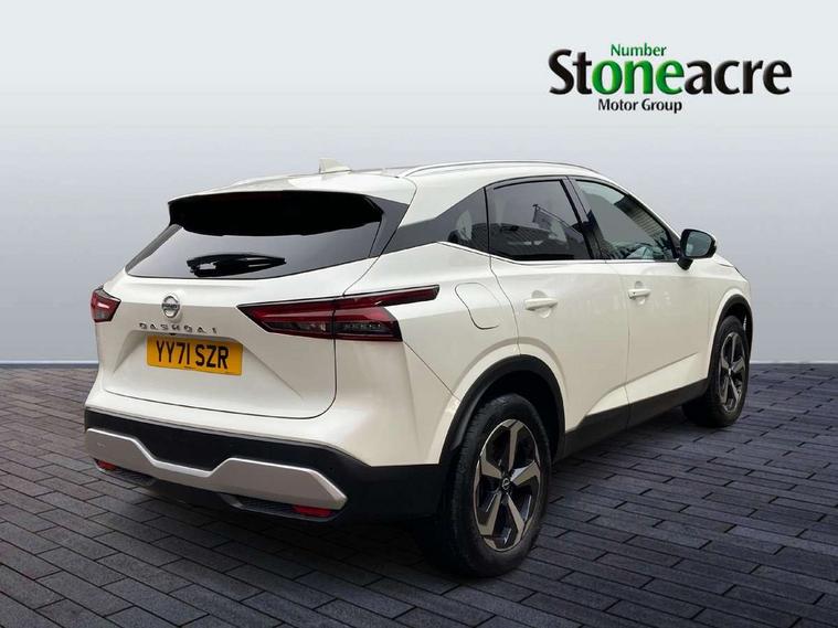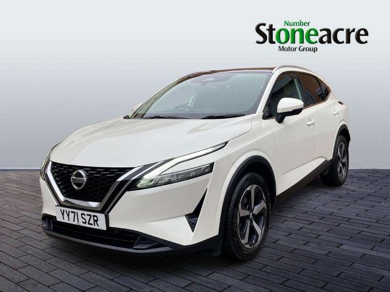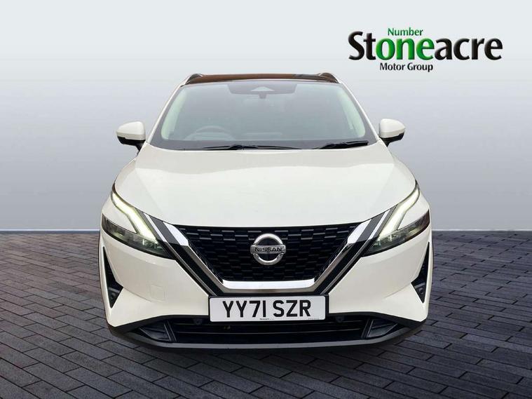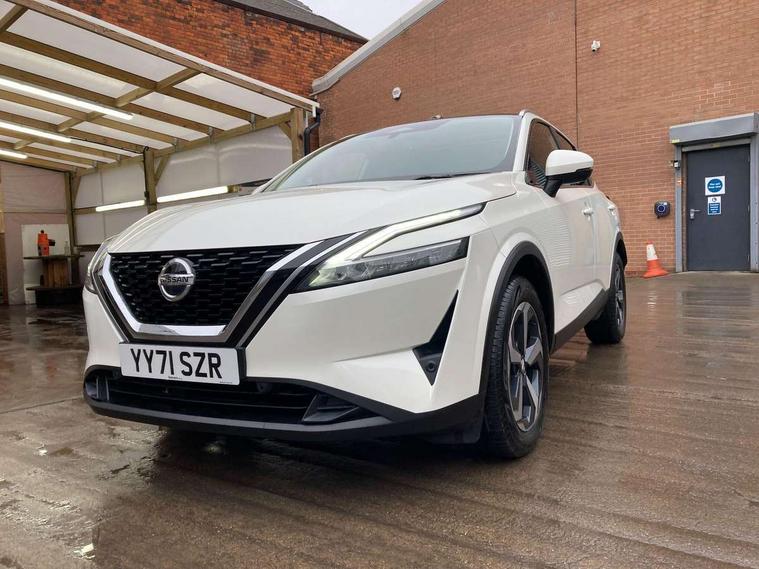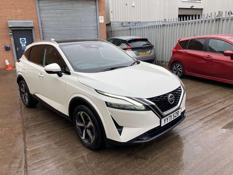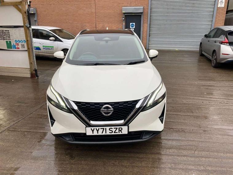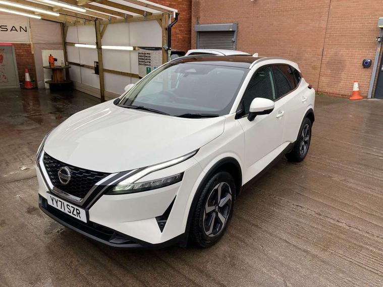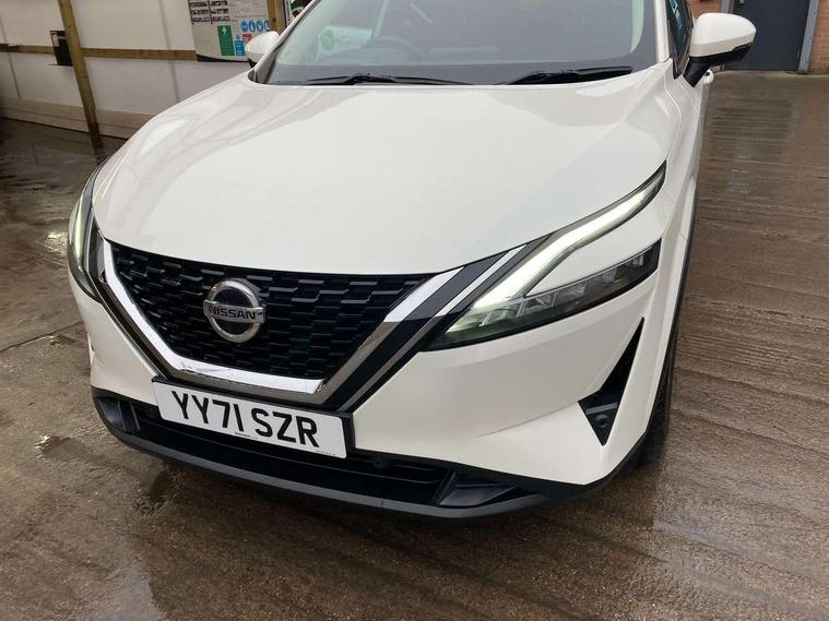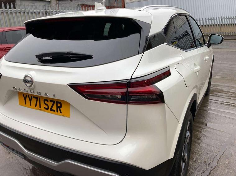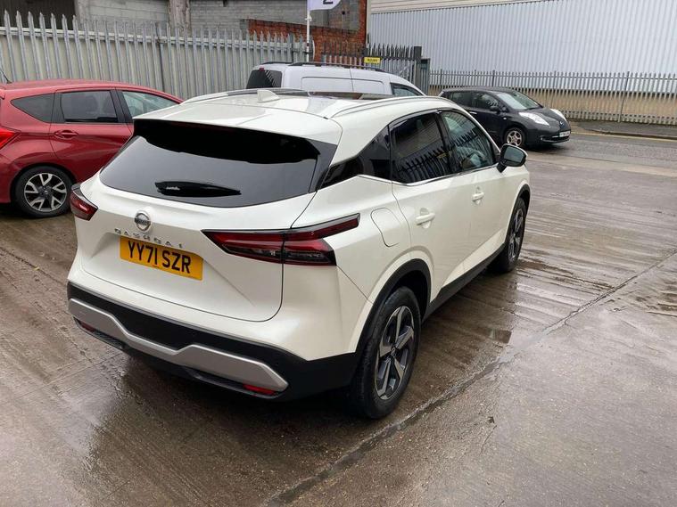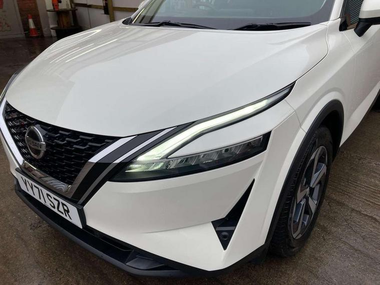 Blind spot warning, Drive modes (sport, normal, eco), Electric speed sensitive power steering, Emergency and breakdown call, Front and rear parking sensors, Full Digital 12.3" TFT Digital Combimeter, Idle stop/start system, Intelligent Cruise control (ICC), Intelligent driver alert system, Intelligent forward collision warning, Intelligent lane intervention, Lane departure prevention, Lane departure warning system, Moving object detection, Push button starter, Rear cross traffic alert, Traffic sign recognition with legal speed adjustment, Trip computer, 6 speakers, AM/FM audio system with DAB, Bluetooth audio streaming, Front USB connections (Type-A and Type-C), Rear USB charging only ports (Type-A and Type-C), Auto dimming rear view mirror, Auto rear wiper when reversing, Body colour mirror caps, Body coloured door handles, Bodyside mouldings, Chrome side window finisher, Electric auto folding door mirrors, Electrically adjustable and heated door mirrors with LED turn indicator, Fixed panoramic glass roof with electric sunshade, Follow me home headlights, High beam assist, Intelligent auto headlights, LED daytime running lights, LED rear lights, One touch front and rear electric windows with remote opening and closing, Partially body coloured bumpers, Privacy glass, Rear roof spoiler, Rear styling plate, Roof rails, Shark fin antenna, Splash free rain sensing wipers, Super UV and infrared cut glass, Three blink turn signal, 12v power socket in dashboard and luggage, 2 way electrical driver lumbar adjustment, 2x Rear coat hooks, 3 rear headrests, 4 grab handles, 6 Luggage hooks - 4 on floor, 2 on side, 60/40 split folding rear seat, Ambient lighting around centre console, Centre console storage tray, Chrome interior door handles, Cloth monoform upholstery, Driver and front passenger sunvisors with illuminated vanity mirrors, Driver seat back pocket, Dual zone automatic climate control with pollen filter, Front centre console and armrest, Front cupholder, Front door with bottle holders, Glovebox with light, Hard trunk cover, Height adjustable front headrests, Leather steering wheel, Luggage board system, Luggage space lighting, Manually adjustable passenger (slide recline + lifter), Multifunction steering wheel, Passenger seat back pocket, Rear armrest with 2 cupholders, Rear door bottle holders, Soft PVC kneepad, Steering wheel gearshift paddles, Steering wheel switches, Tilt/telescopic adjustable steering wheel, Two rear isofix child seat anchorage points with top tether, Welcome light and console tray ambient lighting, Connectivity Pack - Qashqai, Tech Pack (ProPILOT + HUD), 3x3 point rear seatbelt pretensioners + load limiters, ABS, ESP, EBD and brake assist, Active brake limited slip, Auto hold function, Child locks on rear doors, Curtain and front side, far side airbags, Driver and passenger airbags, Driver, passenger and 2nd row rear seat belt reminder, Electronic parking brake, Front seatbelt pretensioners + load limiters, Height adjustable front seatbelts, Hill start assist, Intelligent blind spot intervention, Intelligent front emergency braking with pedestrian, cyclist recognition and junction assist, Intelligent rear automatic braking, Tyre pressure monitoring system, Vehicle dynamic control, Capless fuel filler, Engine immobiliser, Nissan i-key, Remote central door locking with deadlocking, Thatcham Cat.1 alarm, 18" diamond cut alloy wheels,